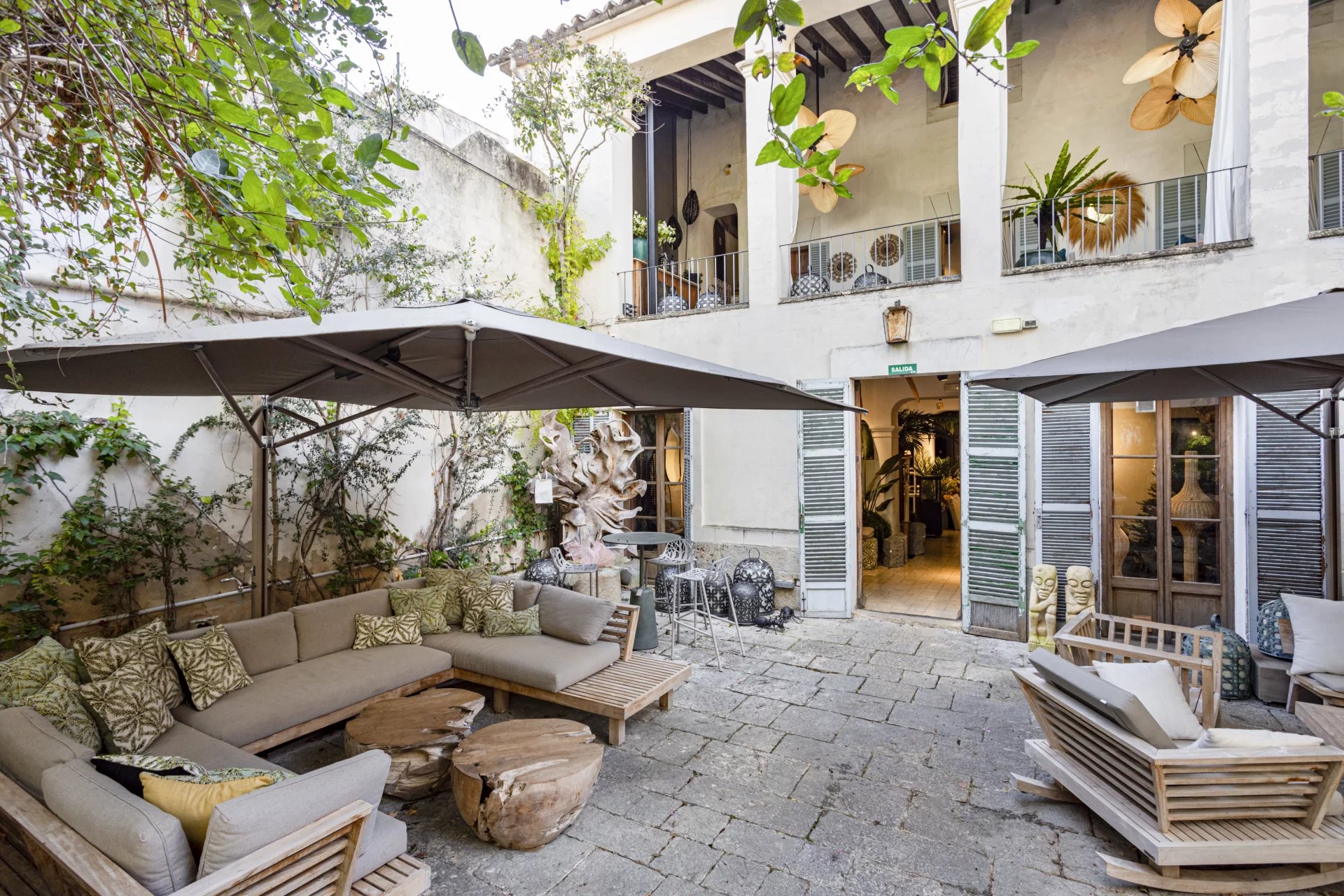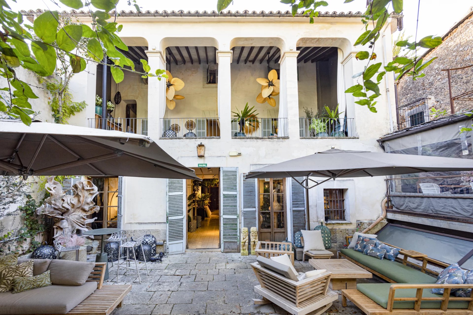 Situated in the heart of the village, this imposing historical property is currently being used as an interior design shop and garden restaurant. The property offers original features in many areas throughout, starting with its protected facade. The building offers various options for its next owner, depending on how they would like to live. Built on three floors, it counts on high ceilings, plenty of natural light, and its highlight is without doubt the expansive garden on different levels, creating both an inviting and a relaxing area, a true oasis. Without doubt a once in a lifetime investment opportunity in one of the most popular country locations, 20 minutes from the Capital, Palma.