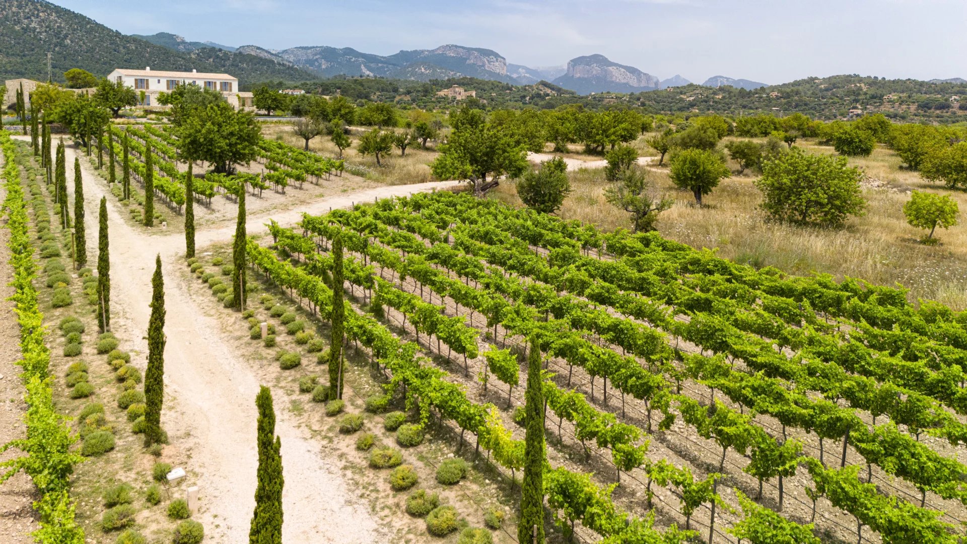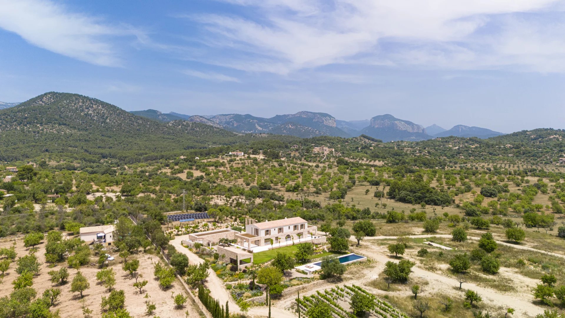 Learn moreSet on a spacious plot of land with breathtaking panoramic views of its private vineyard, the open countryside, and the majestic Tramuntana mountains, “Son Blai” is ideal for those seeking privacy, nature, and refined sophistication – just a short drive from Palma de Mallorca.