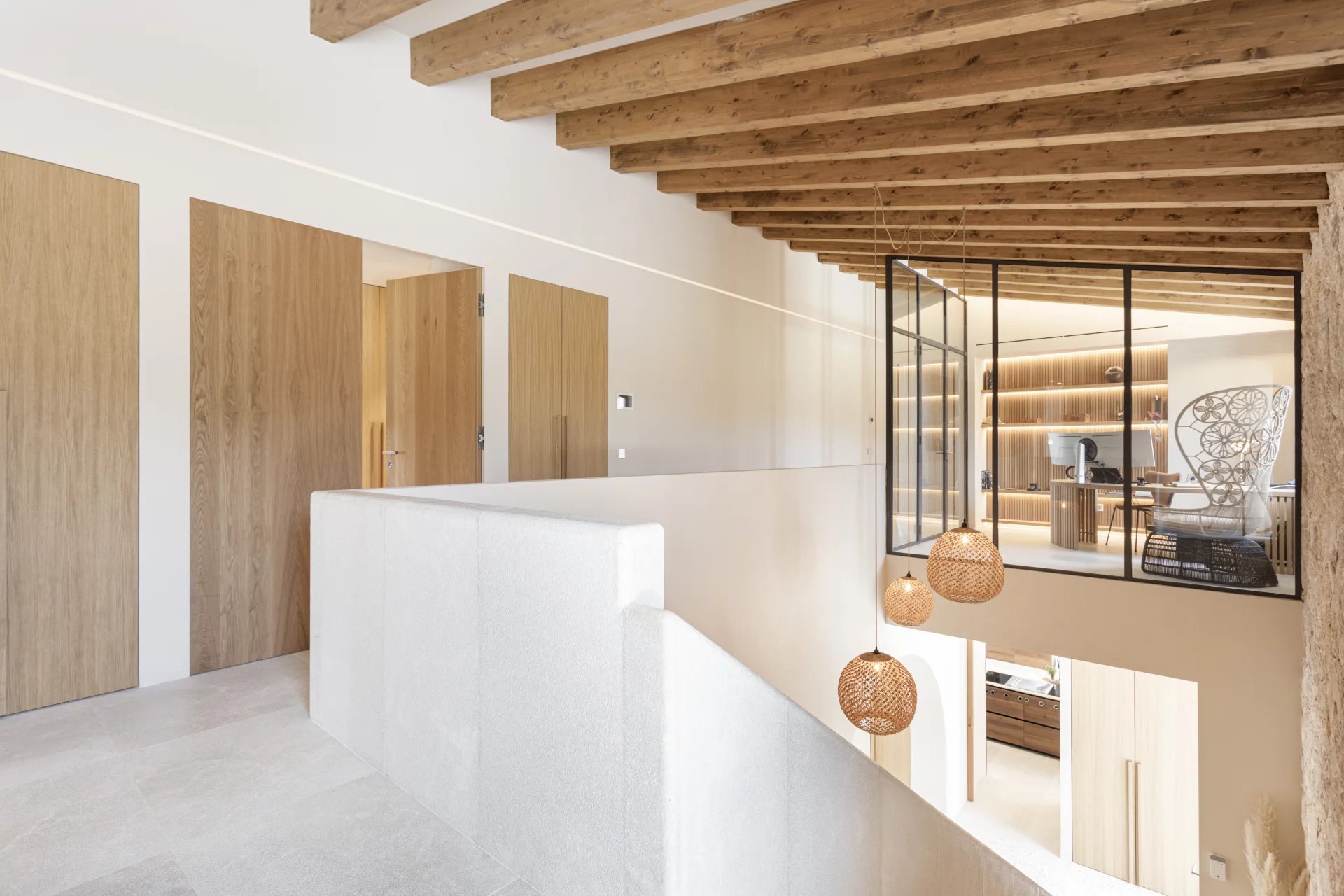 First Floor: open-plan office/studio – ideal for remote work or creative space, two spacious guest bedrooms with walk-in wardrobes and en-suite bathrooms, Master suite (68 sqm) with private terrace, offering ultimate luxury and privacy.