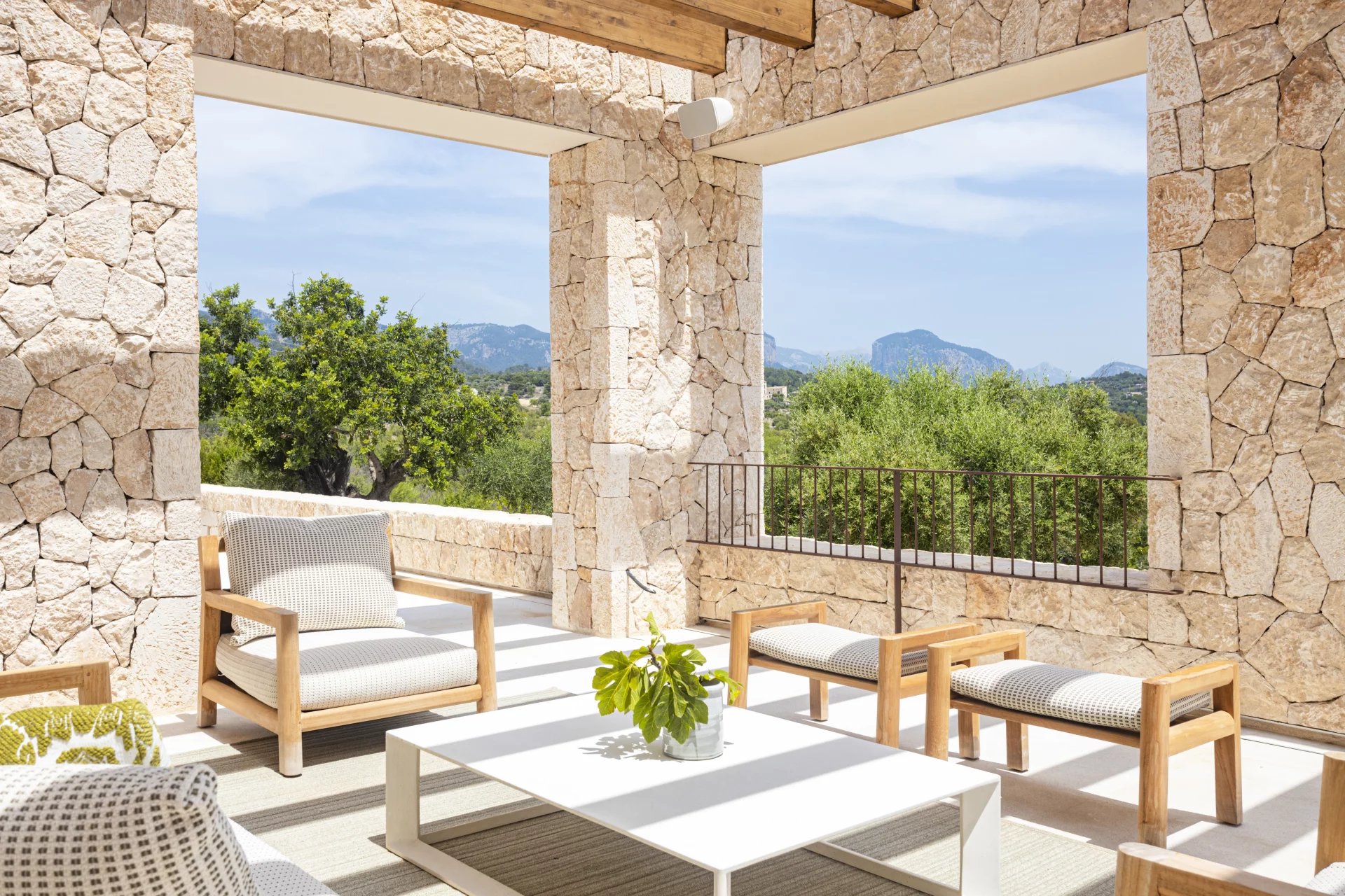 Set on a spacious plot of land with breathtaking panoramic views of its private vineyard, the open countryside, and the majestic Tramuntana mountains, “Son Blai” is ideal for those seeking privacy, nature, and refined sophistication – just a short drive from Palma de Mallorca.