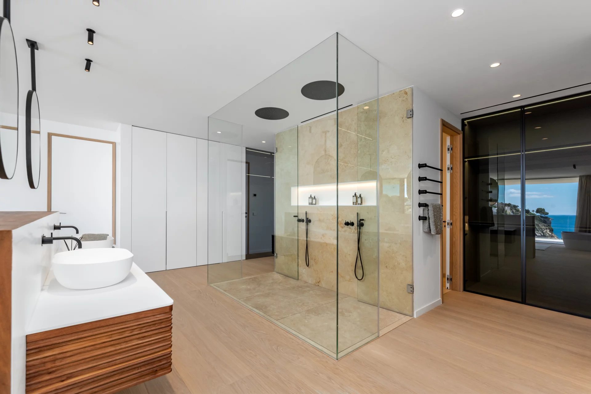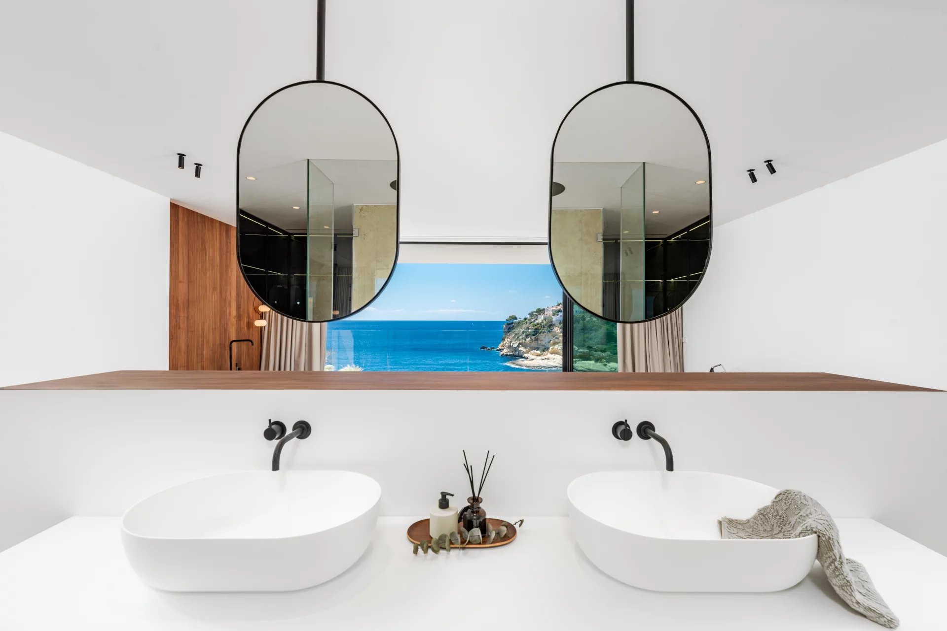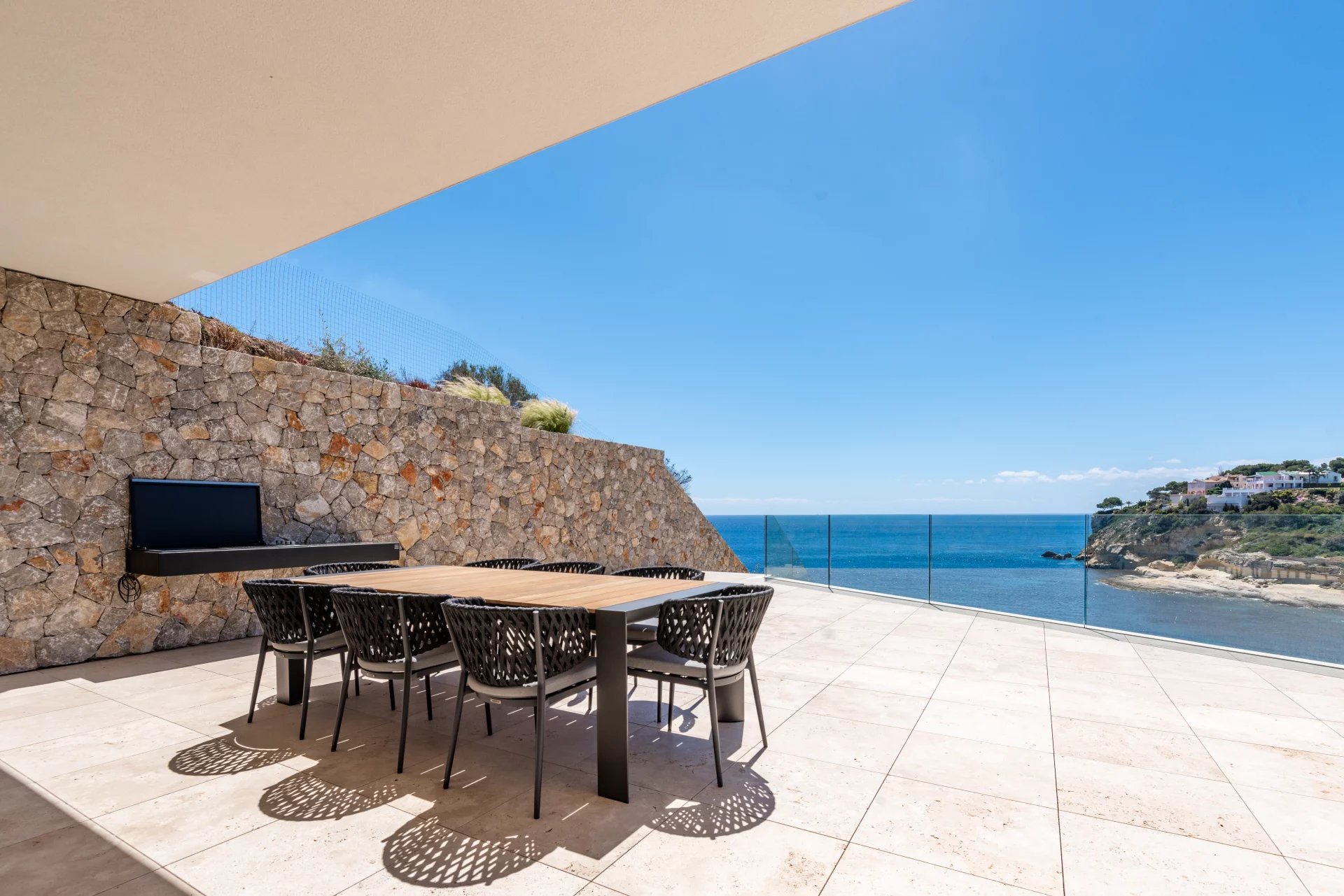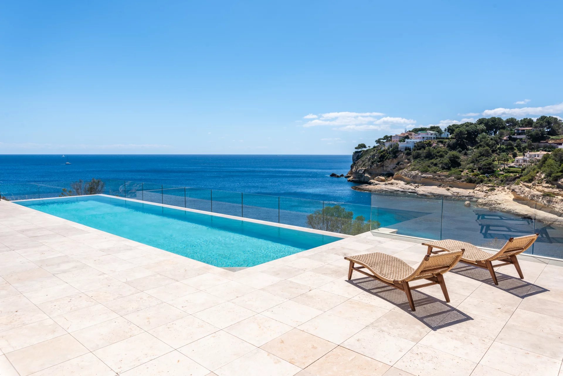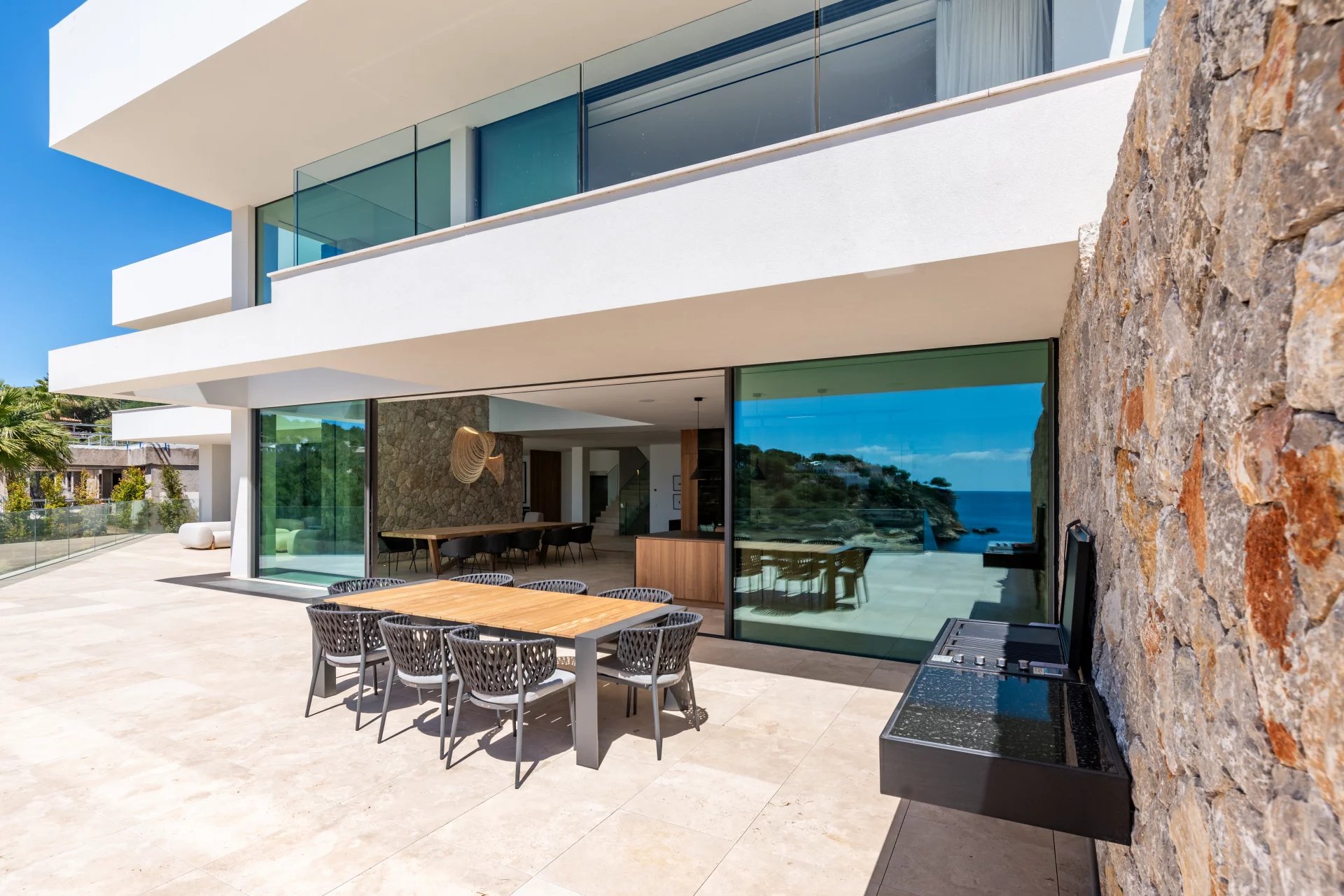 Experience the epitome of pure luxury living in this extraordinary newly built villa in the tranquil residential area of Sol de Mallorca! Step into this coastal masterpiece, which offers an unparalleled lifestyle! This breathtaking residence with an impeccable design in first line boasting unrivalled sea views redefines coastal luxury properties in Mallorca. With more than 1000 m2 of built area on a 2142 m2 plot this amazing house offers 3 floors connected by a lift. Upon entering the vestibule on the top floor you are inmediately welcomed by a stunning view of the Mediterranean sea. On this level there is the magnificent master suite with 2 walk-in closets and a sophisticated open plan bathroom. Every morning you will wake up with the continuously changing colours of the sea at your feet. On this floor there are also 3 more bedrooms, each one with its own bathroom. Descending a beautiful staircase one arrives at the main living area, completely light flooded, connected and spacious, but at the same time designed to offer clearly separate spaces for different moments, be it for a cosy evening at the fireplace, formal dining, a lively barbecue party with family and friends or simply relaxing on the lounge terrace. The basement of the house offers a garage for at least 7 cars and additionally some huge spaces, which can be dedicated to a fitness room, a home cinema or a play room for children. Many porches and open terraces to enjoy the sun around the stunning infinity pool complete this one of a kind retreat. Ready to elevate your living experience to new heights and turn this unmatched lifestyle into yours? Contact us today to make this dream a reality!