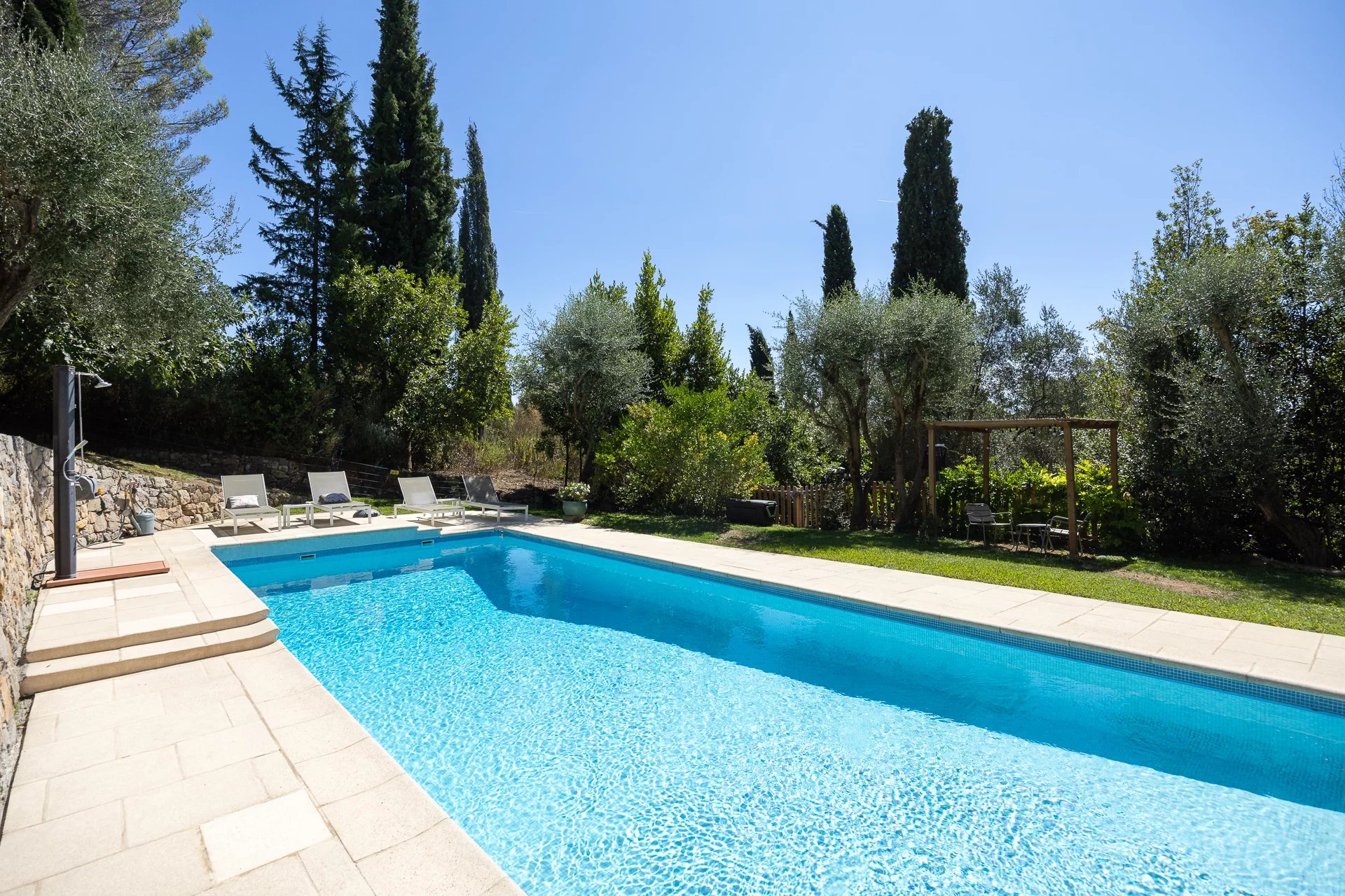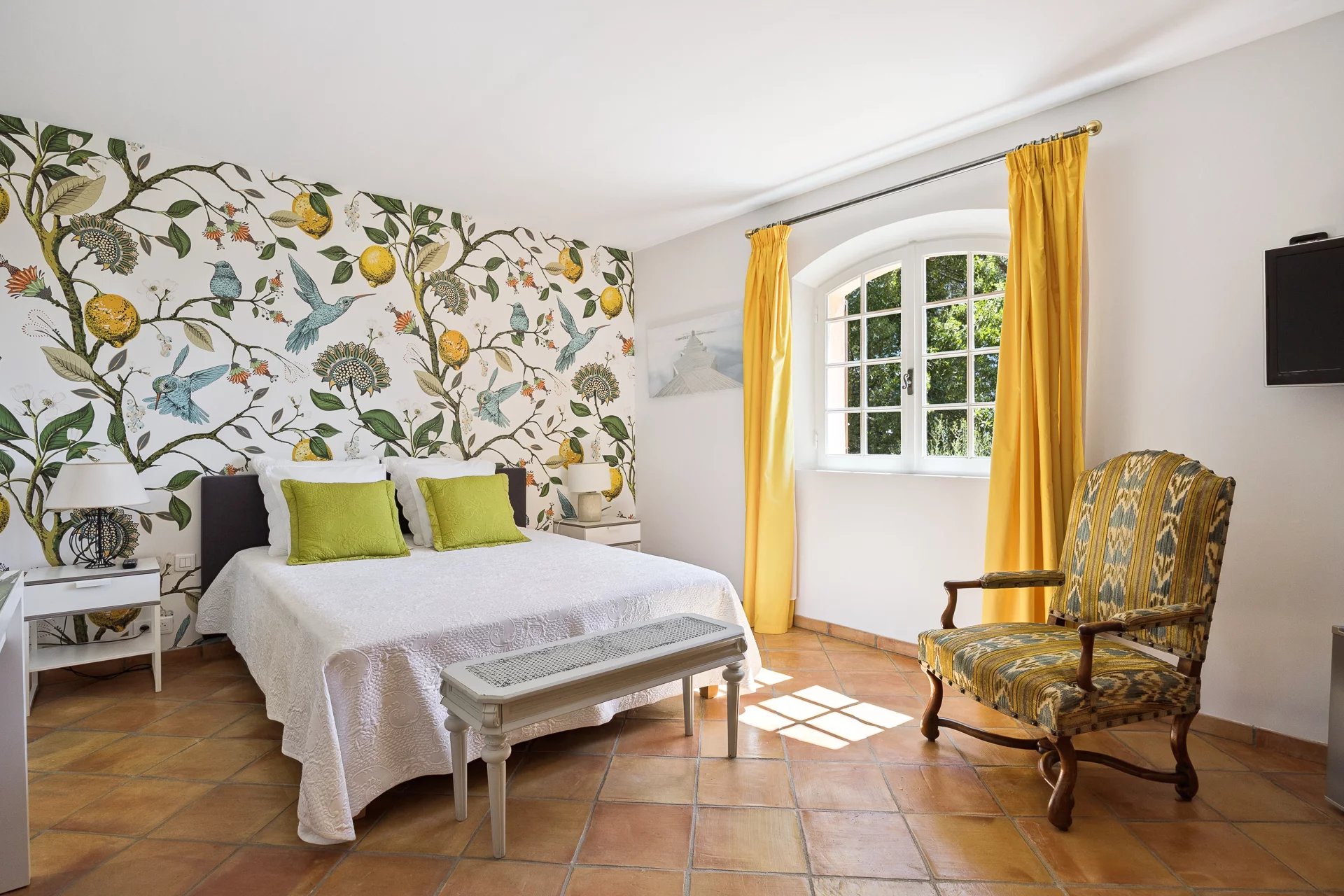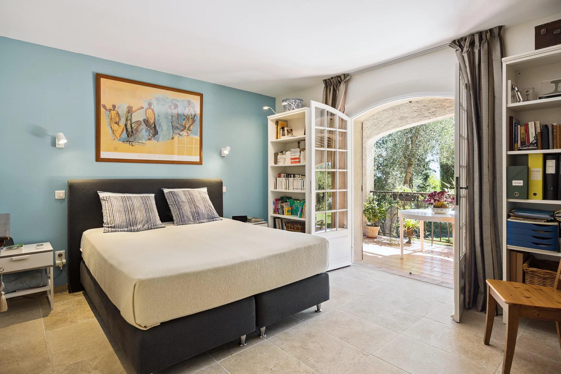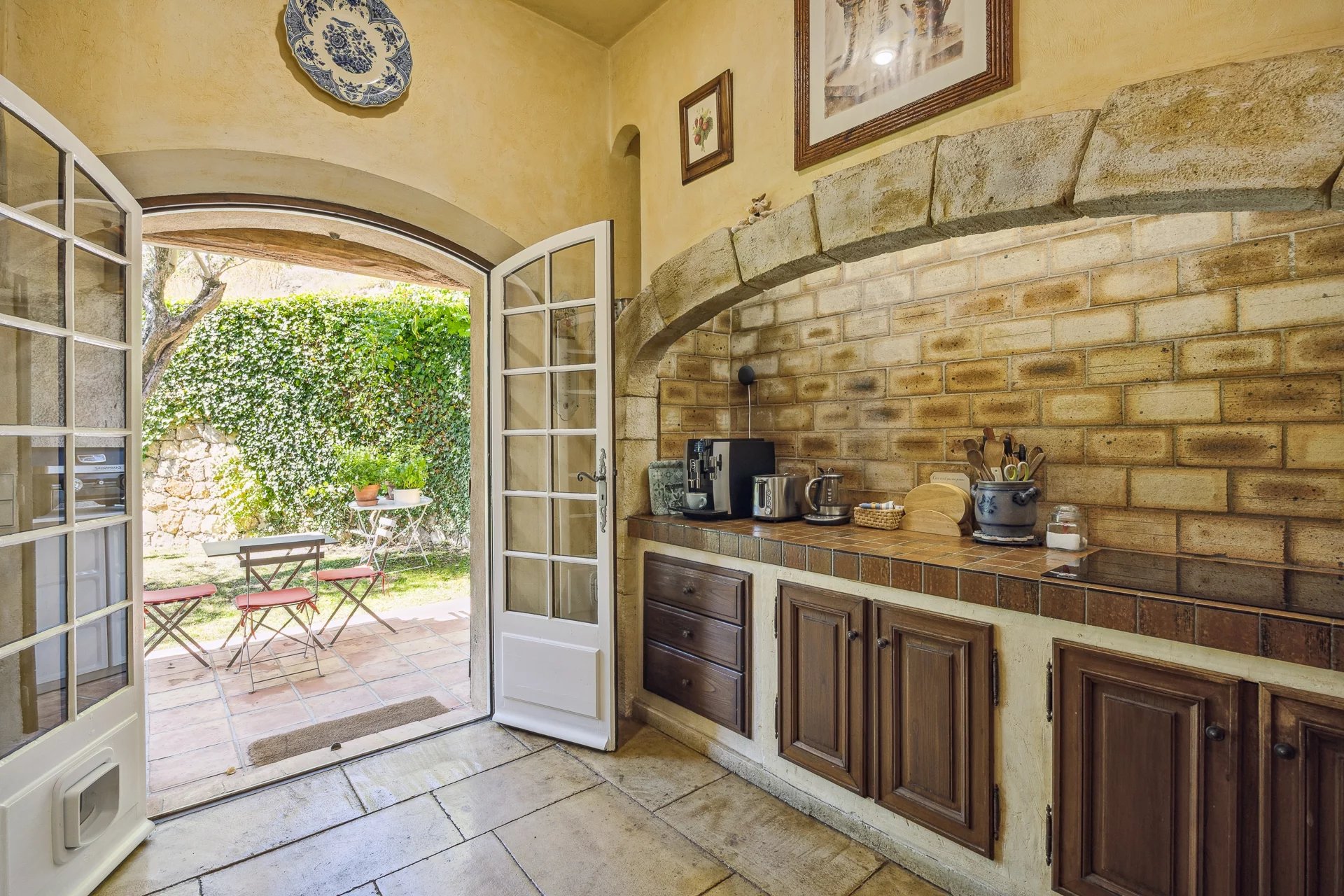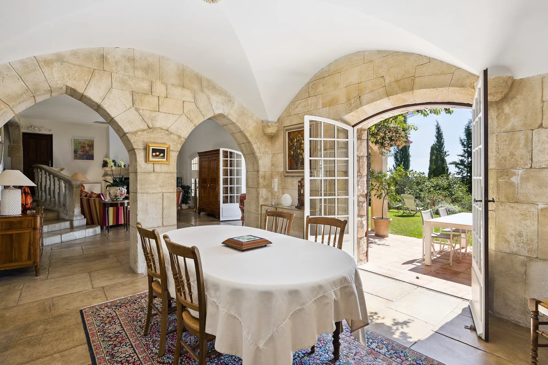 One cannot remain indifferent to the allure of this property. Nestled on a 3,850 m² plot, the house is a true blend of charm and comfort. Surrounded by landscaped gardens featuring olive trees, natural stone terraces, and vibrant mixed borders, it enchants as much with its exterior as with its refined interior, highlighted by the décor of its four suites. The reception rooms showcase noble materials, with a vaulted dining room ceiling and a soaring central cathedral-style living room, all opening seamlessly onto the gardens — the perfect haven for peace, privacy, and relaxation. A pure delight!