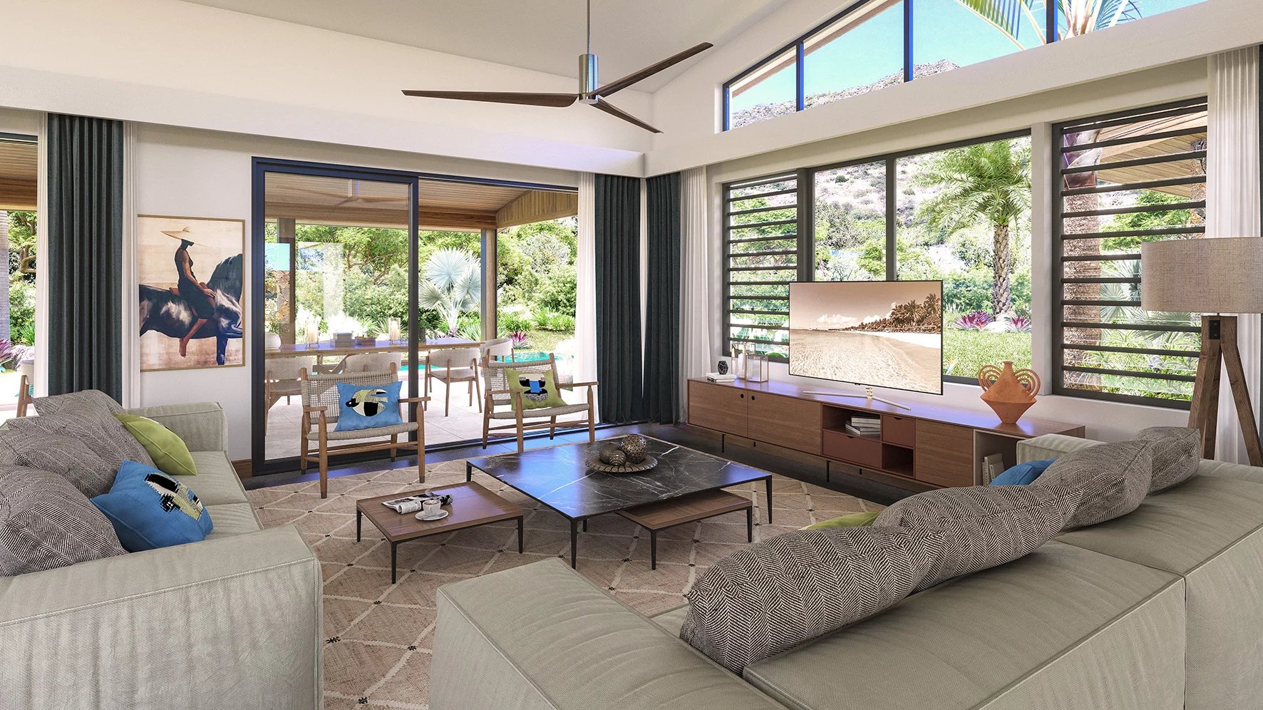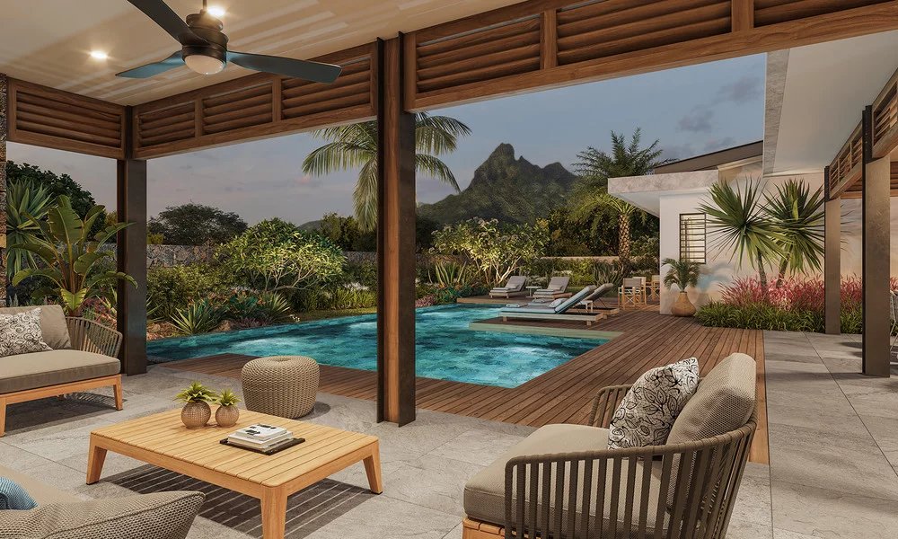 With an incredible view of the Western Mauritian mountain range, Ekô Savannah enjoys an exceptional location, at the gateway to the bustling Tamarin area, with its surf spots, golf course and shops. Just a few minutes from the bay and the most beautiful spots on the west coast, the incredible natural beauty of the panorama blends subtly with the refined contemporary architecture of the 47 prestigious villas on this vast private estate. From 3 to 5 bedrooms, each with a private pool and large garden, they are like a lush oasis in the heart of the wilderness.