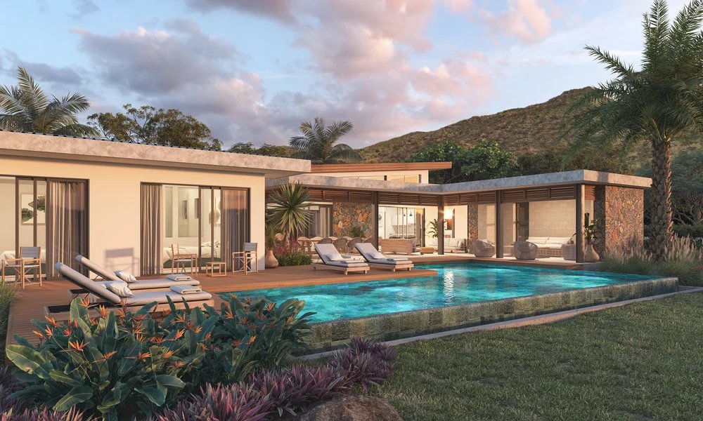 Learn moreWith an incredible view of the Western Mauritian mountain range, Ekô Savannah enjoys an exceptional location, at the gateway to the bustling Tamarin area, with its surf spots, golf course and shops. Just a few minutes from the bay and the most beautiful spots on the west coast, the incredible natural beauty of the panorama blends subtly with the refined contemporary architecture of the 47 prestigious villas on this vast private estate. From 3 to 5 bedrooms, each with a private pool and large garden, they are like a lush oasis in the heart of the wilderness.