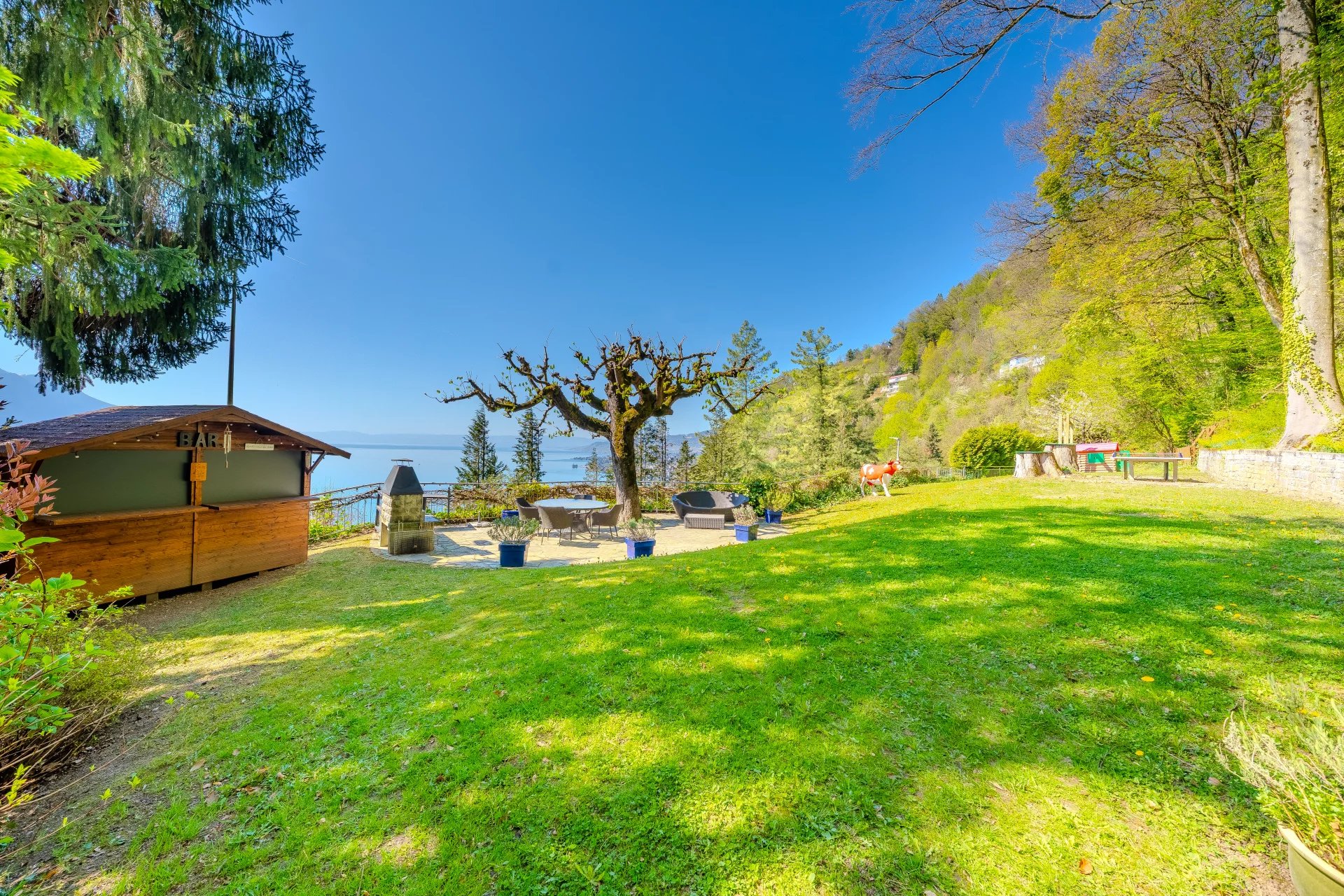 -Magnificent renovated chalet with breathtaking lake views - just a few minutes from Montreux -Splendid chalet, completely renovated in 2020 with quality materials, enjoys a dominant position with panoramic lake views. -Only a few minutes from the center of Montreux, it combines tranquility, comfort and proximity. -Perfectly oriented, it benefits from optimum sunlight throughout the day, enhancing an elegant, bright interior. -Living spaces are spacious and pleasant, ideal for entertaining or relaxing with the family. -The property has 5 bedrooms and 3 bathrooms, ideal for a large family or prestigious secondary use. -A magnificent garden of over 853 m² completes this exceptional property, offering a lush, intimate setting. -Several outdoor parking spaces are also available. This rare property is a must-see!