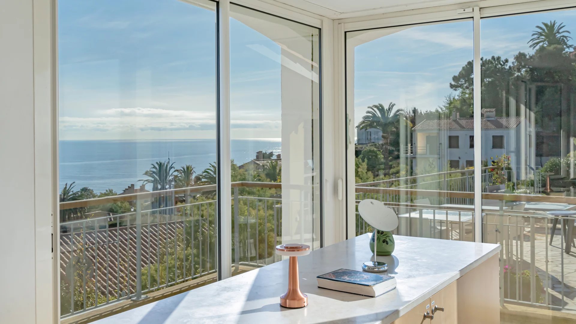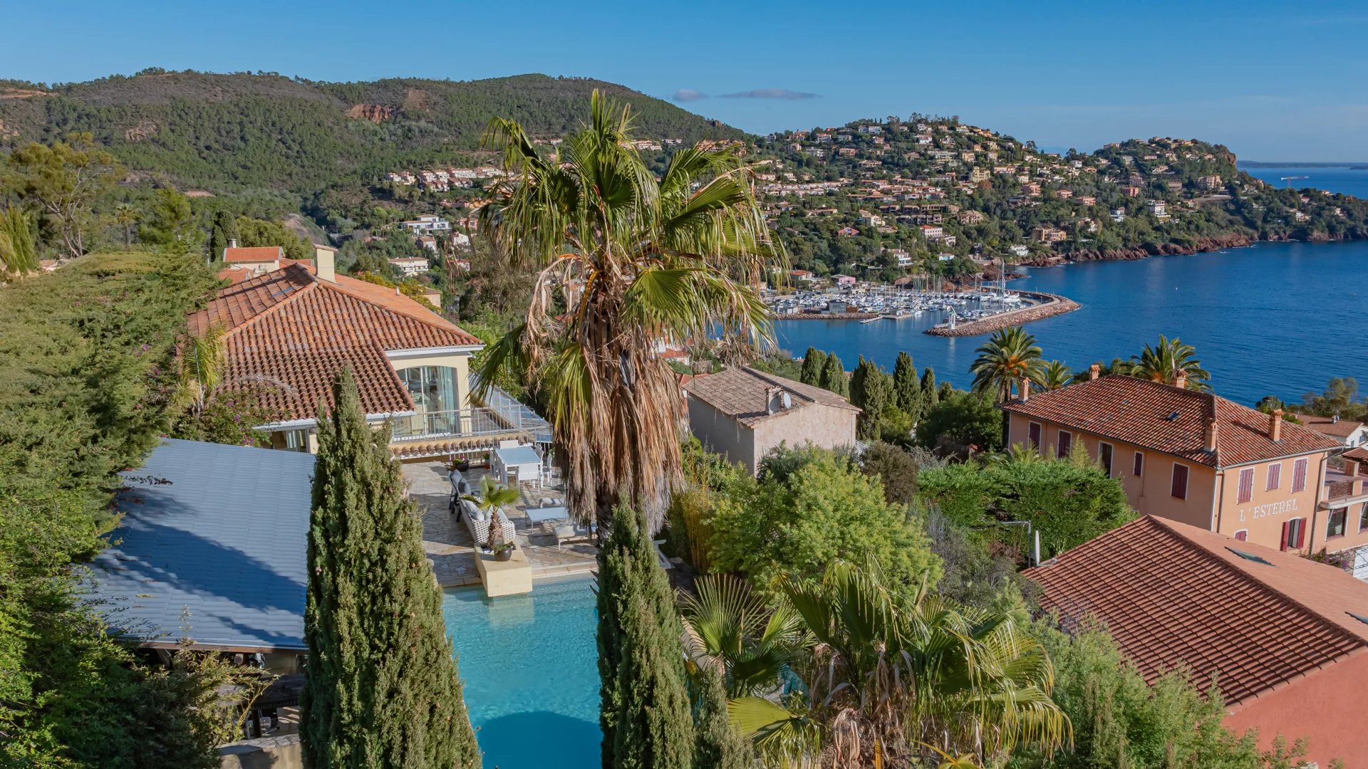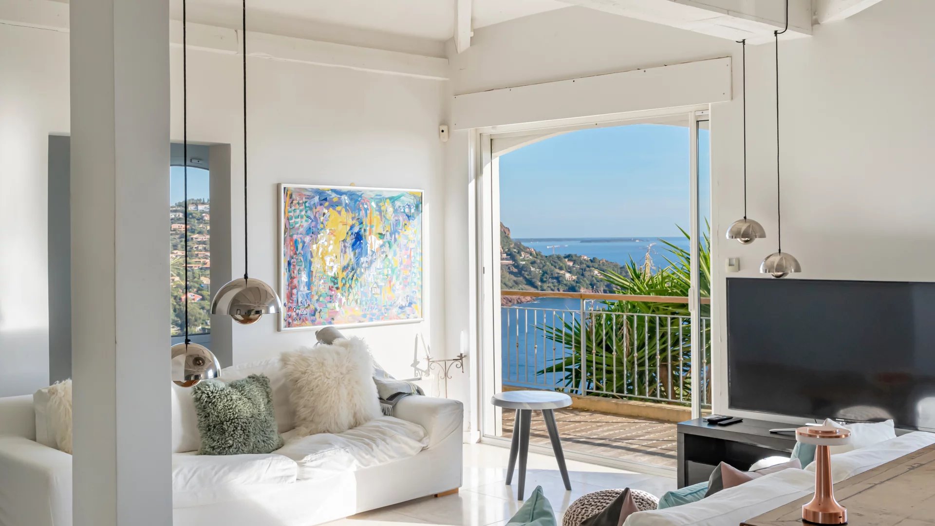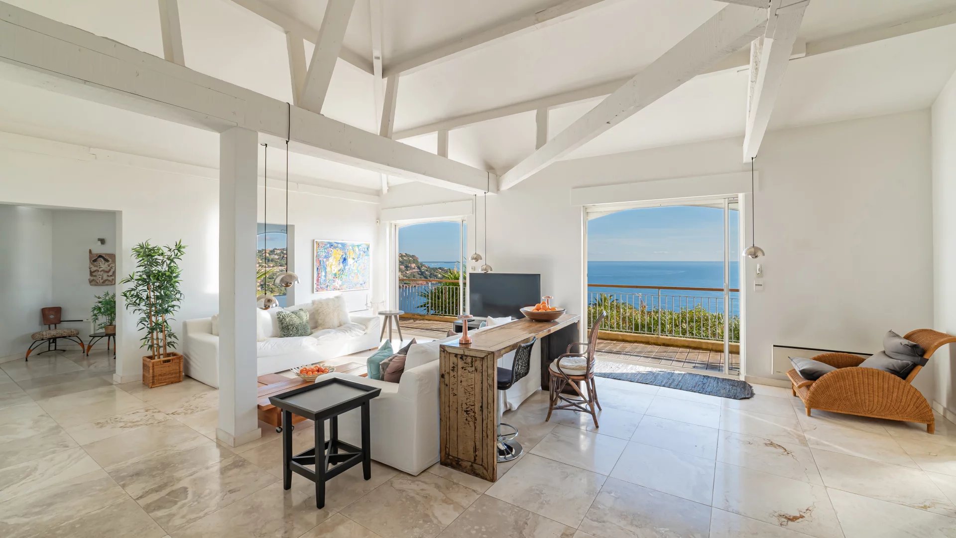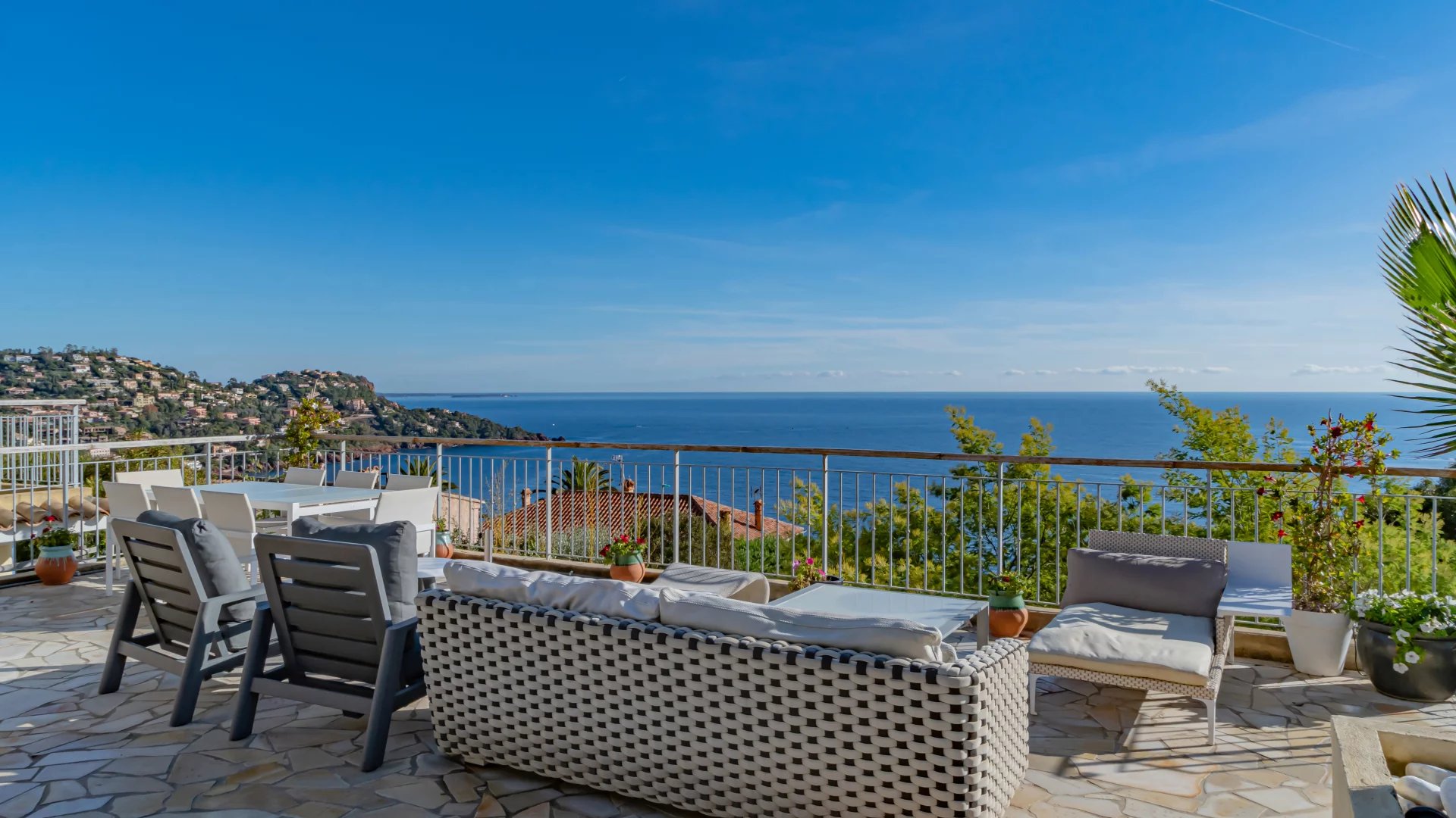 Located in a quiet residential neighborhood, just 10 minutes from shops and the village of Théoule-sur-Mer, this light-filled, south-facing house enjoys superb views of the sea and the Lérins Islands.