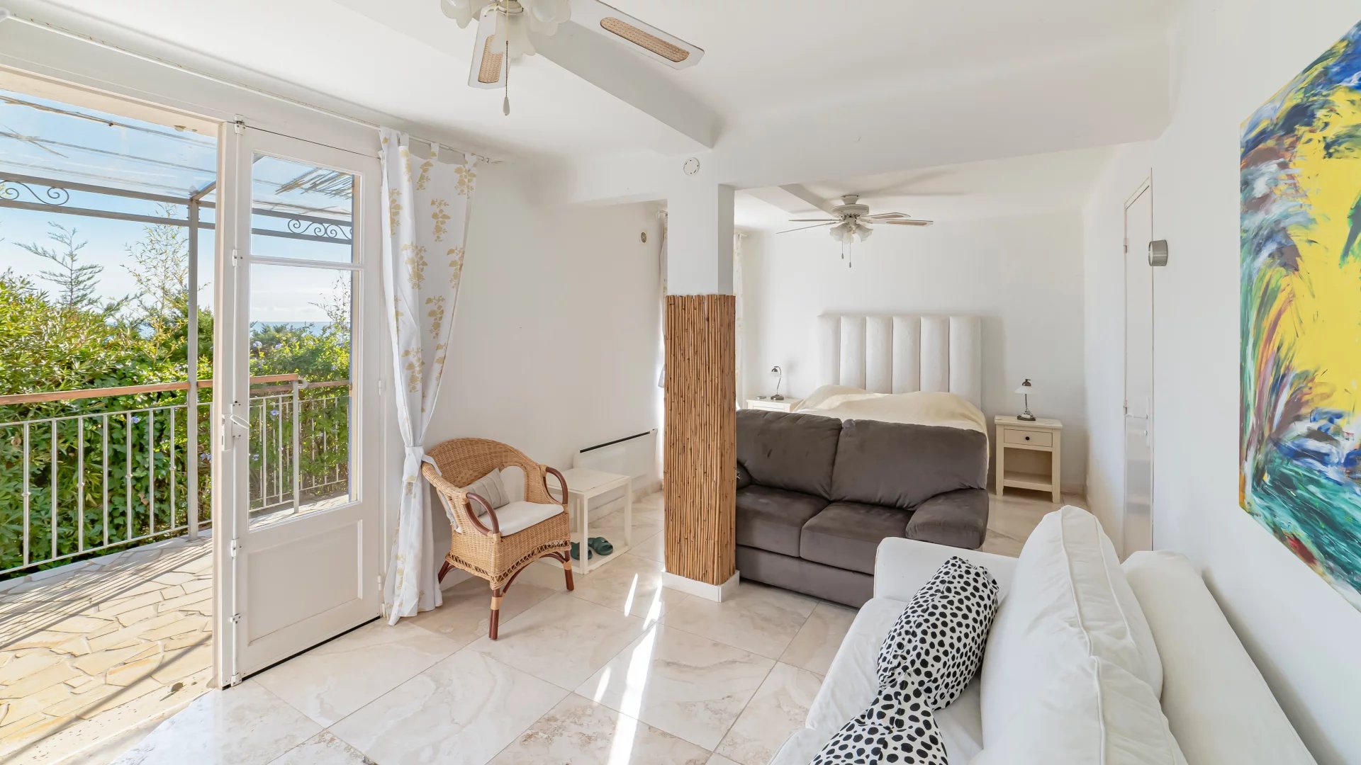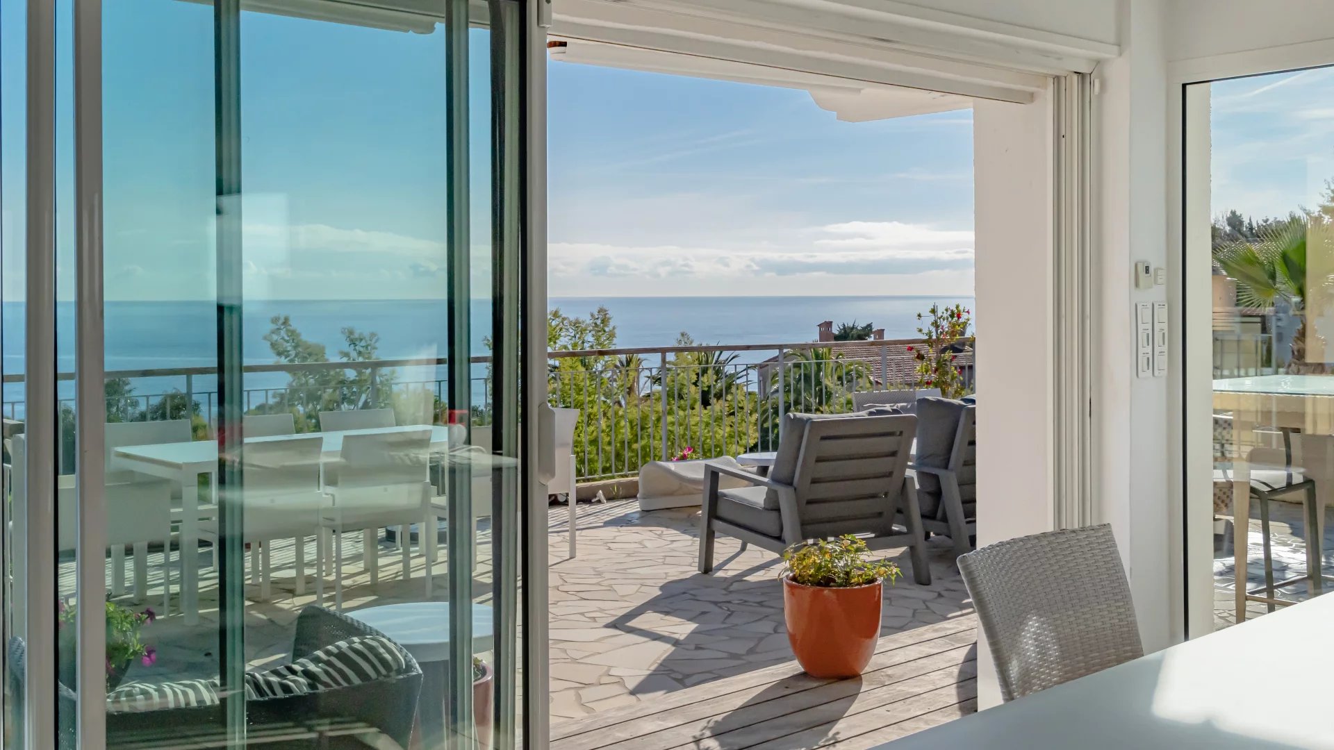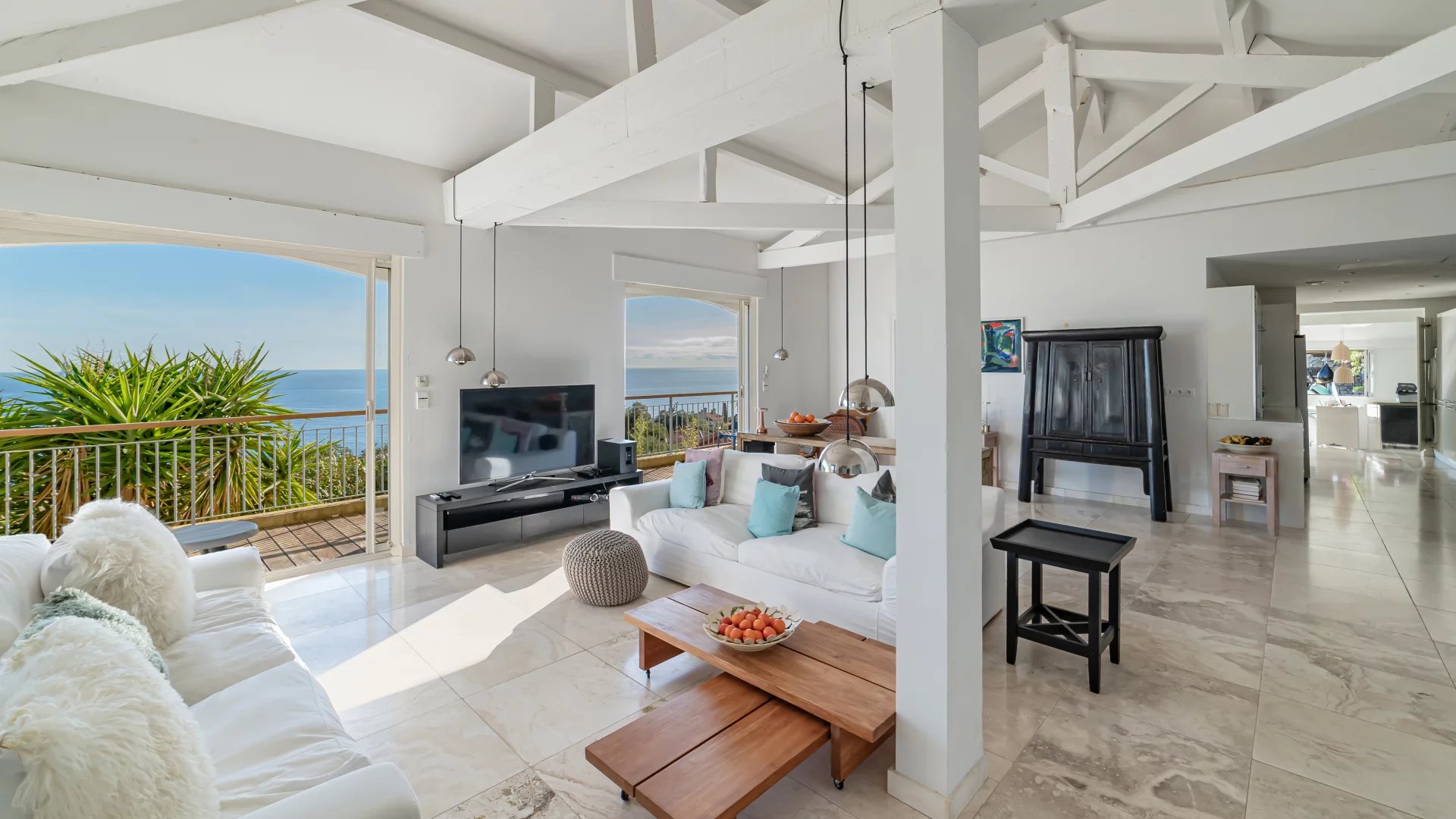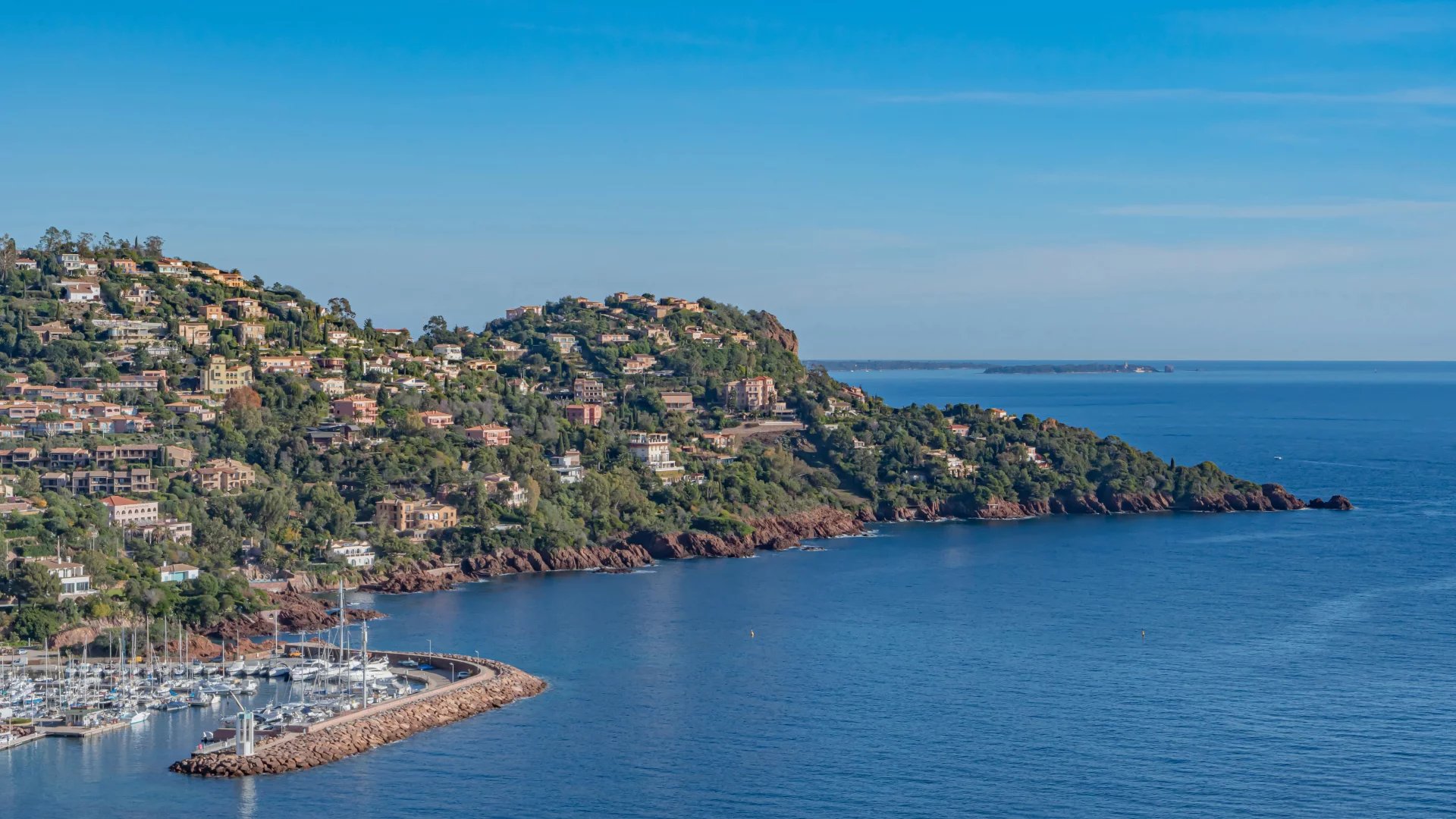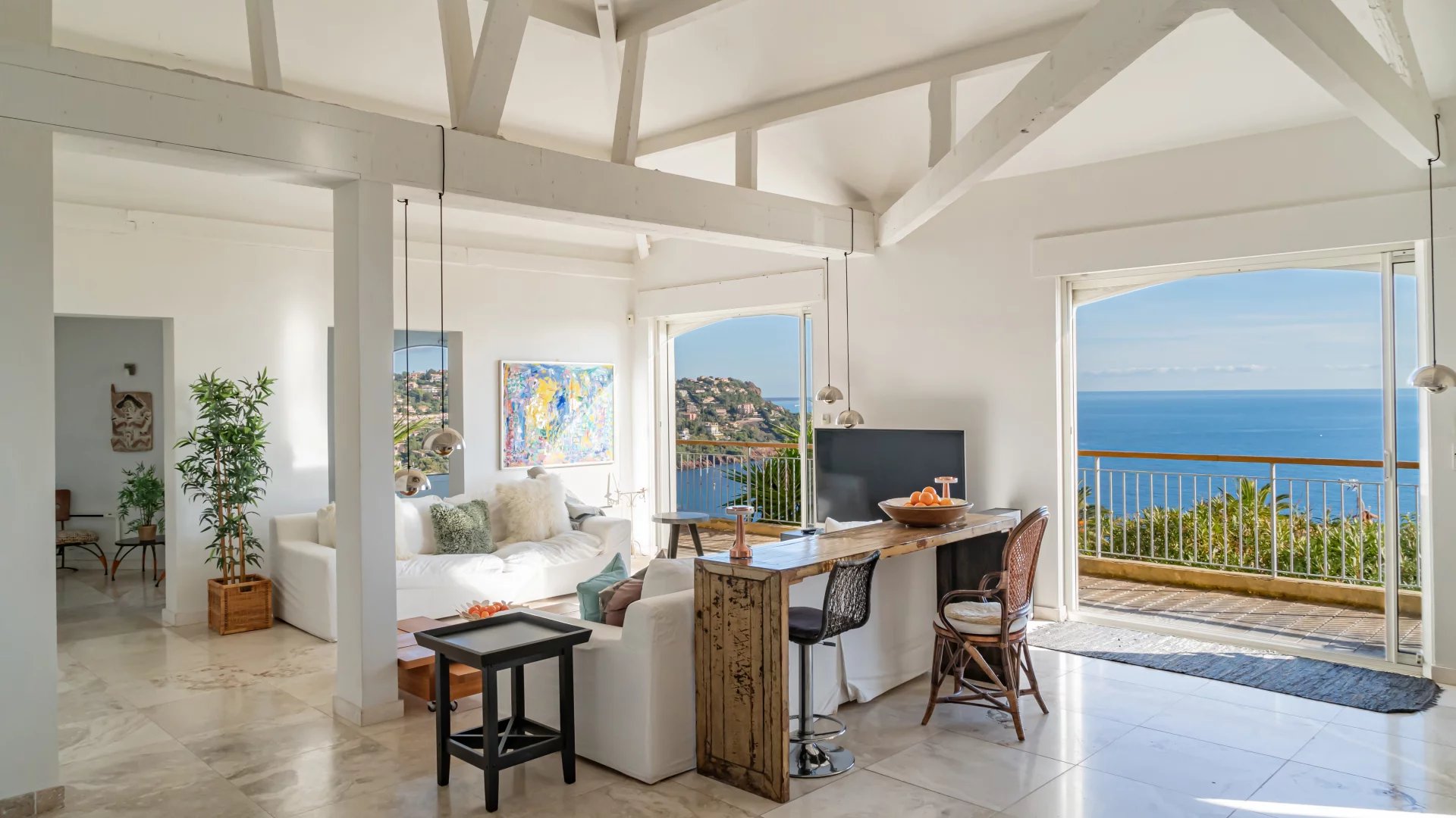 Located in a quiet residential neighborhood, just 10 minutes from shops and the village of Théoule-sur-Mer, this light-filled, south-facing house enjoys superb views of the sea and the Lérins Islands.