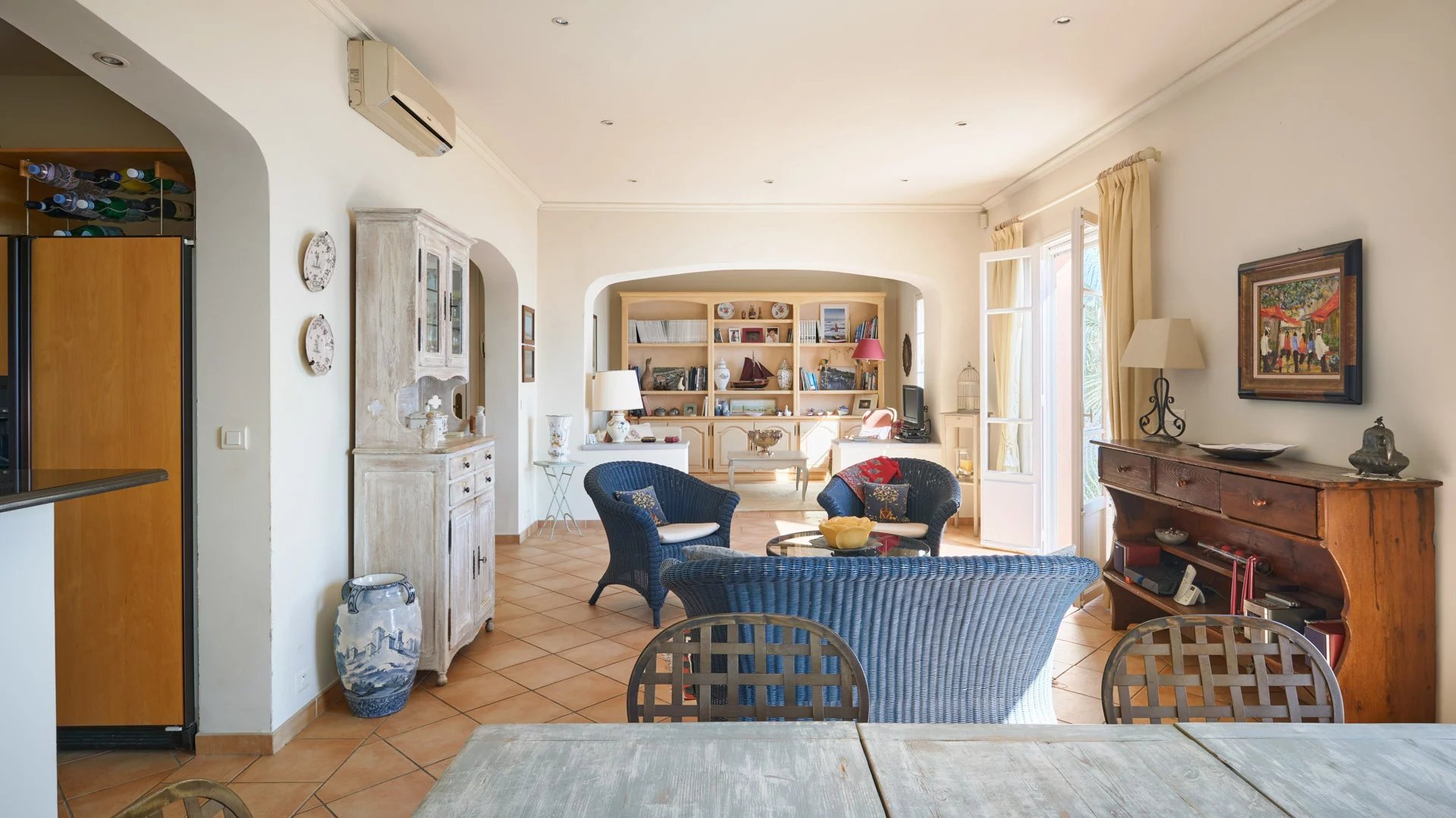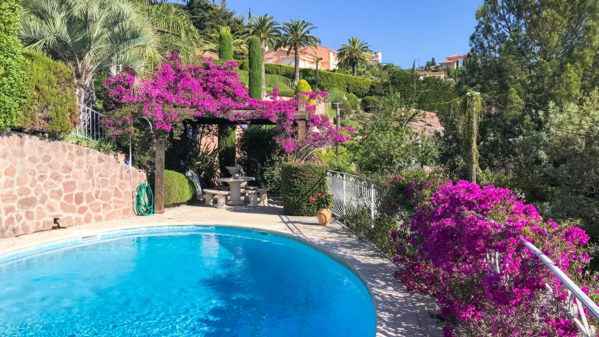 Located in a sought-after estate in Théoule-sur-Mer, 10 minutes from the village on foot and 15 minutes from Cannes, this magnificent property offers panoramic views of Théoule and the Lérins islands.