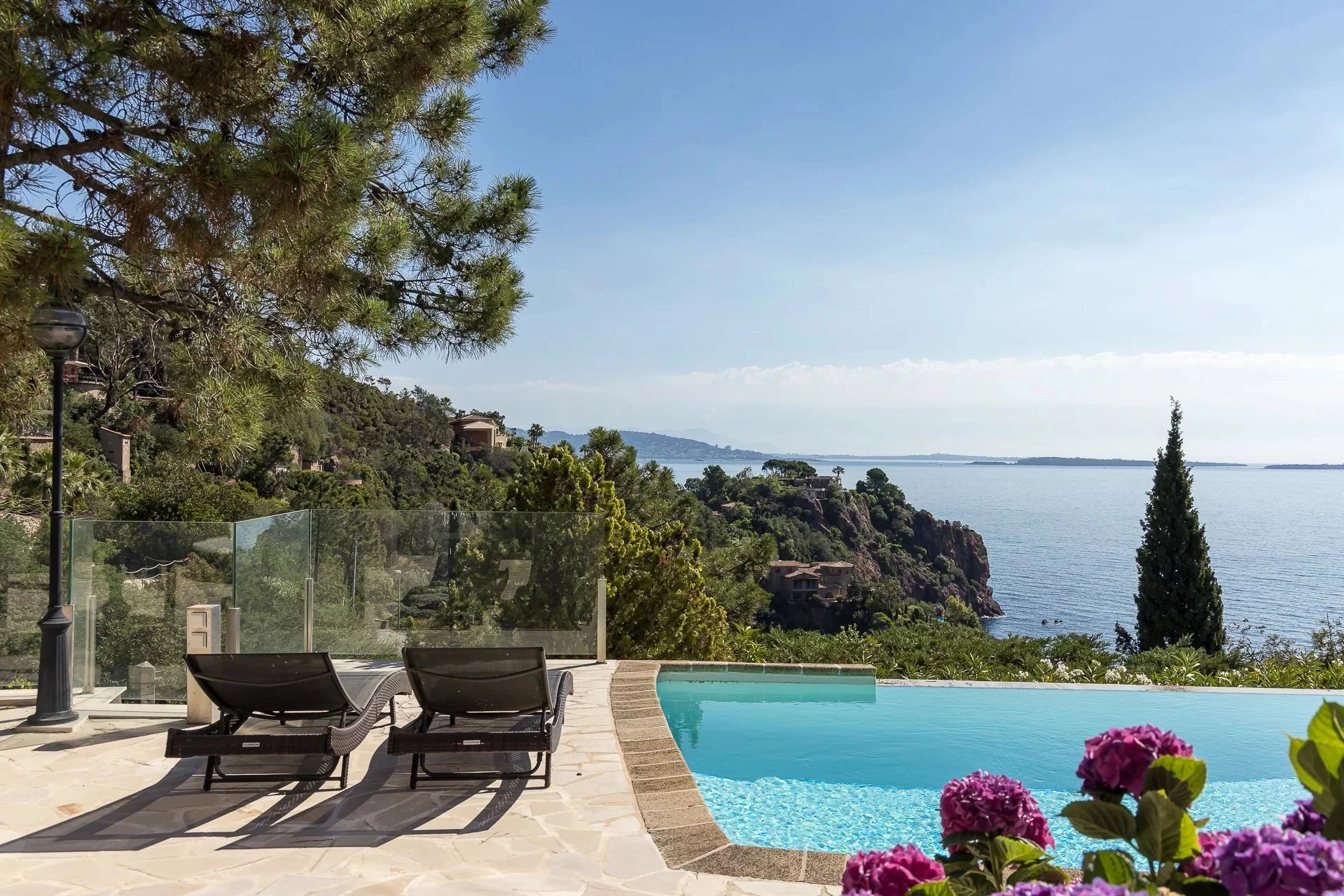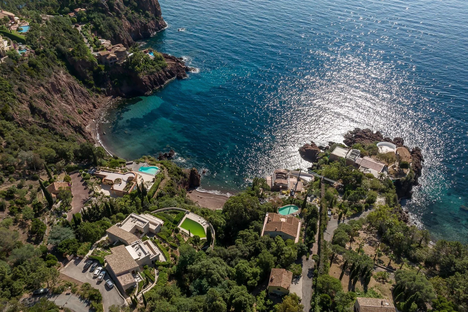 Built on 3 levels and completely renovated, this charming villa of approximately 261 sqm is located in a private waterfront domain. Access to a private beach within 10 minutes walk. 4 suites, 1 bedroom, a caretaker's flat and a double garage. 7 minutes from the centre of Théoule-Sur-Mer, 30 minutes from La Croisette and 45 minutes from Nice Airport.