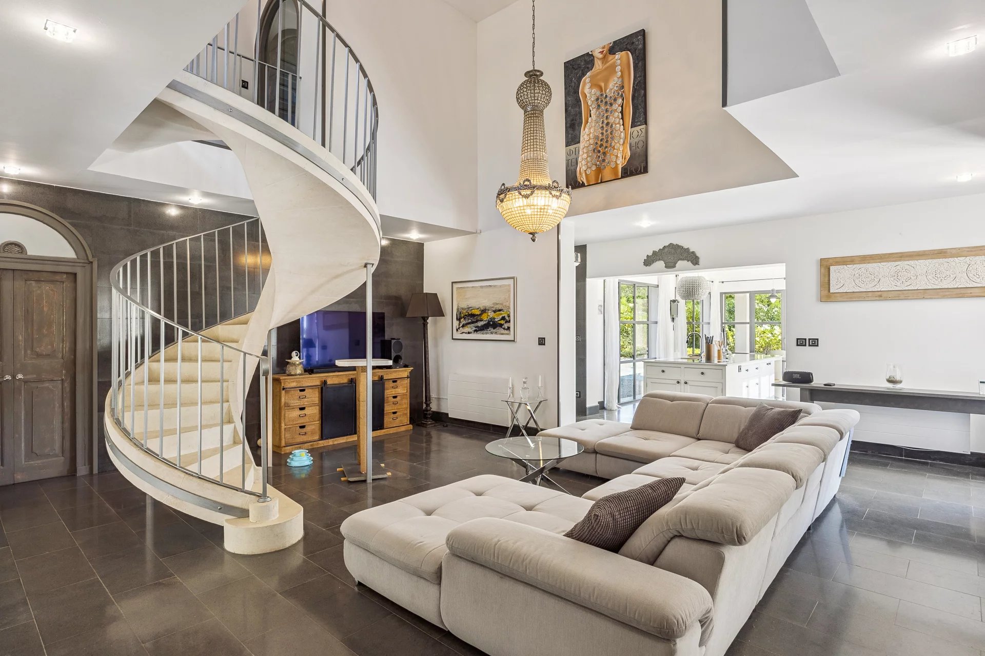 Learn moreFrom the moment you step into the spacious and refined entrance hall, the tone is set. It leads to a light-filled living room, enhanced by a majestic cathedral ceiling and an elegant stone staircase. This reception area opens onto a contemporary kitchen with a central island, bathed in natural light thanks to large bay windows that create a seamless connection between indoors and outdoors.
