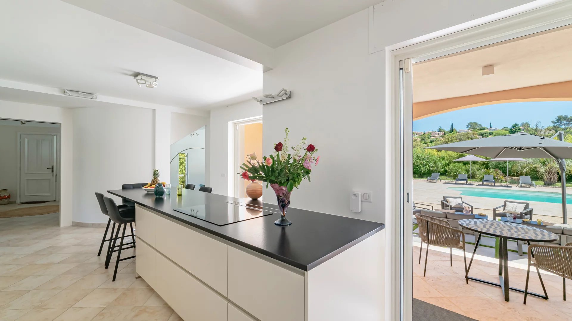 Outdoors, a fully equipped summer kitchen and a carport for two vehicles complete this remarkable property — located just 30 minutes from Nice International Airport.