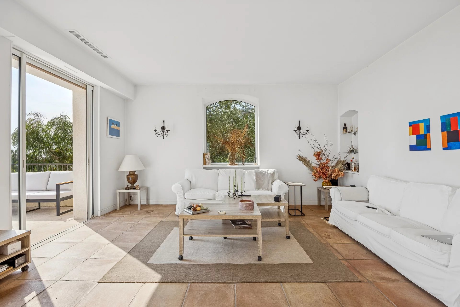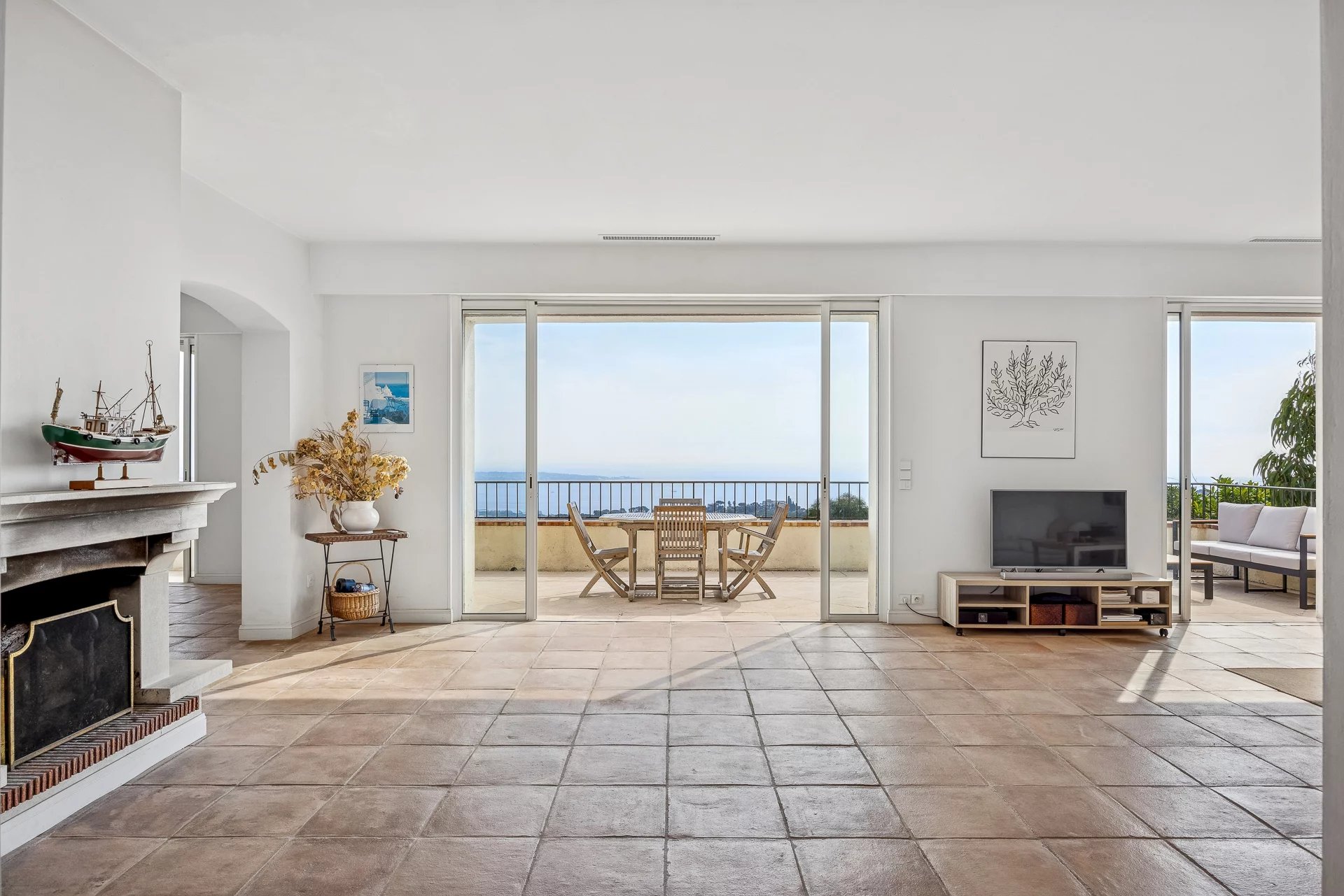 Nestled in a sought-after and perfectly quiet residential area, this elegant Provençal stone villa from the 1950s enjoys a privileged location close to main roads while offering an exceptional panoramic view of the sea, the Cap d’Antibes, and the mountains.