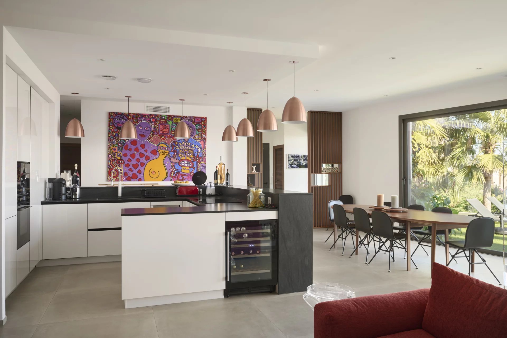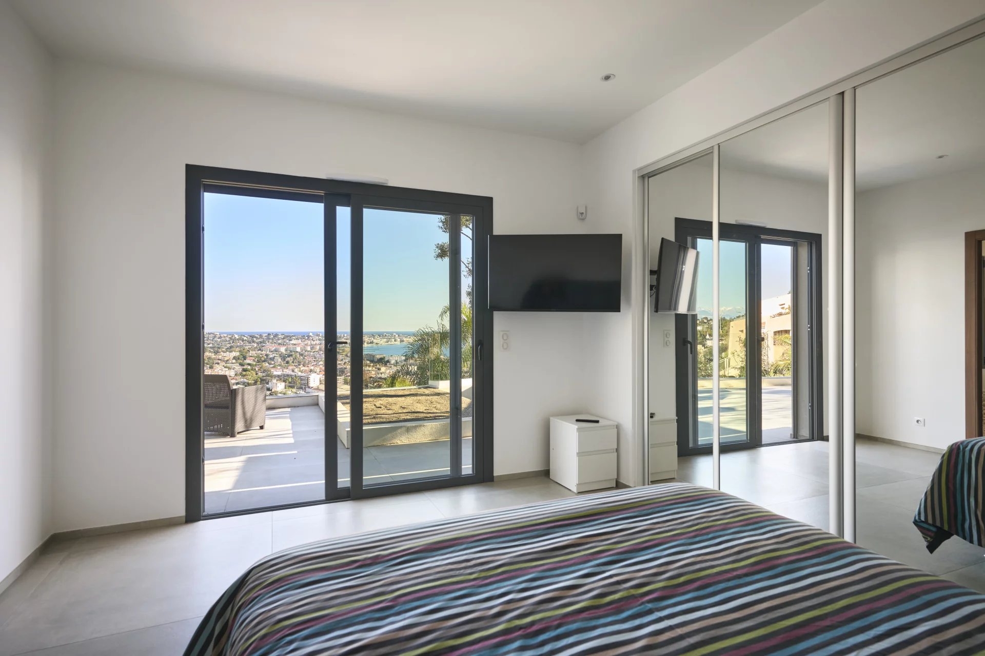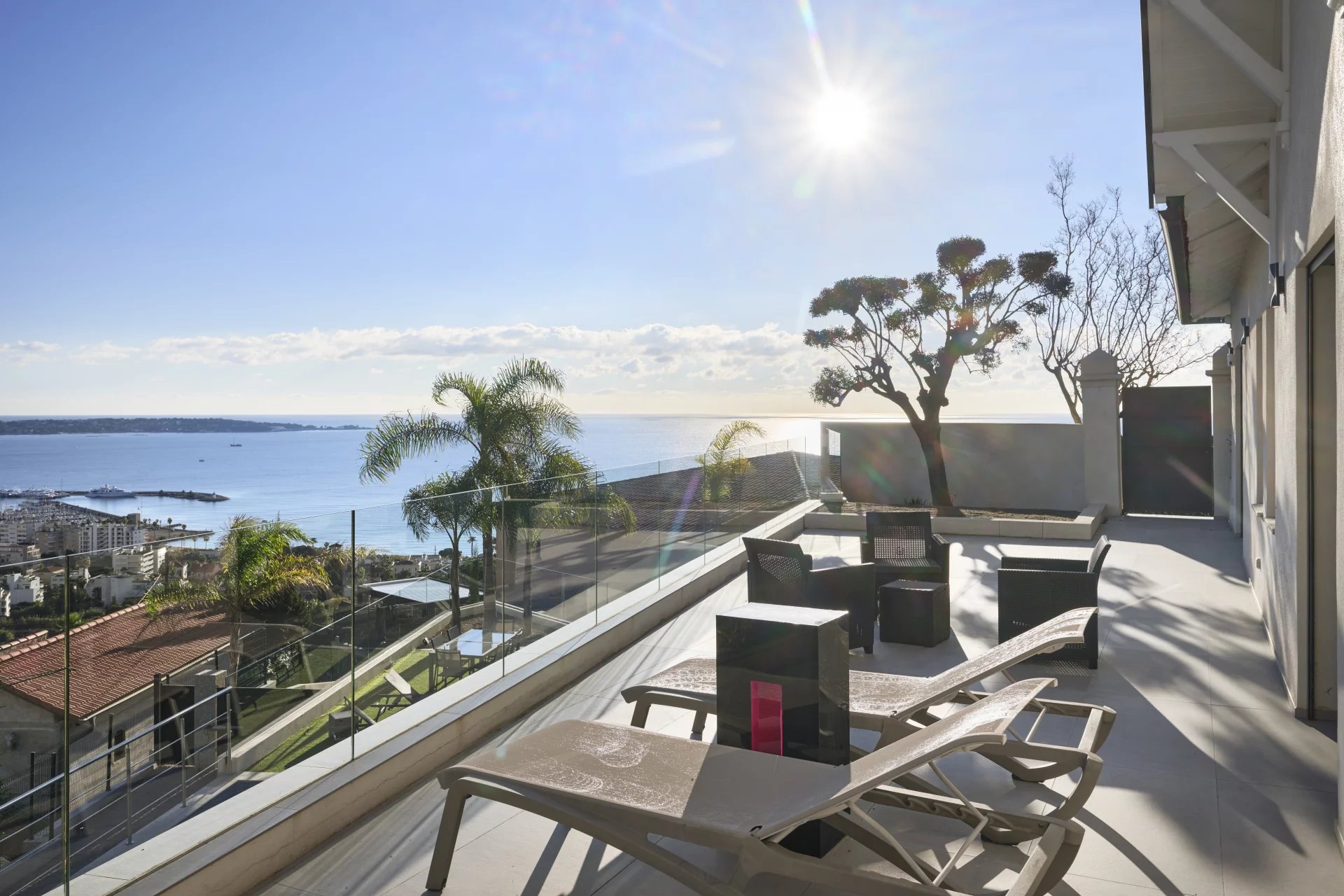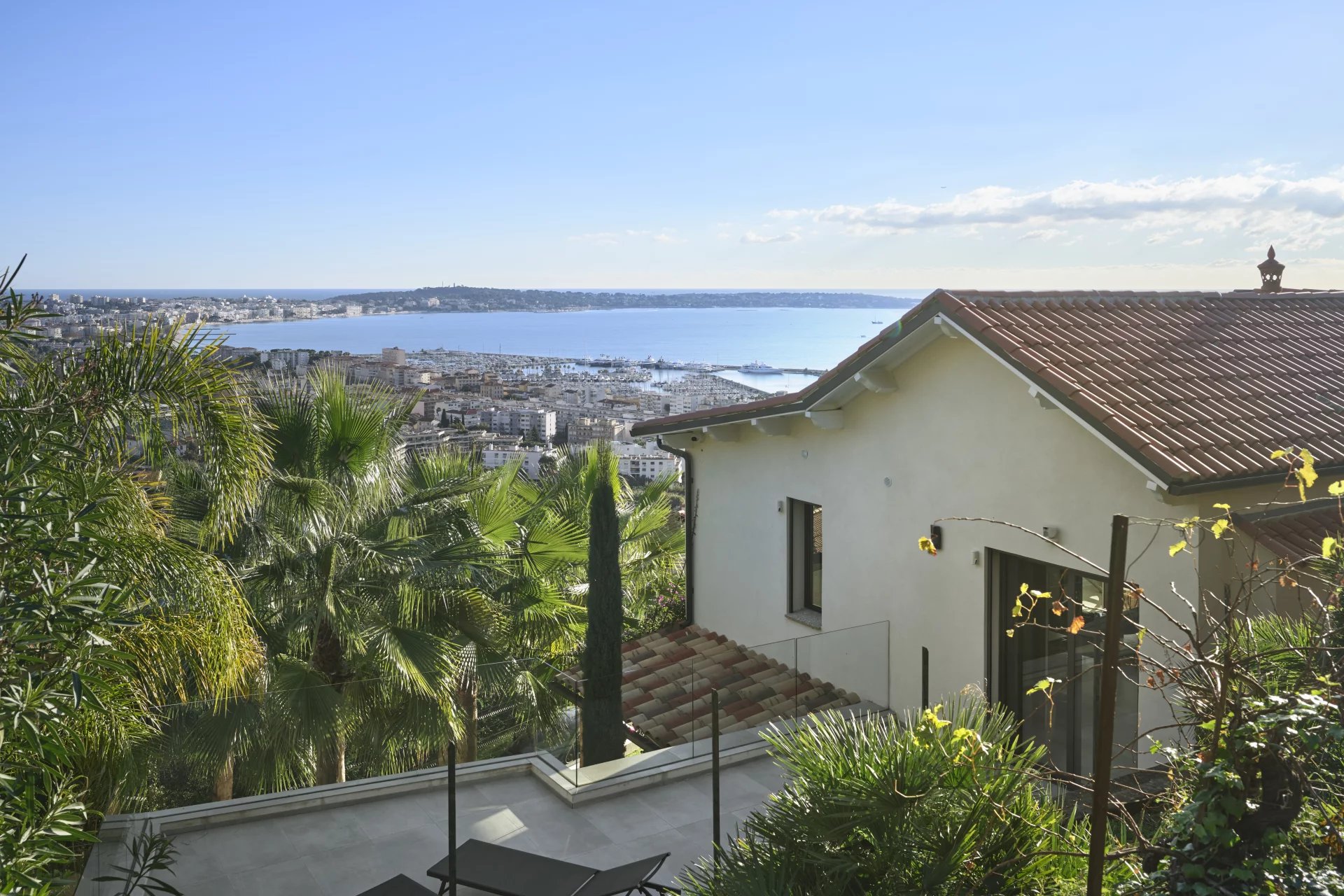 On the Golfe Juan hill, this beautiful, completely renovated villa offers a panoramic view of the sea and the Cap d'Antibes.