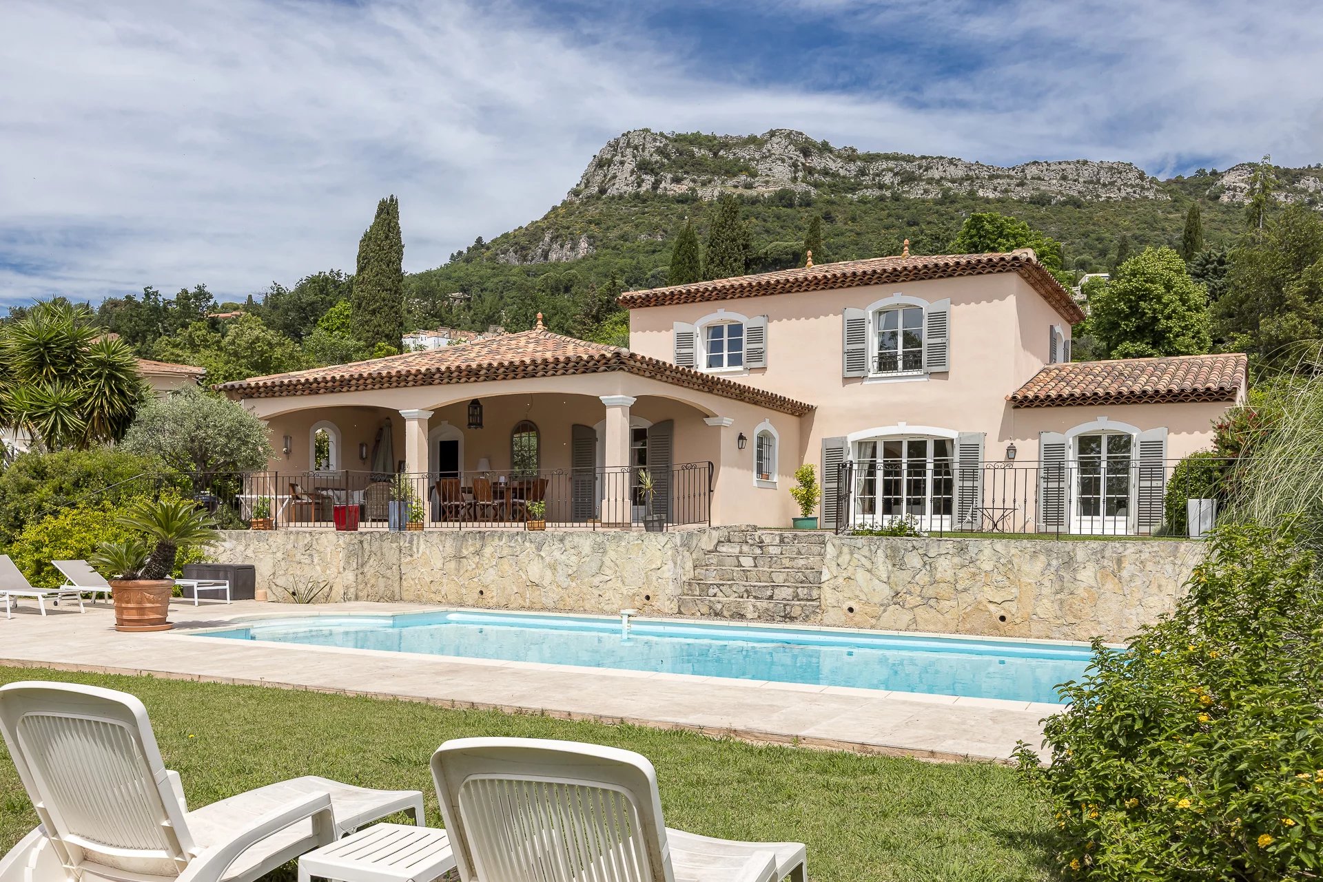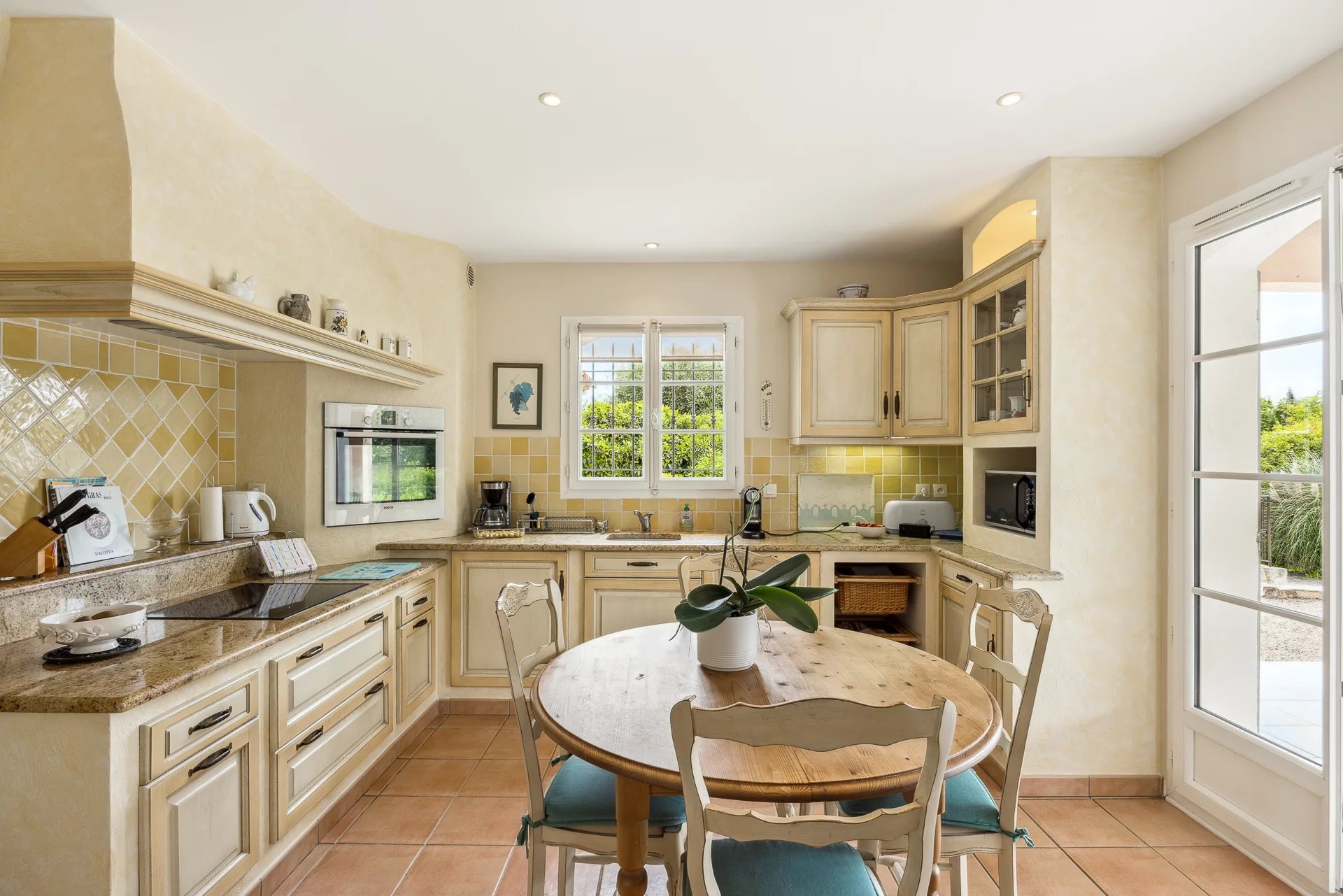 Discover this beautiful Provençal villa located in a sought-after residential area, set on a landscaped 1,500sqm plot, in a peaceful environment. It offers breathtaking views of the sea, lush hills, and enchanting scenery. Facing south, this home is bathed in natural light throughout the day.
