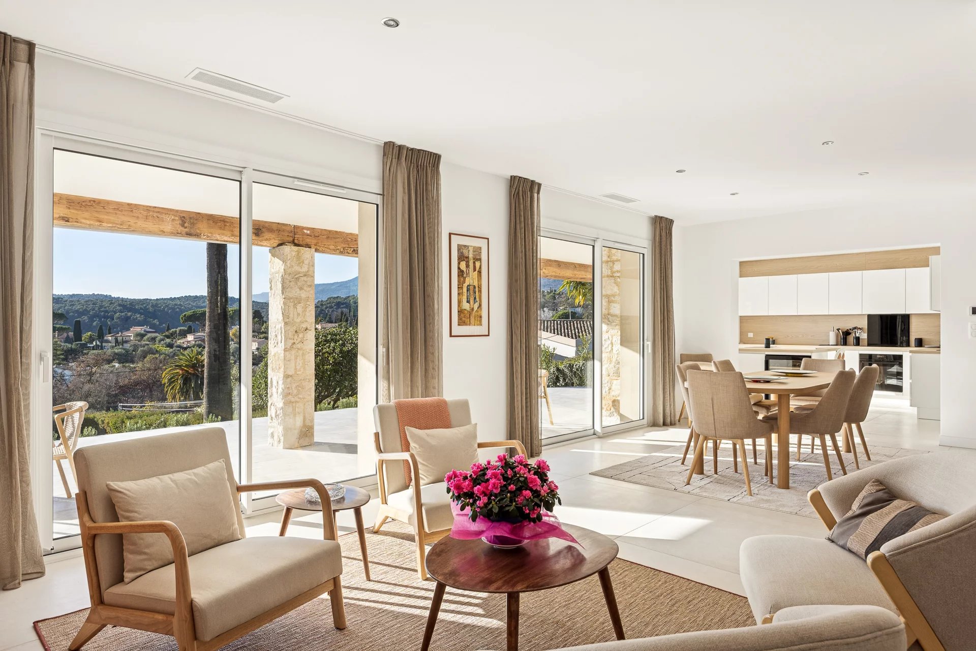 Discover this magnificent single-storey Provençal property, offering approximately 288 sqm of living space and fully renovated with great care. Set on a 2,200 sqm plot, this west-facing villa enjoys a peaceful environment and boasts breathtaking, elevated views.