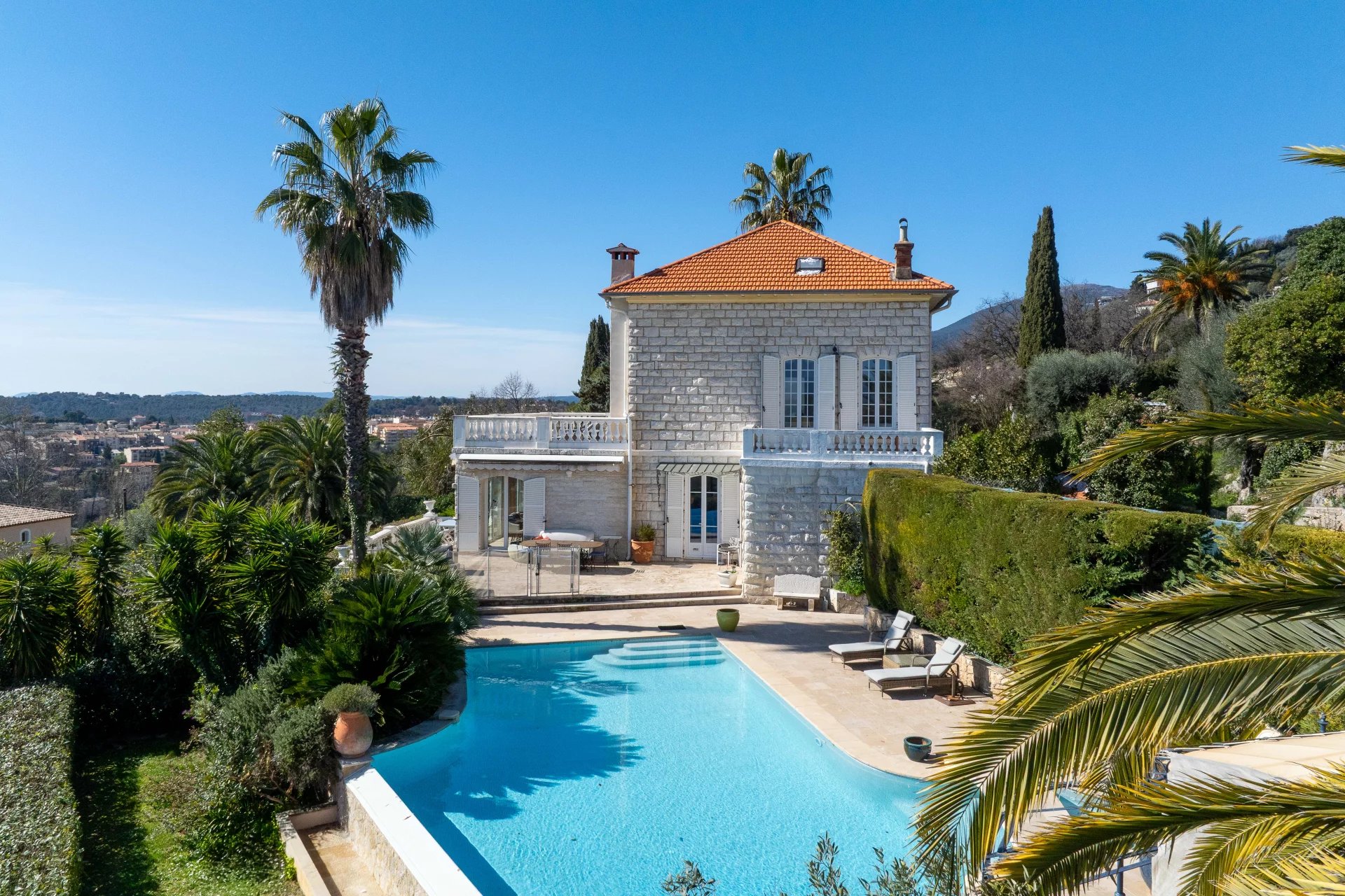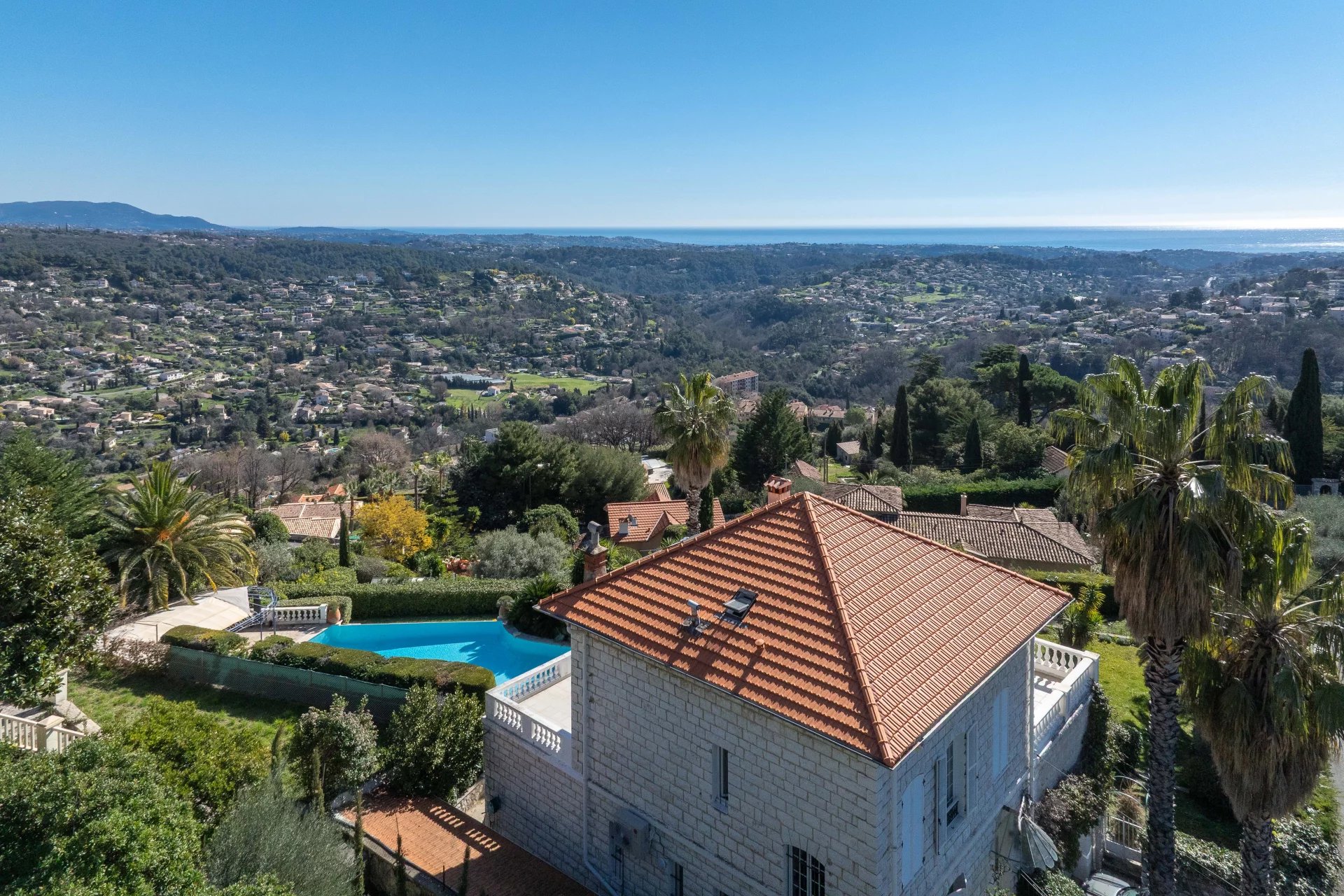 Price drop ! Located in the residential heights of Vence, this charming stone residence from the 1920s, approximately 240sq.m, offers an idyllic setting with panoramic views of the sea and the French Riviera. Its beautifully landscaped 1,500sq.m garden, enhanced by a stunning heated pool, invites relaxation.