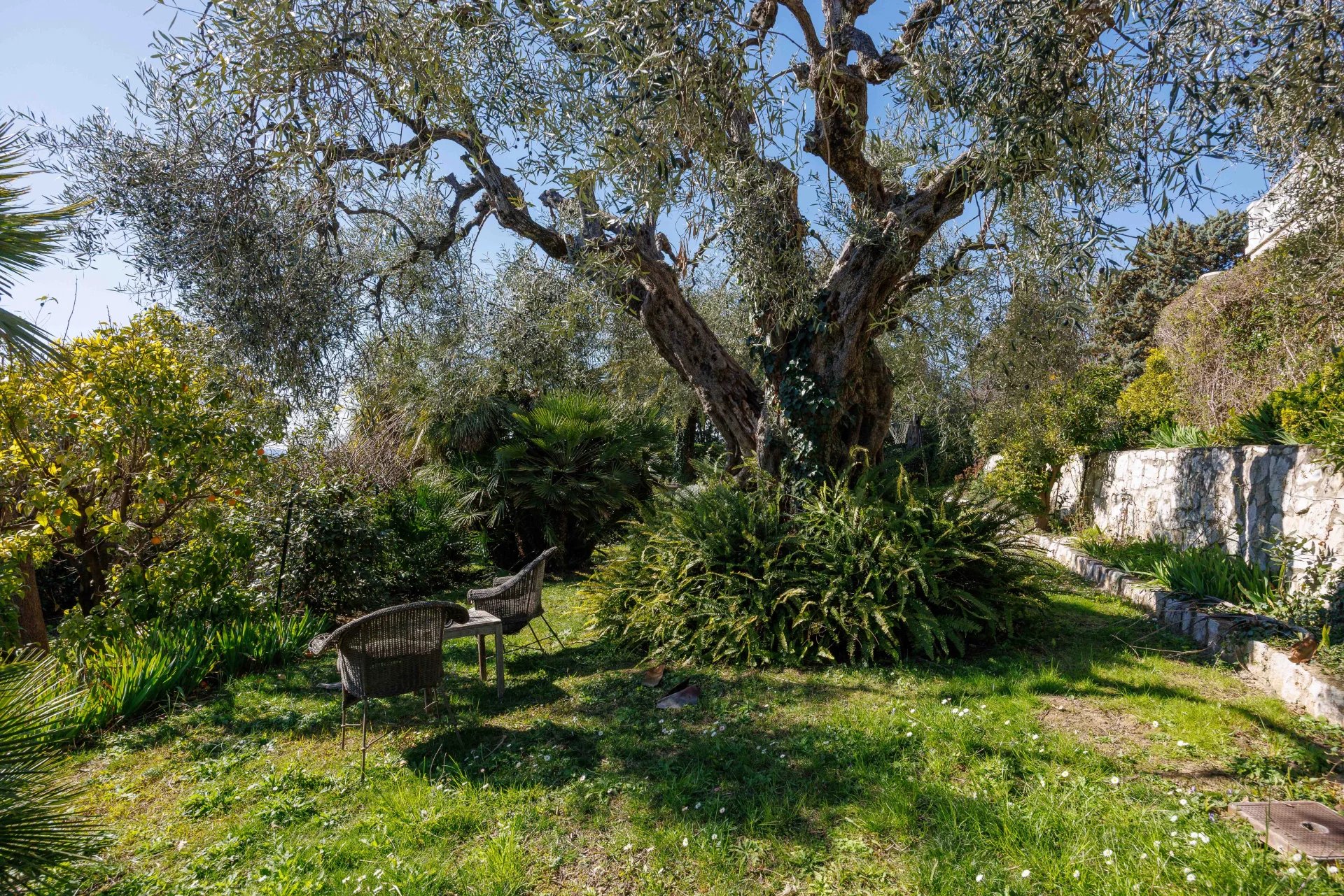A garage with an automatic door and two outdoor storage rooms add to the property’s convenience. Fully renovated with high-end materials, the house features a heat pump system for heating and cooling, underfloor heating in all bathrooms, double glazing, and a new roof. Secured by an alarm system with cameras, it is surrounded by a lush garden where olive and fruit trees complete this true haven of peace.