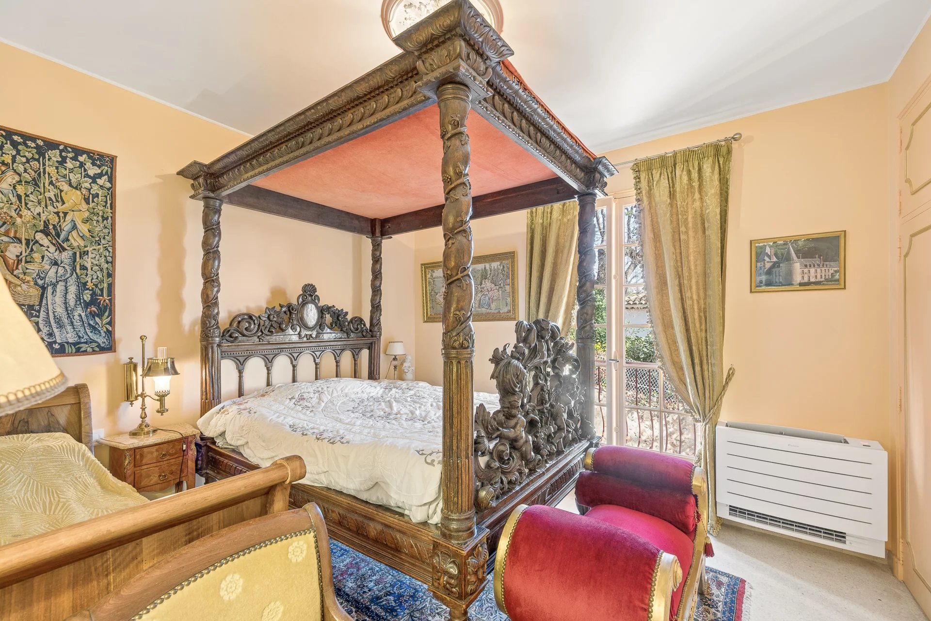 On the main floor, the light-filled reception rooms open onto a terrace, perfect for relaxing moments and summer evenings. The master bedroom, a truly romantic retreat, provides a generous and intimate space.