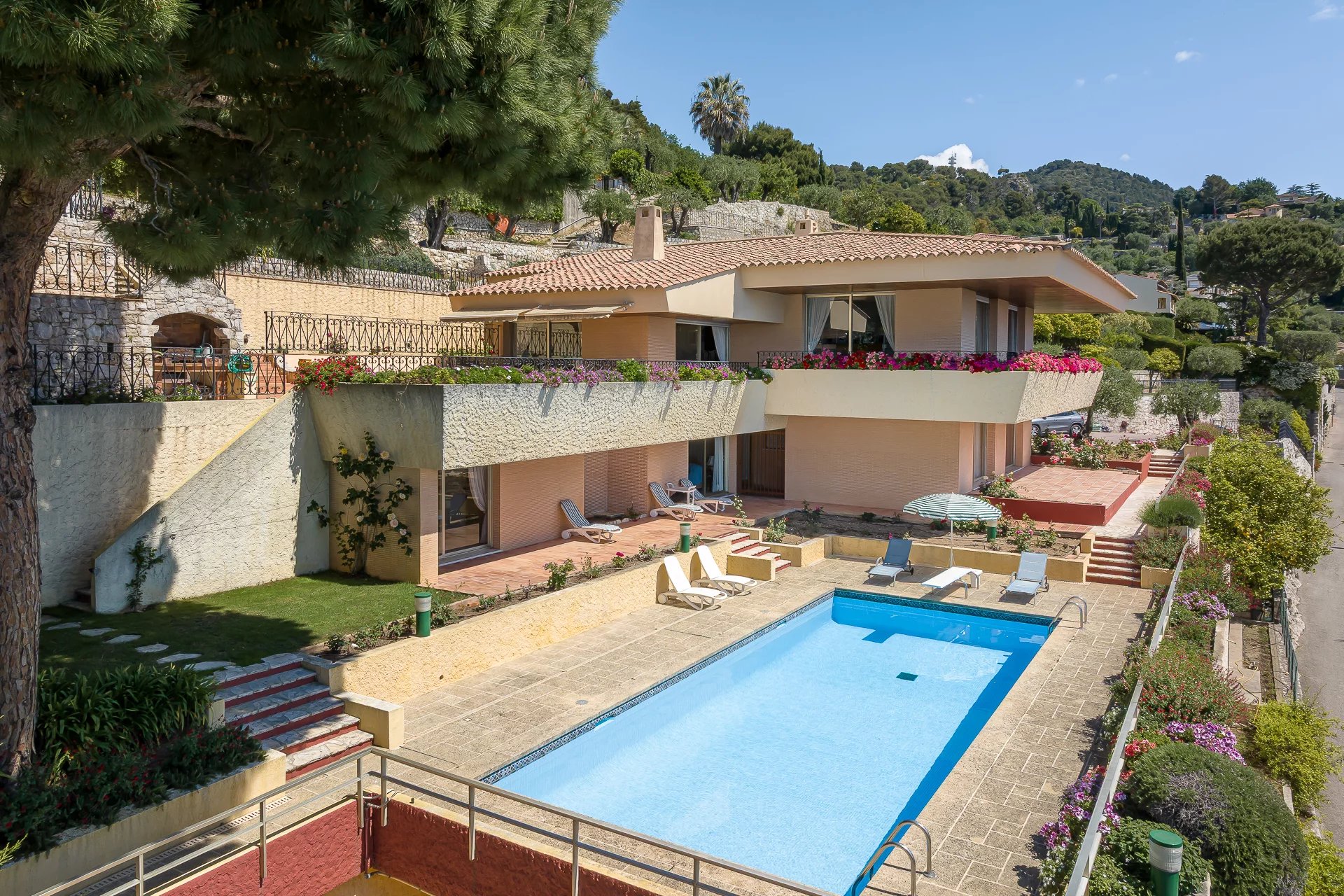 Located in the most sought-after private domain in Villefranche-sur-Mer, this villa stands out with its contemporary design and generous volumes. Designed in the 1970s by a renowned architect, it retains a striking sense of modernity.