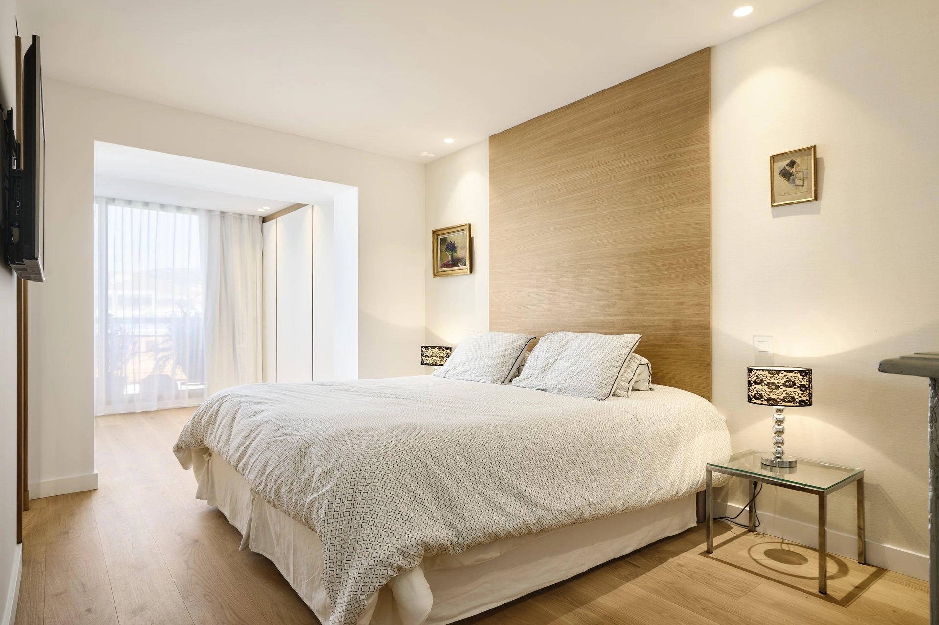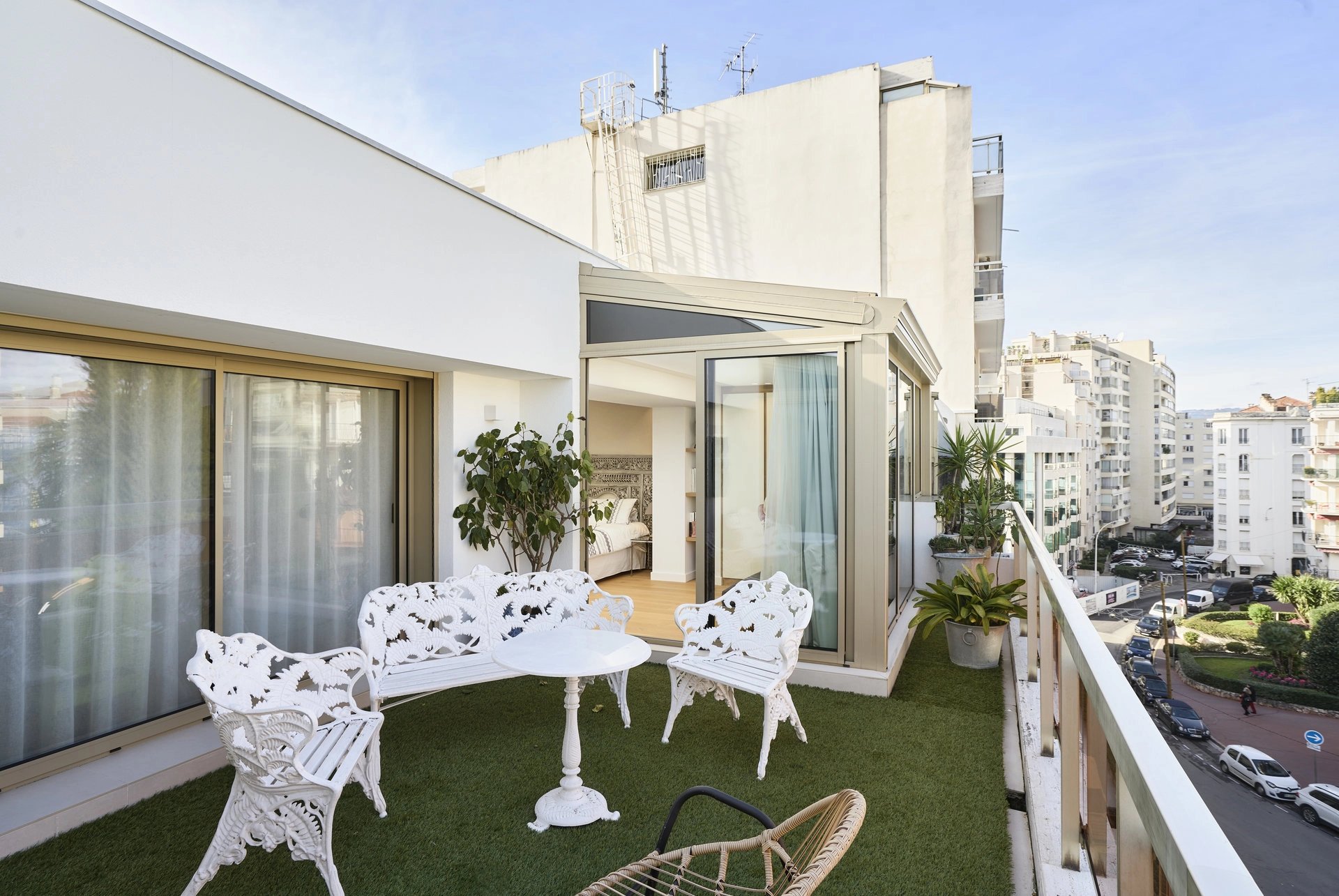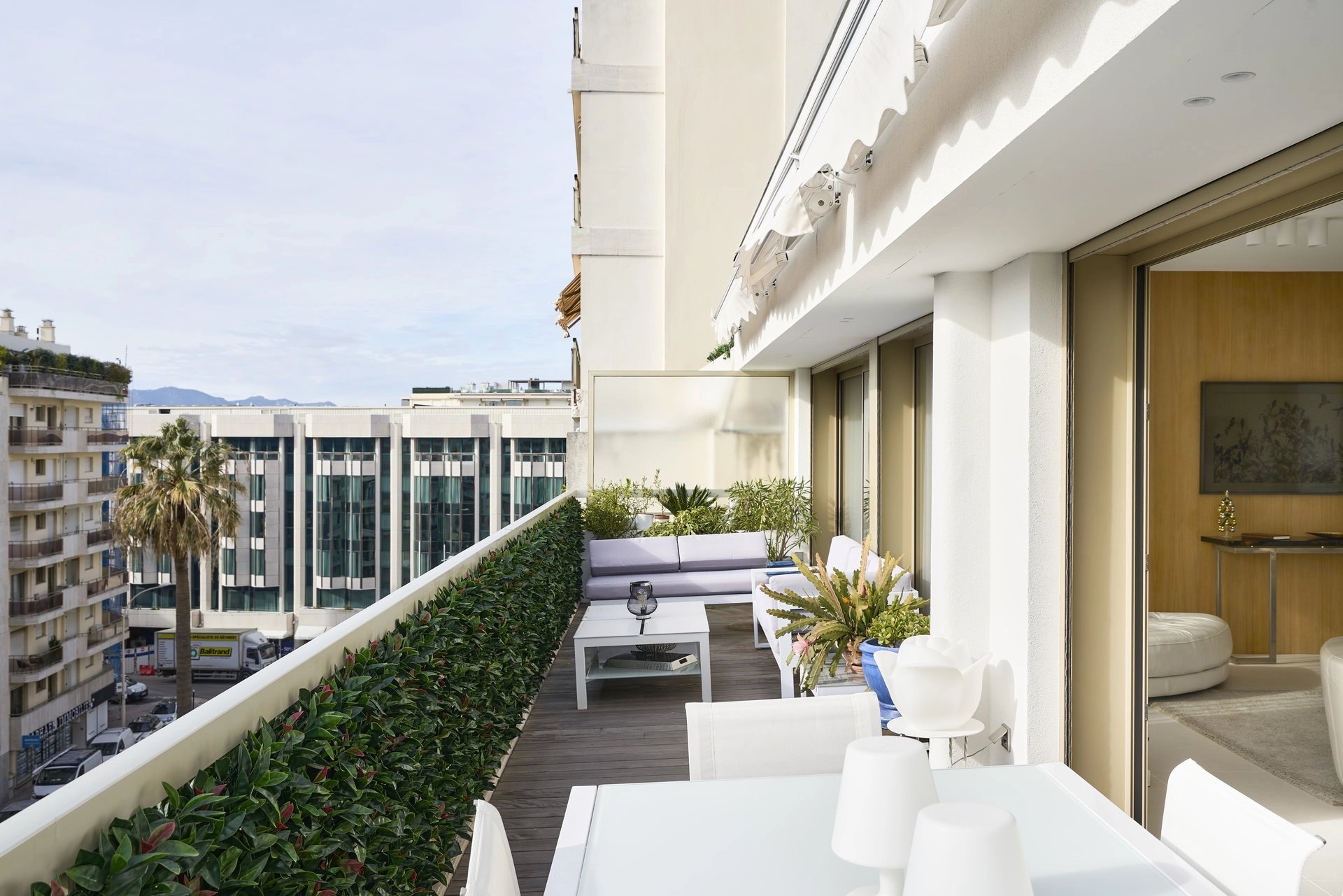 Facing south, contemporary, fully air-conditioned 165 sq.m apartment on the top floor ( 5th) of a city centre residence, a few minutes walking distance from the beaches and the Palais des Festivals.