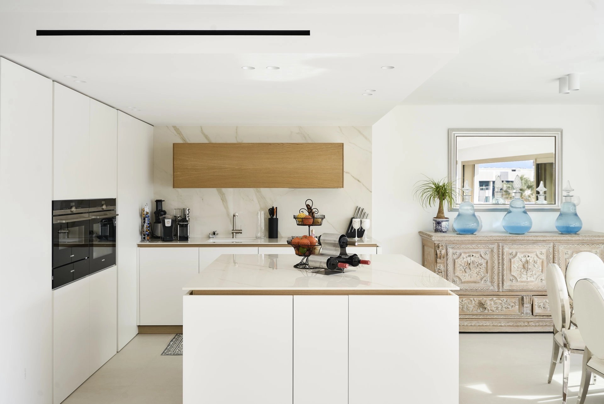 an attractive reception room with lounge, dining area and fitted kitchen opening onto the terrace