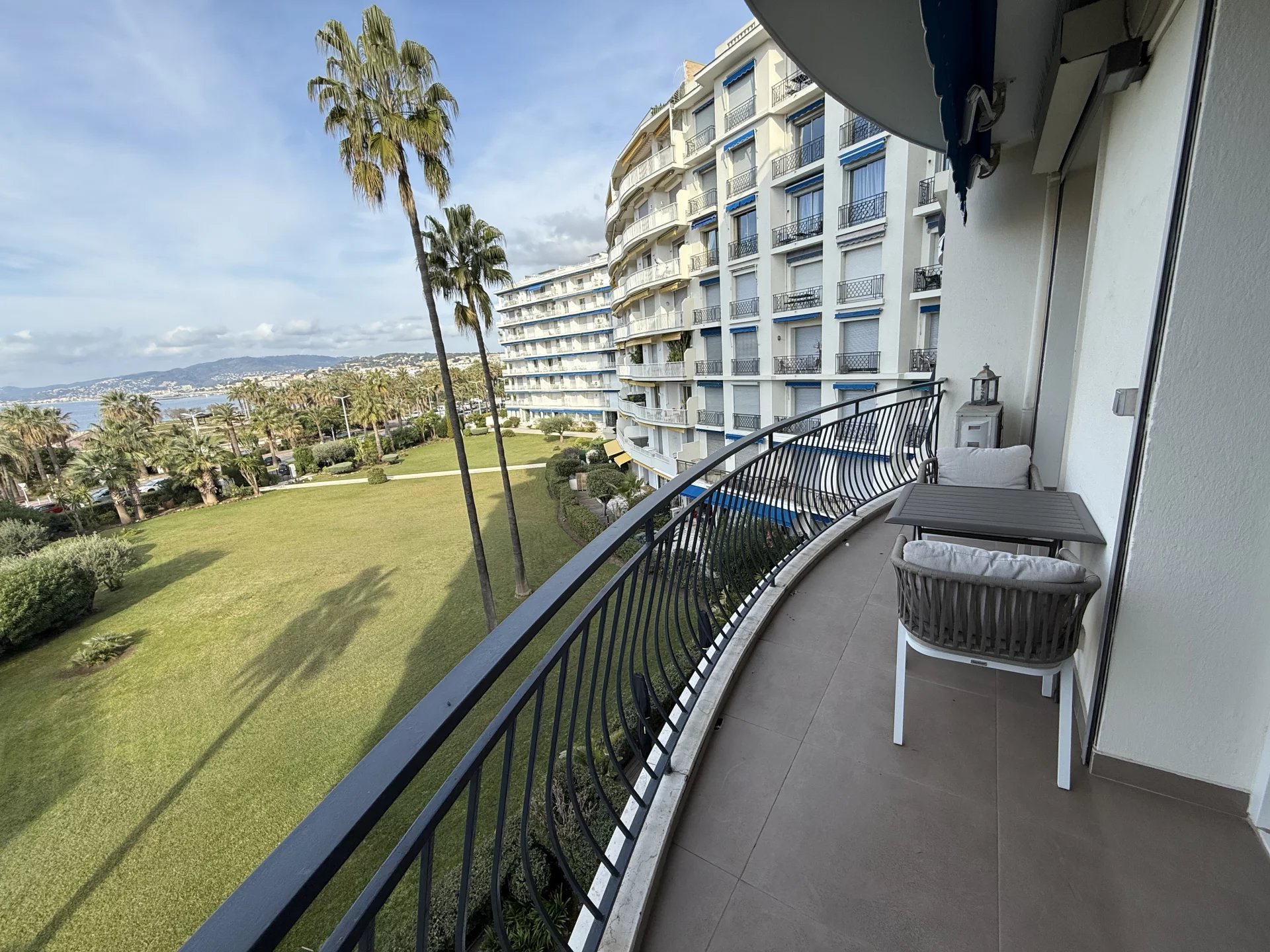 Ideally located on the Croisette, this appartment of approximately 80 m² includes: a large living room, dining room opening onto a terrace, an American-style kitchen and 2 en-suite bedrooms with shower room and bathroom. Very bright apartment.