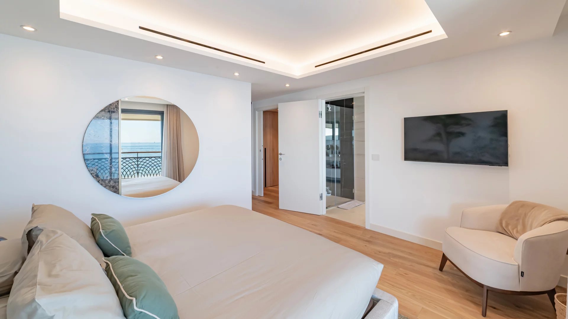 Its direct access to the beach and prime location next to the Palm Beach complex make it a truly exceptional address — perfect for both holiday stays and professional trips to Cannes.
