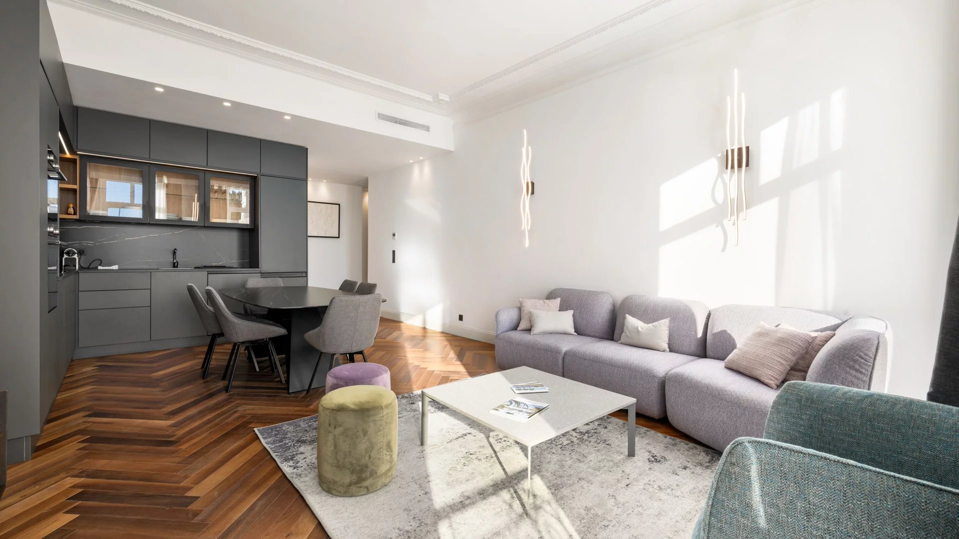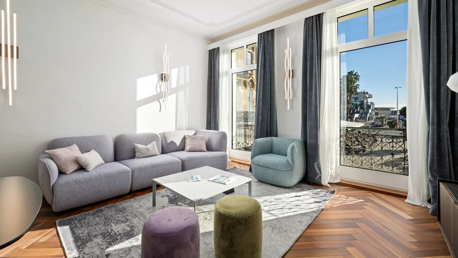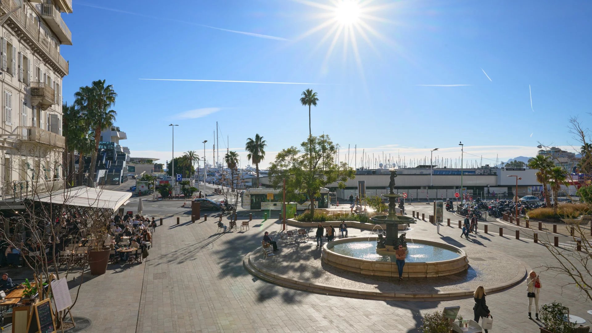Ideally located opposite the Palais des Festivals with views over the Place Charles de Gaulle, the old port of Cannes and Le Suquet, attractive contemporary apartment of 120 sq.m, fully renovated and air-conditioned.