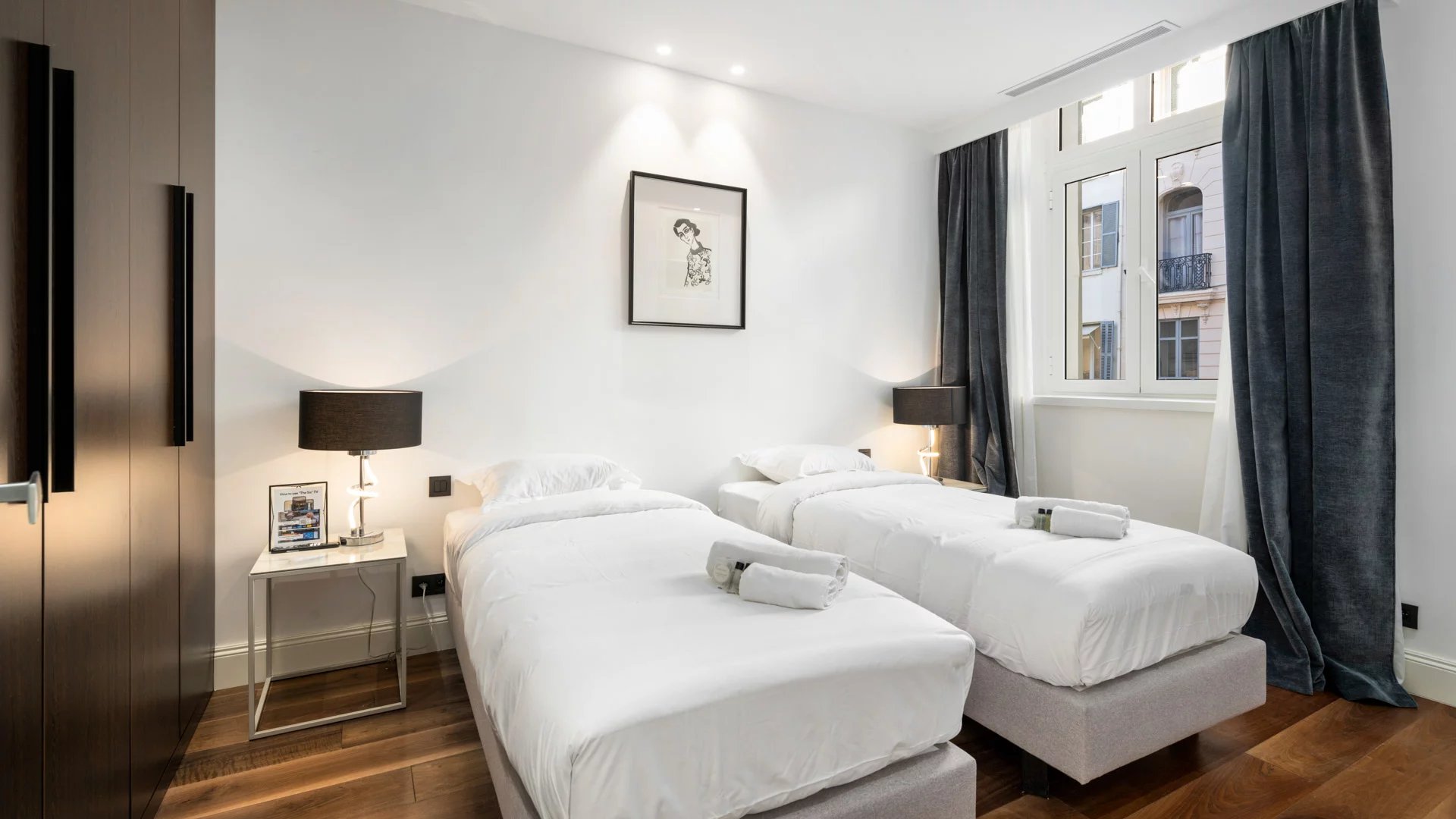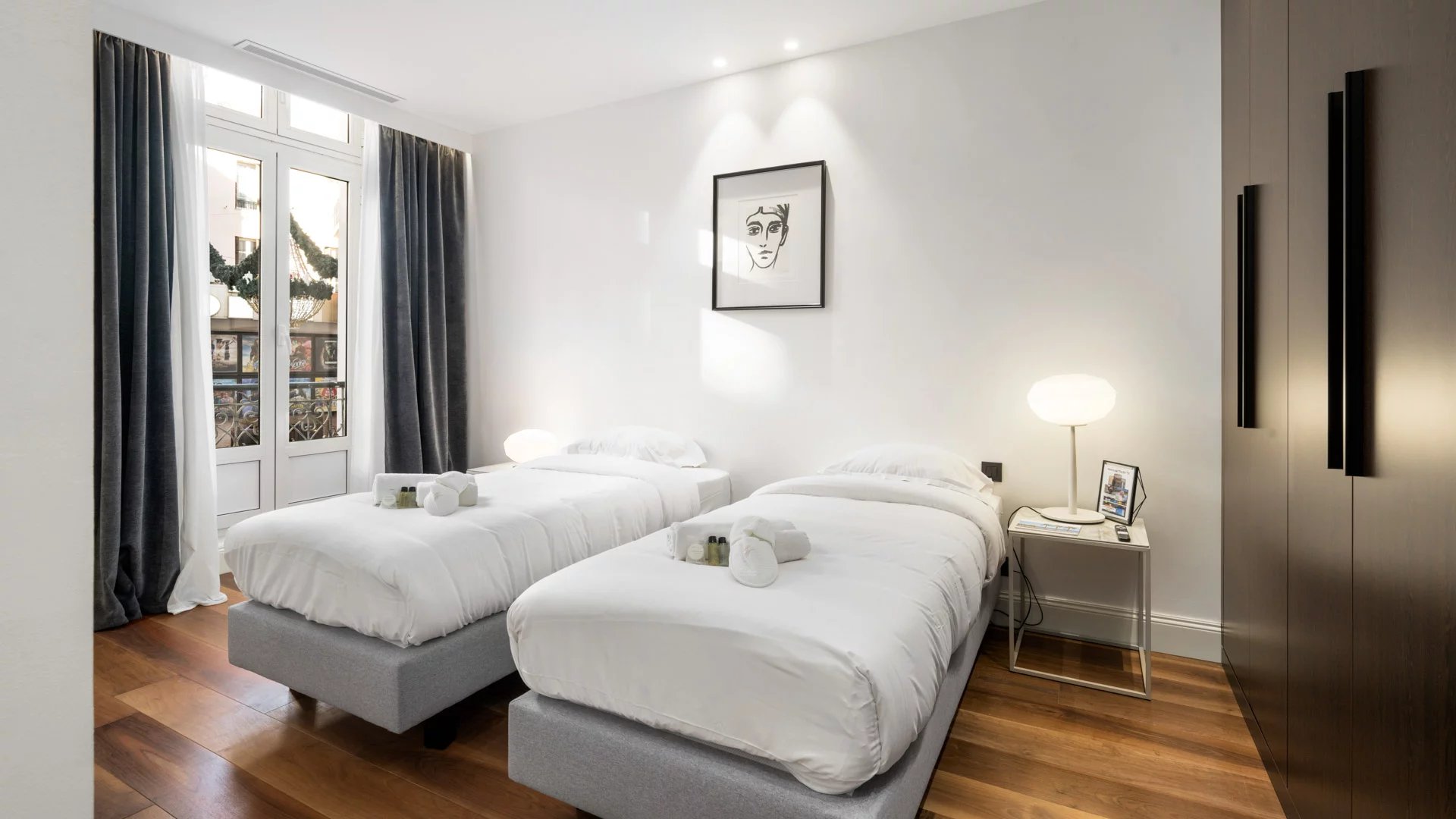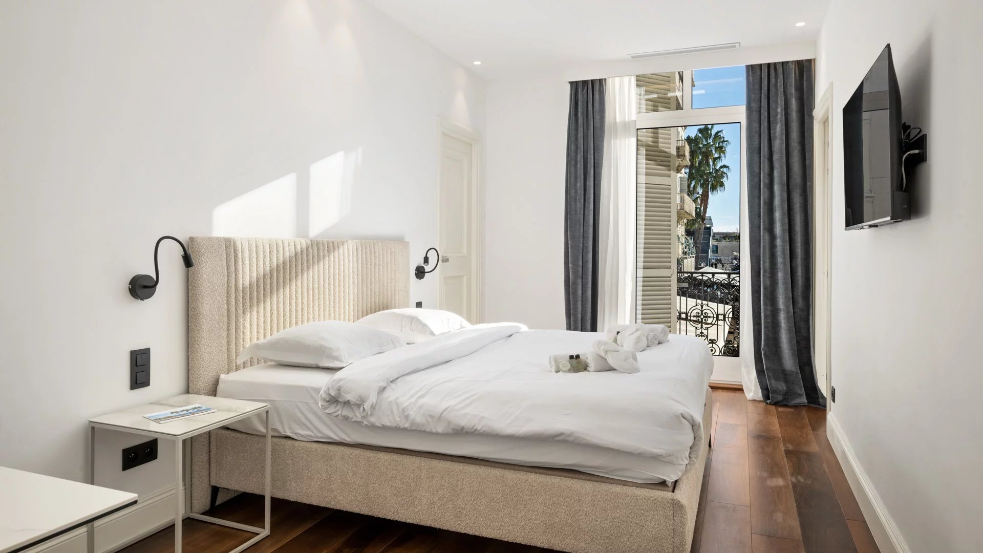 Master bedroom (2 single beds or king size bed) opening onto balcony facing the Palais des Festivals - Dressing - Shower room / WC