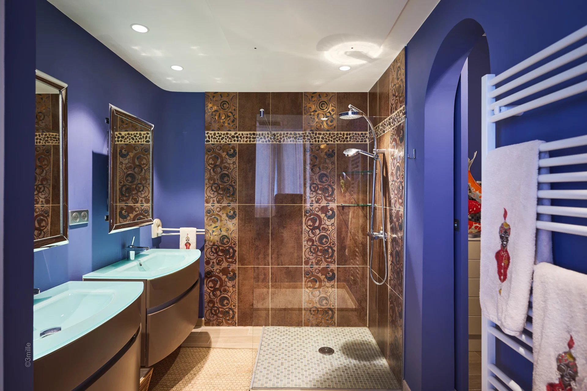 Master bedroom (double bed) opening onto the terrace, sea view – Shower room / WC