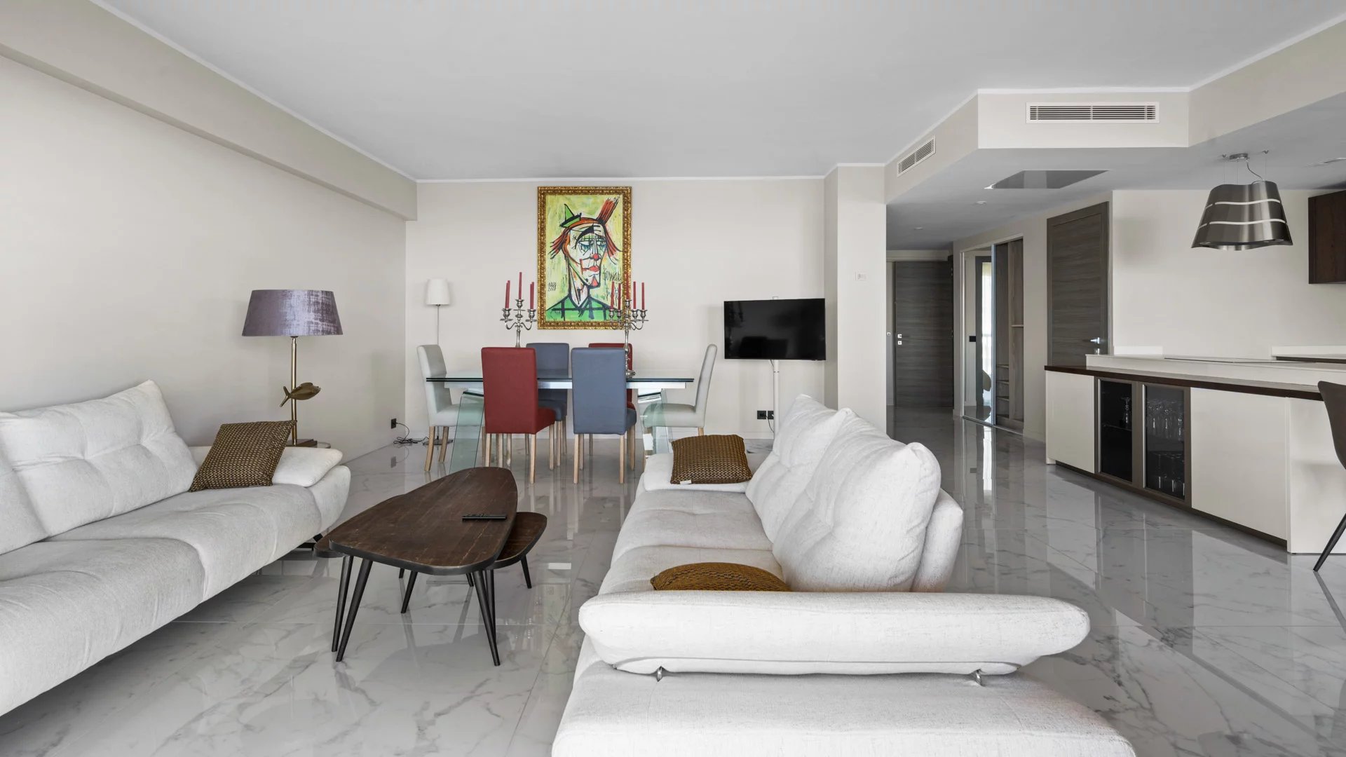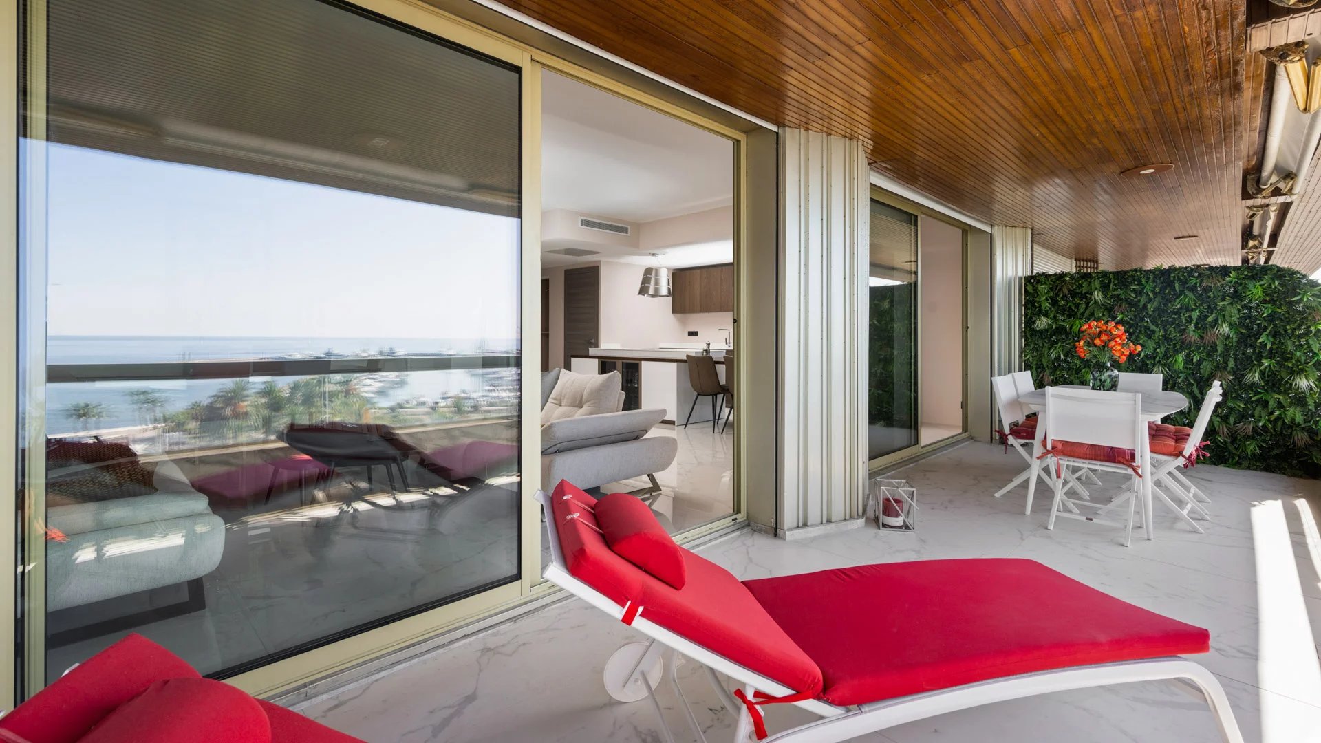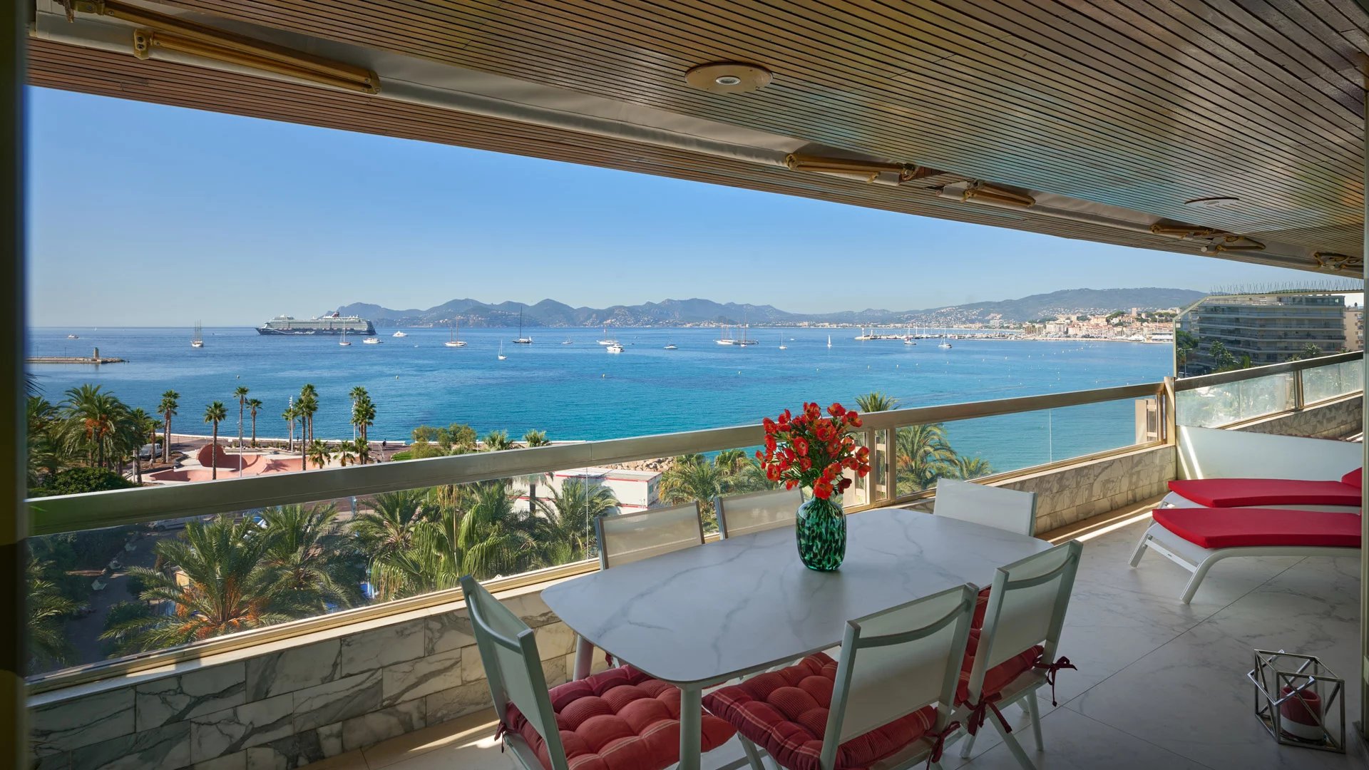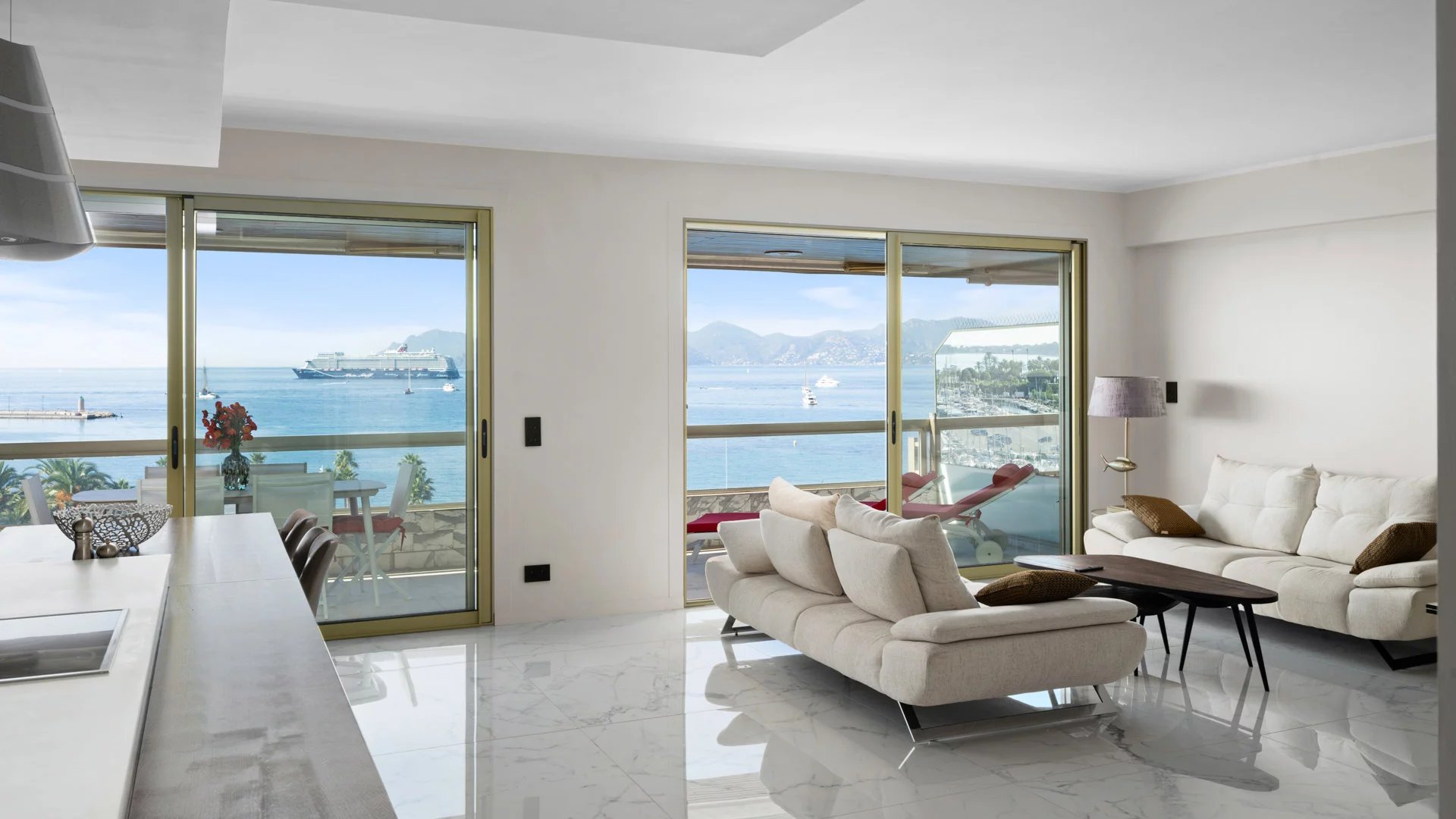 On the 7th floor, facing the sea and overlooking the Croisette, this attractive 90 m² apartment boasts panoramic sea views over the Bay of Cannes, Port Canto and the island of Sainte Marguerite.