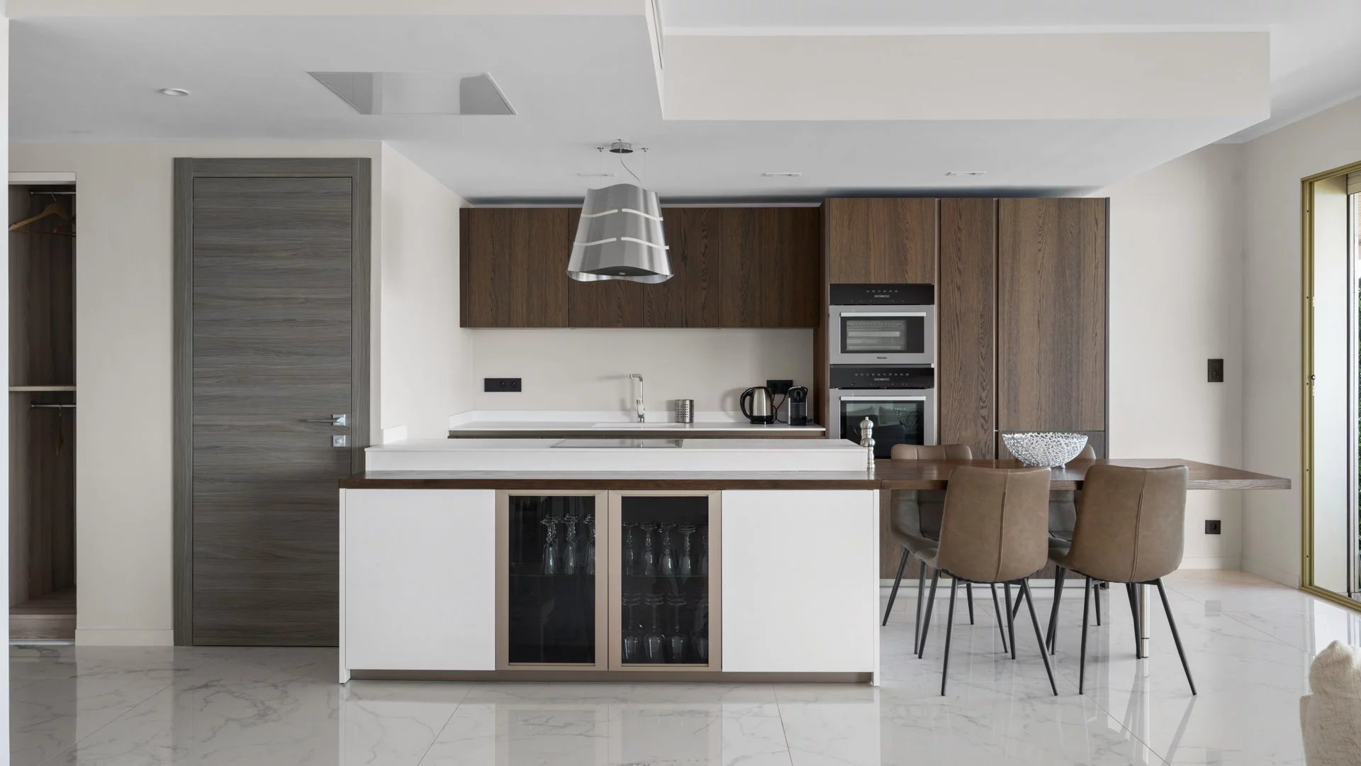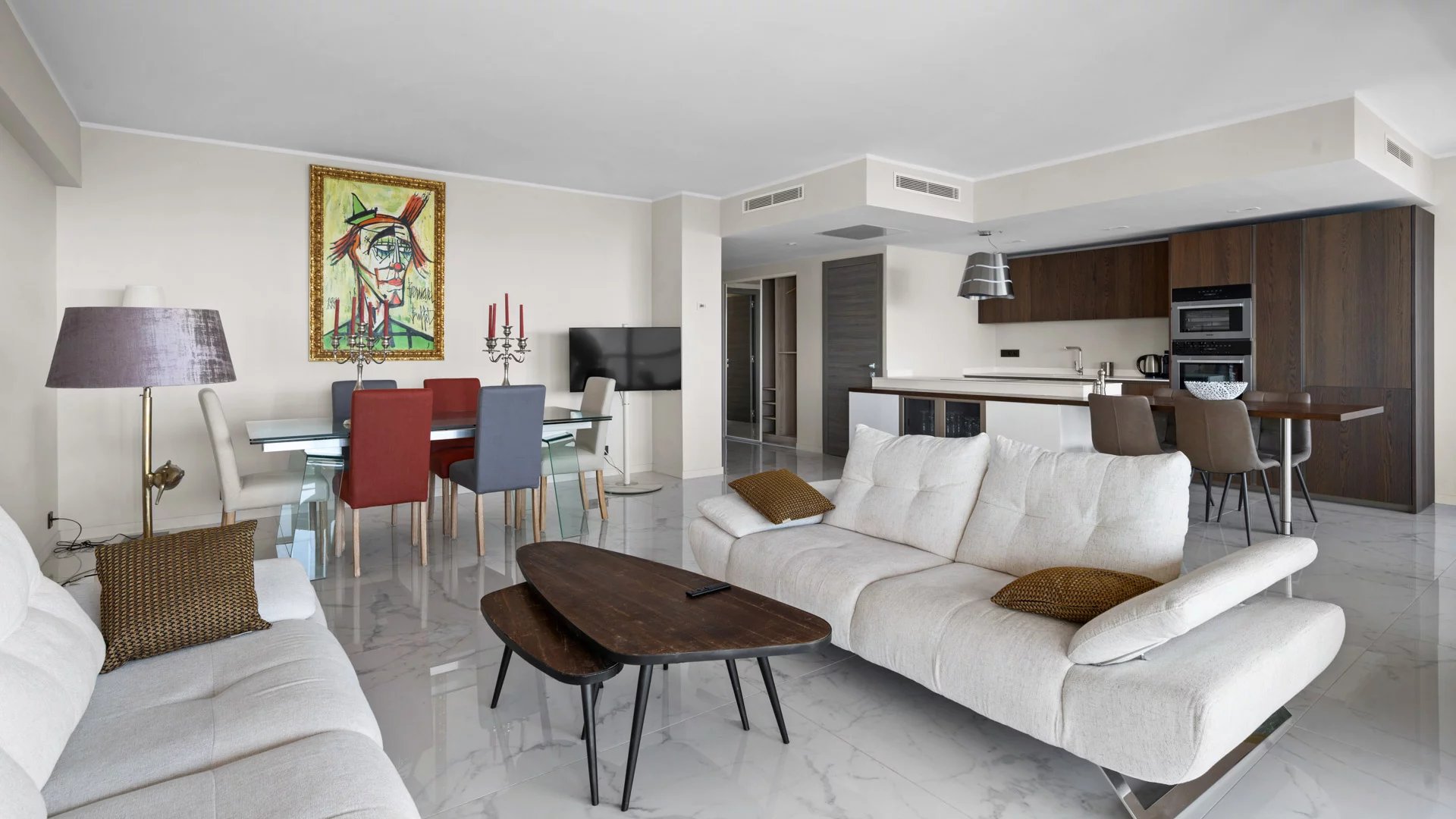 Reception room with lounge, dining room and fitted kitchen opening onto the terrace.