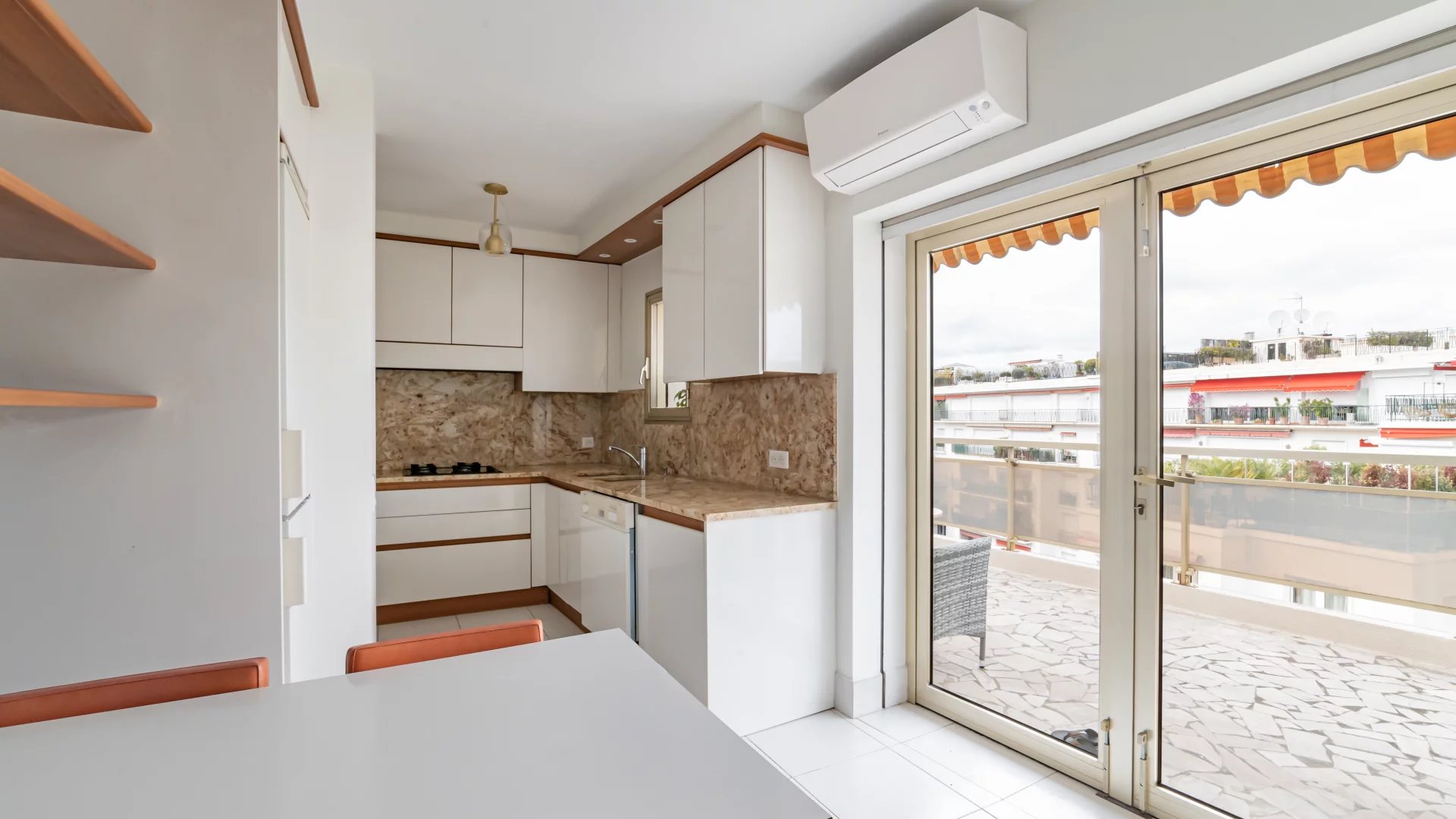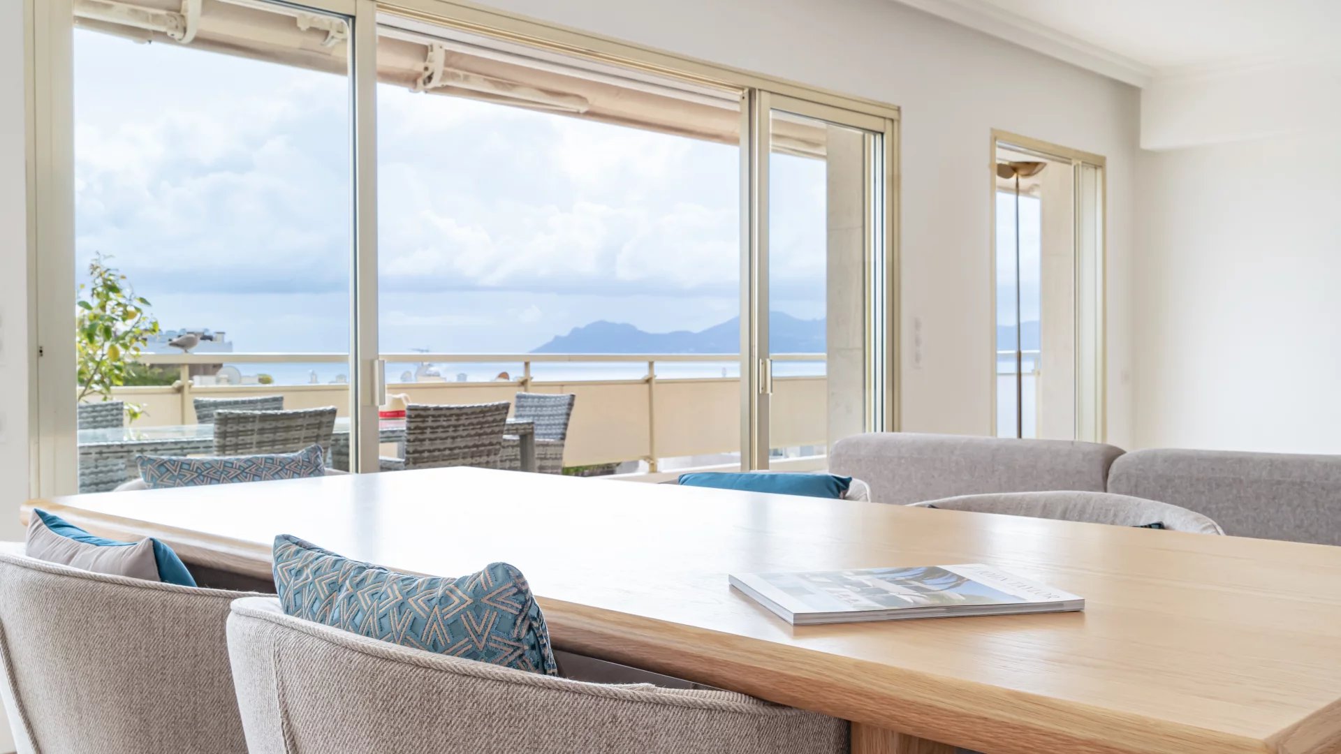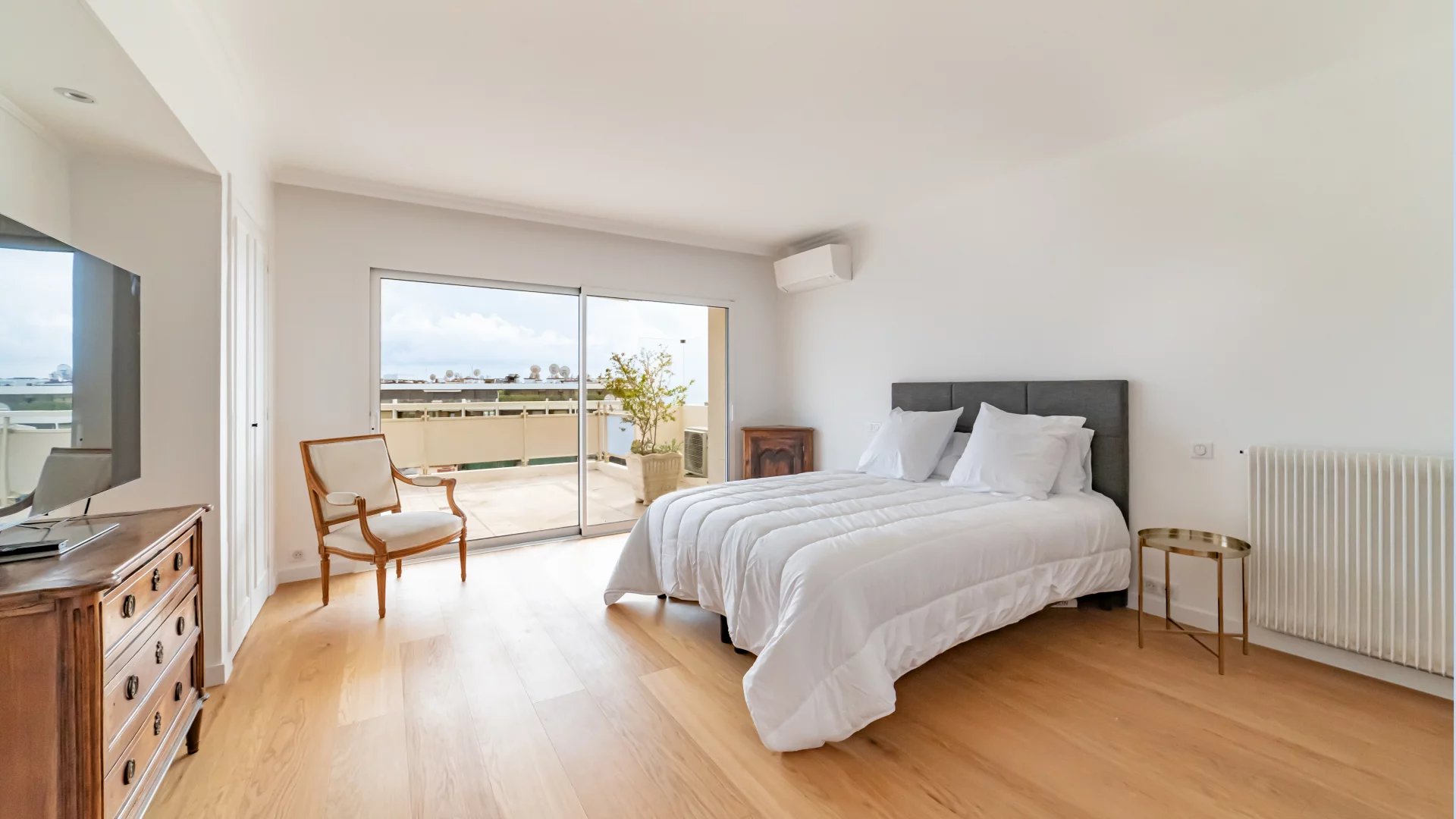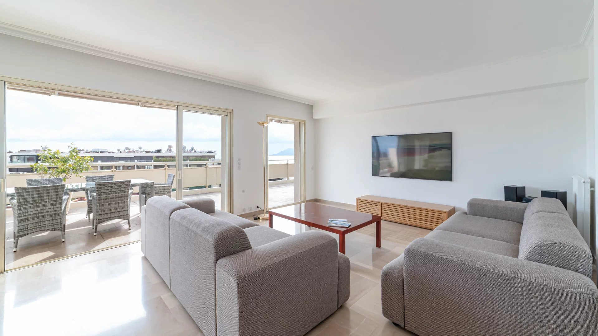 South-facing, fully air-conditioned 140 sq.m apartment on the top floor (8th) of a downtown residence, just a few minutes' walk from the beaches and the Palais des Festivals.