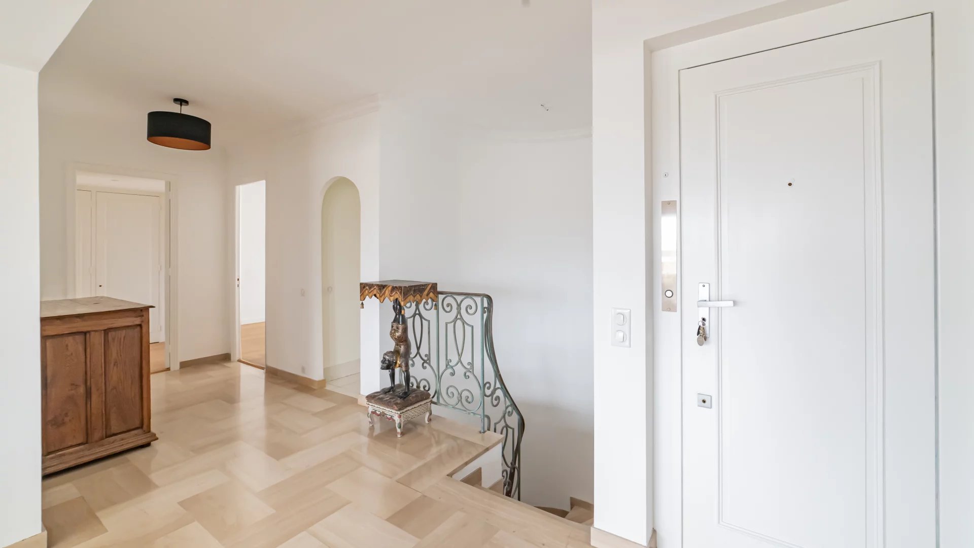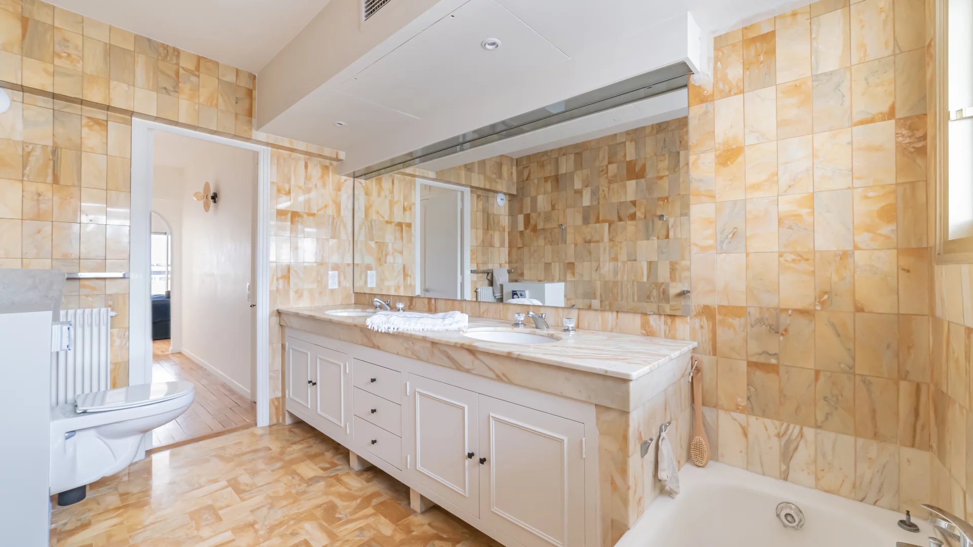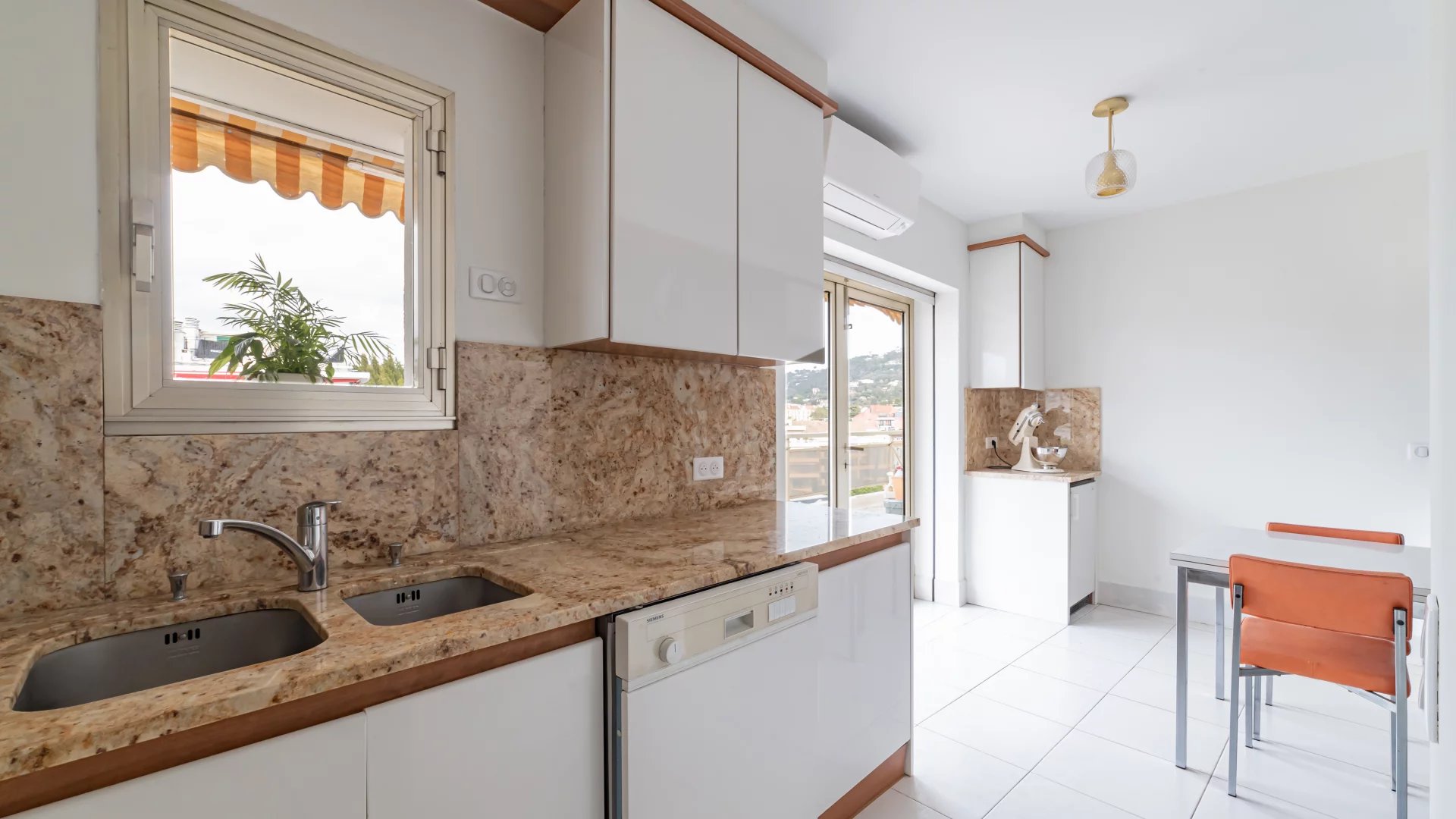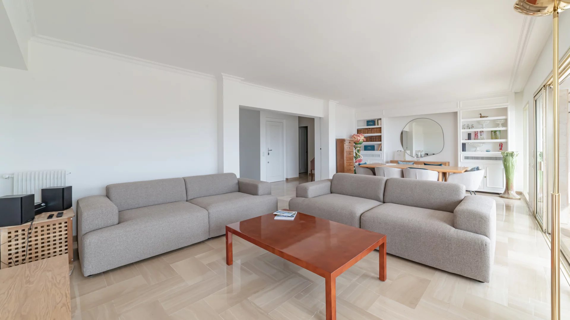 South-facing, fully air-conditioned 140 sq.m apartment on the top floor (8th) of a downtown residence, just a few minutes' walk from the beaches and the Palais des Festivals.
