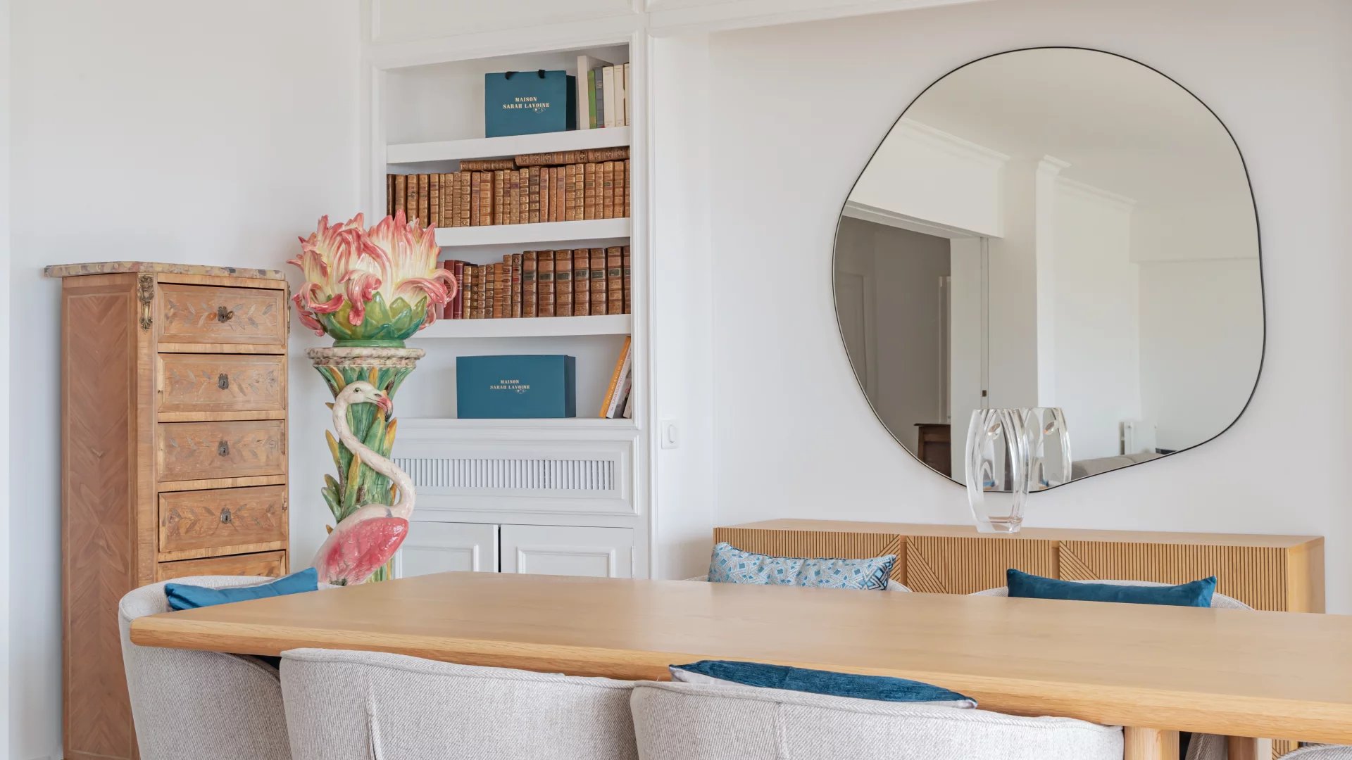 a beautiful reception room with lounge and dining room opening onto a 60 sq.m south-facing terrace.