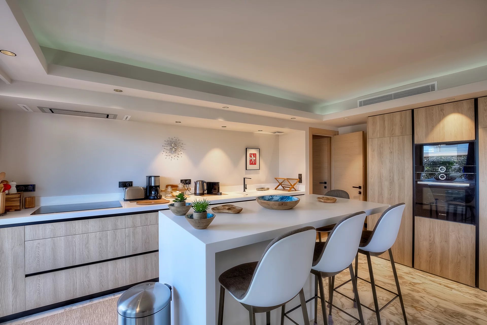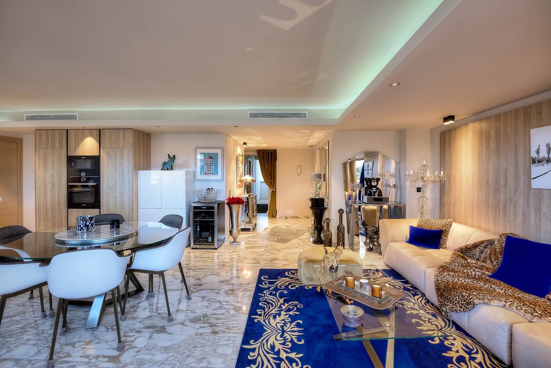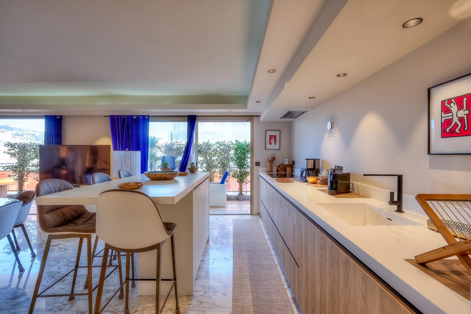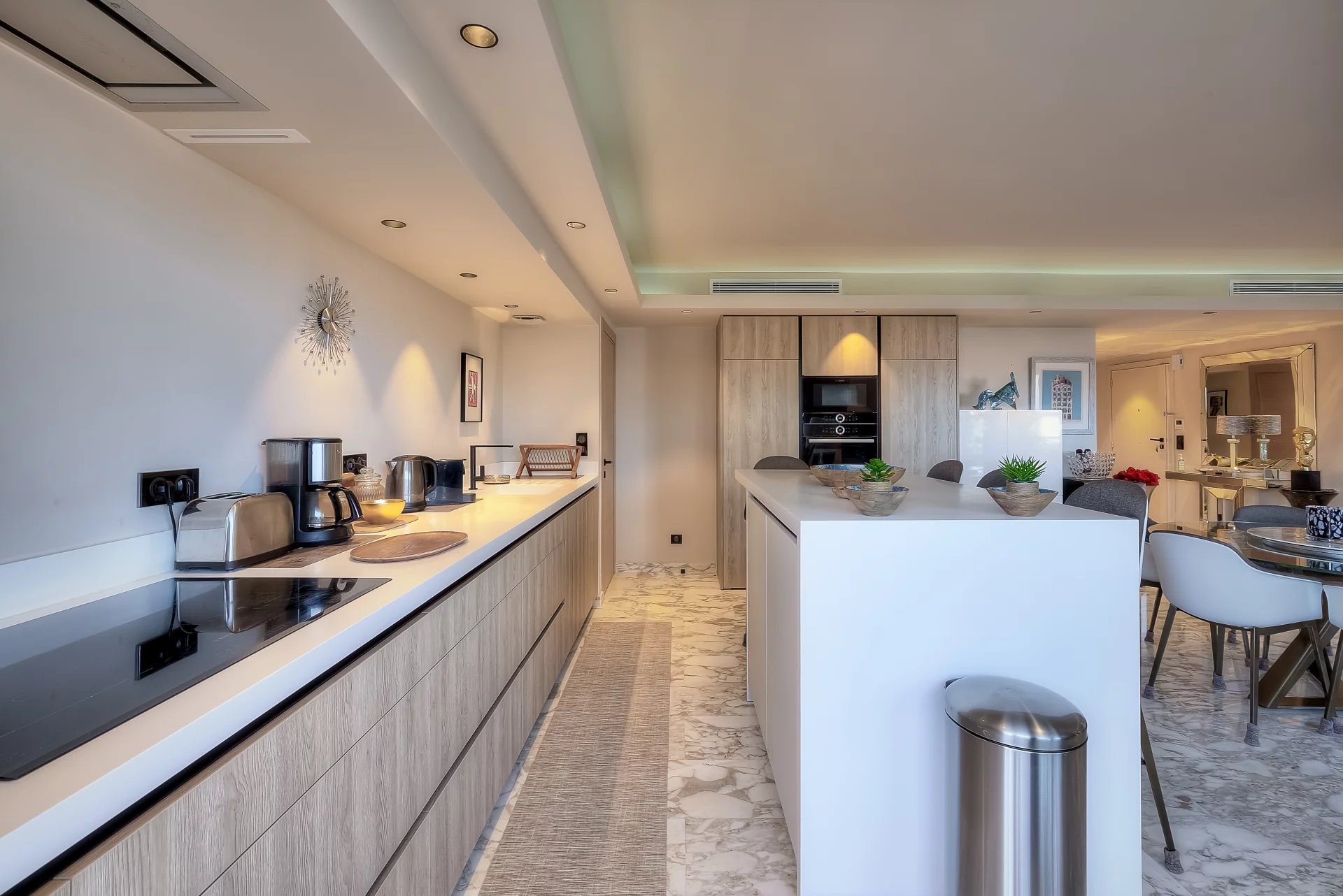 A 45 sq.m reception room with an open plan kitchen, opening onto a 30 sq.m balcony