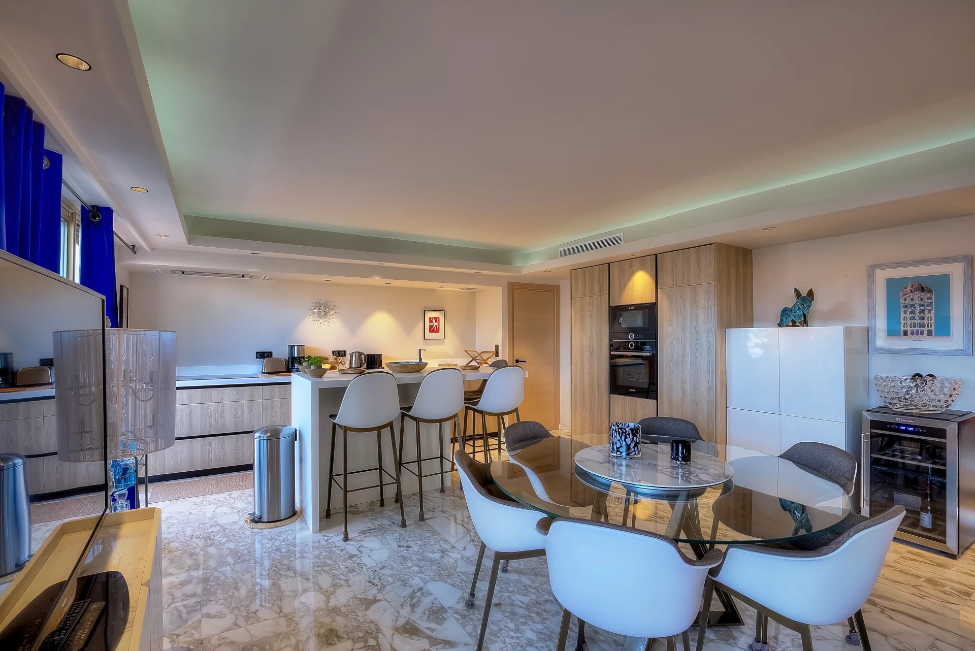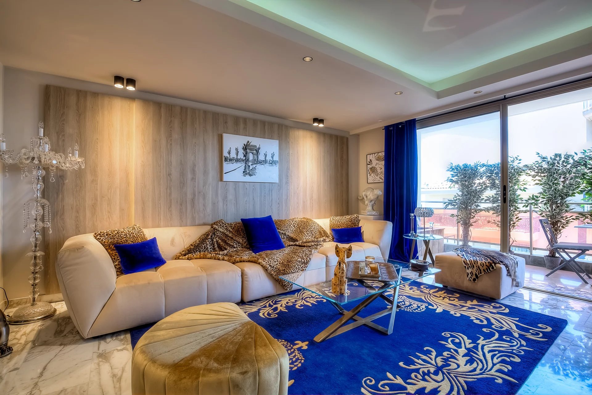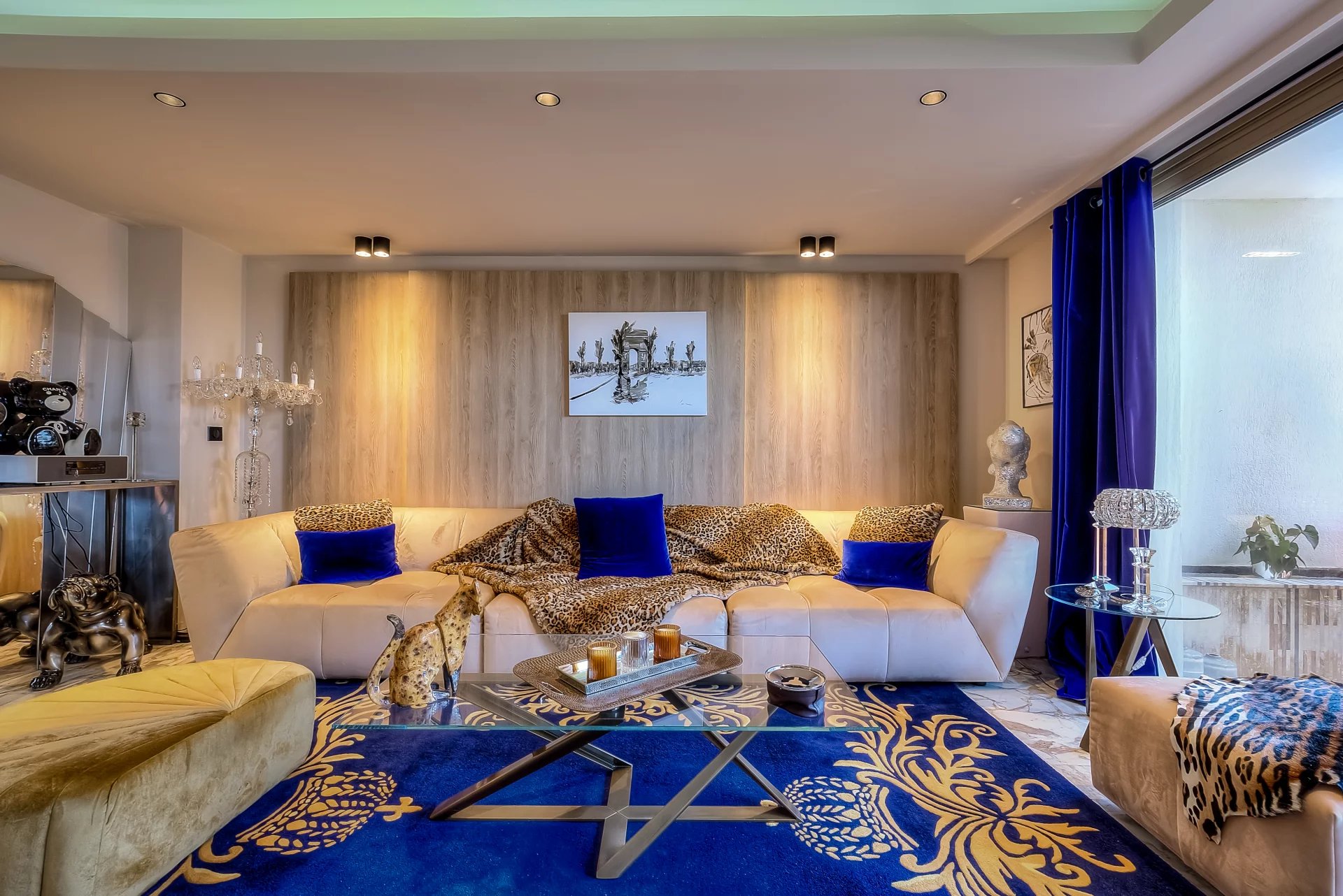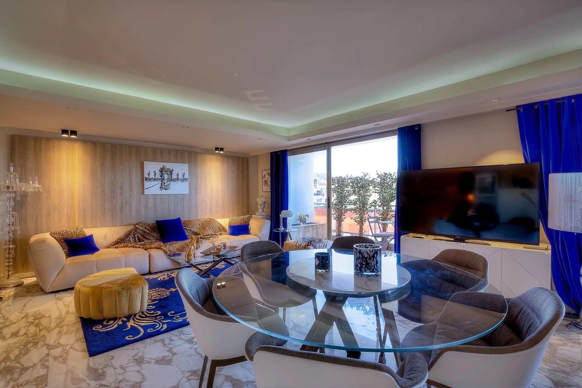 A 45 sq.m reception room with an open plan kitchen, opening onto a 30 sq.m balcony