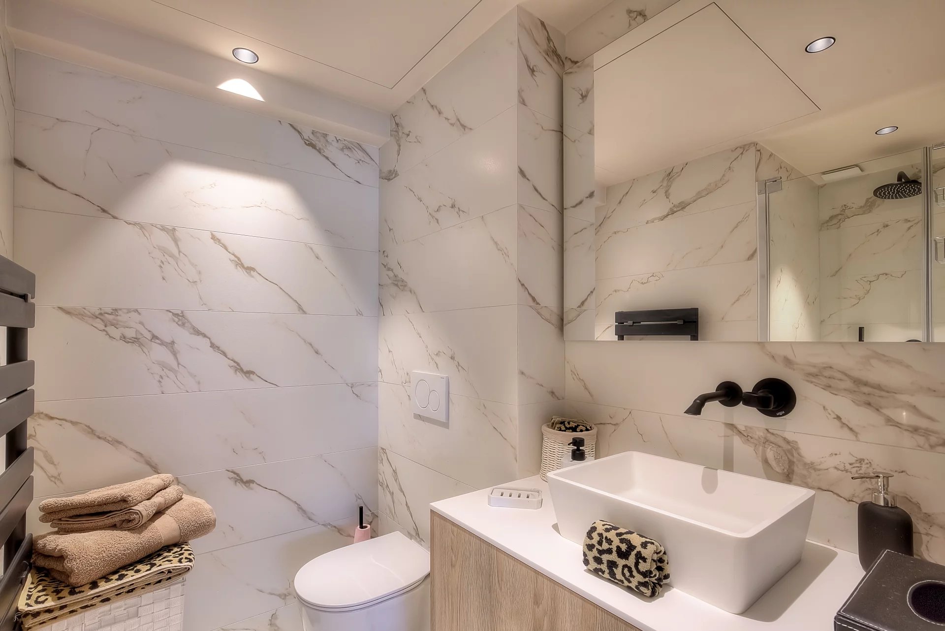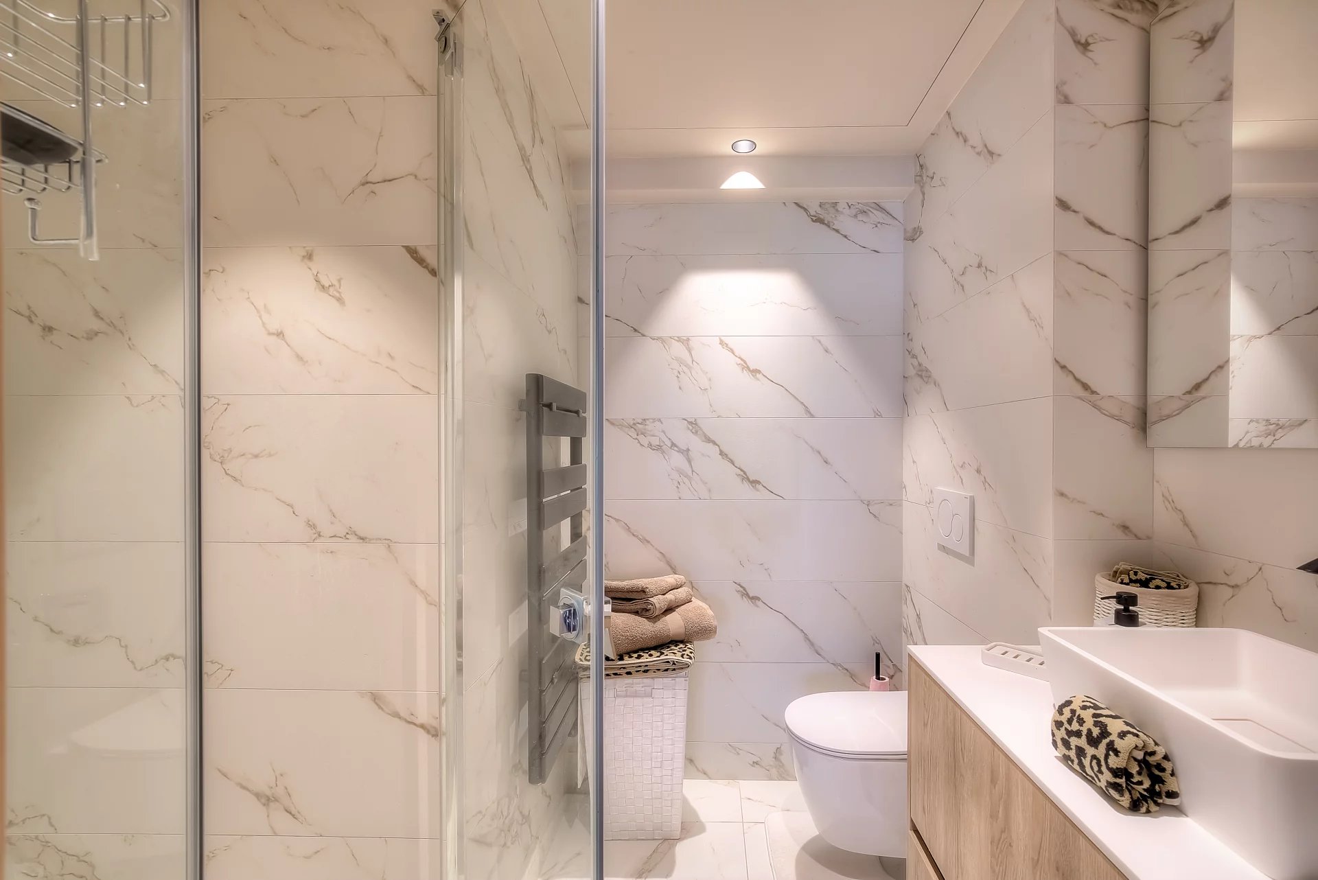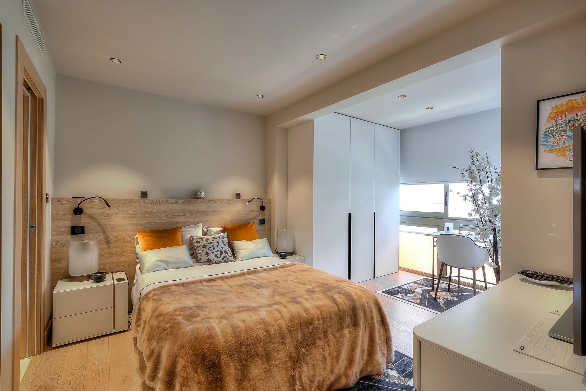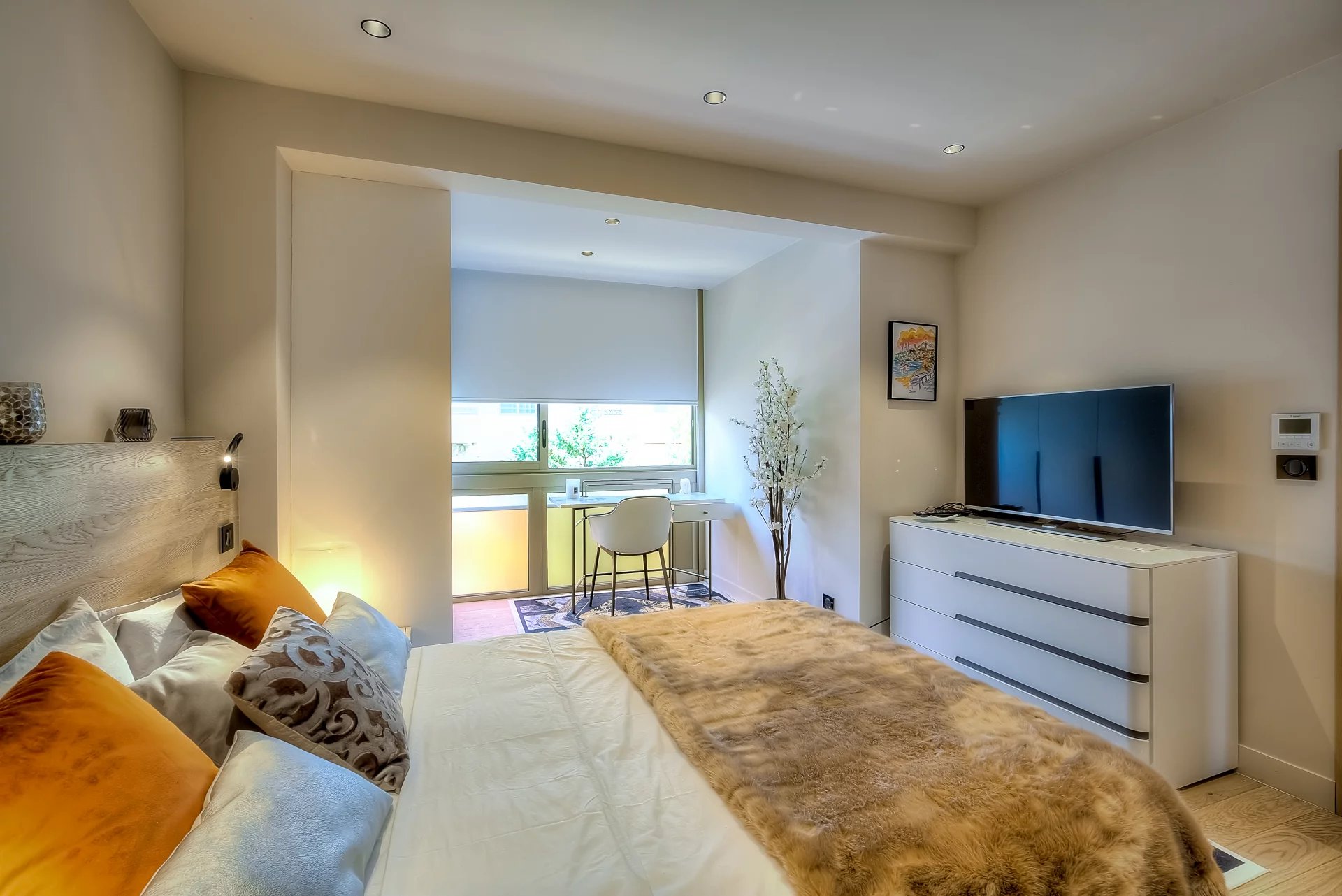 Bedroom (double bed 160 cm - TV) opening onto the balcony- Bathroom / WC ensuite