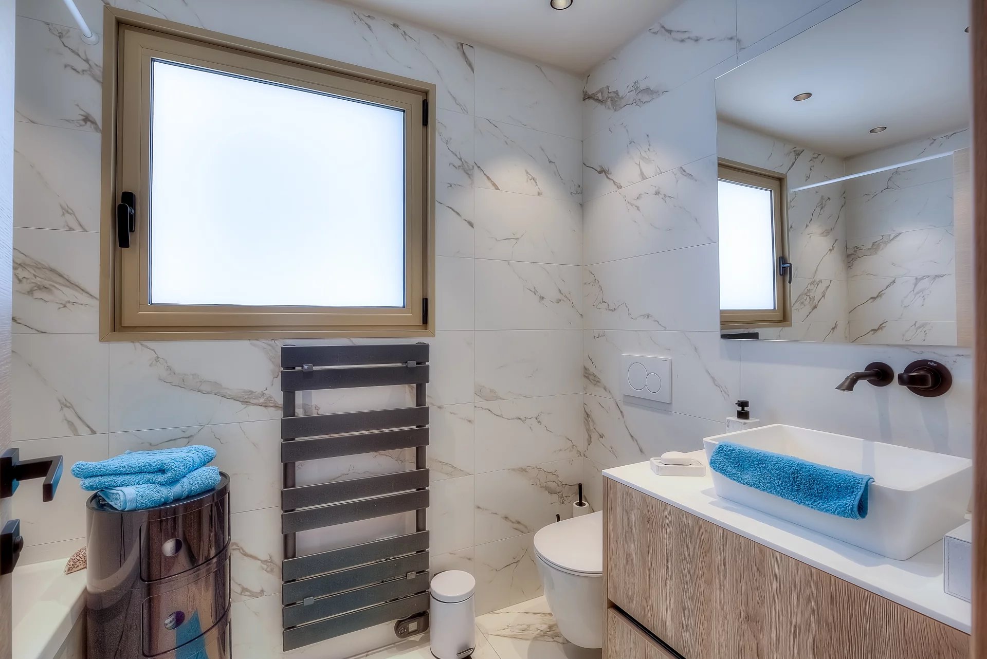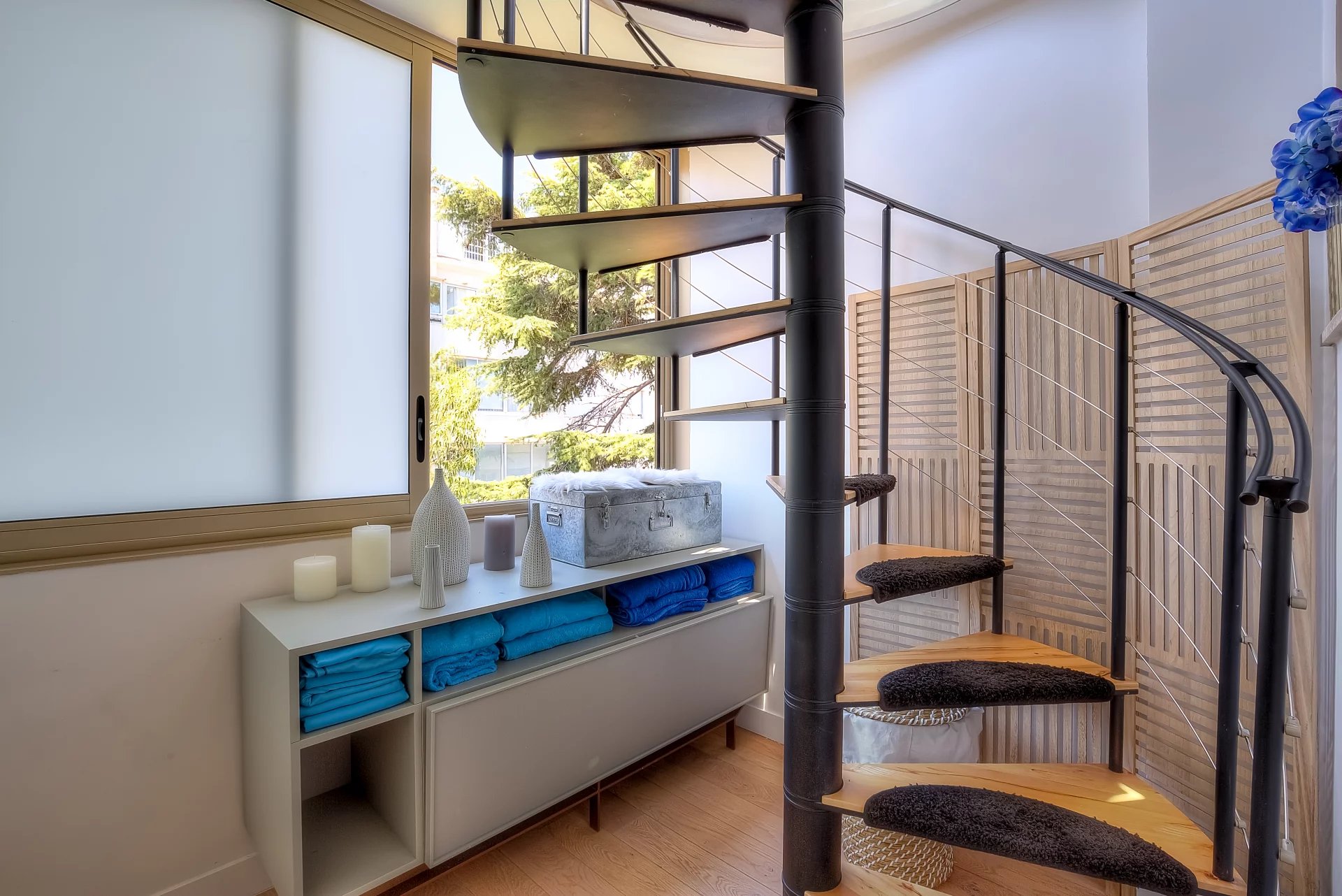 Fully air-conditioned, the apartment is as follows :