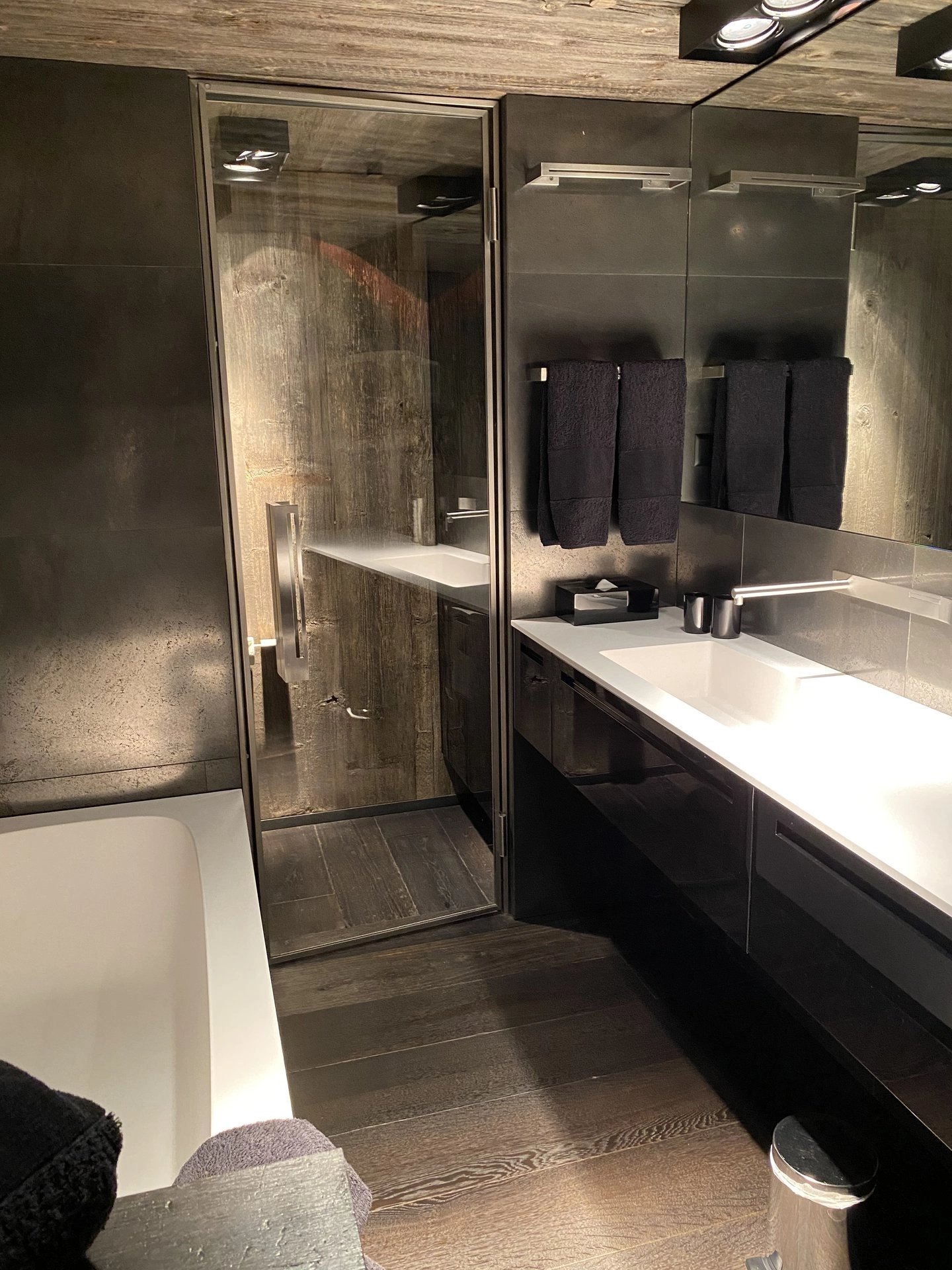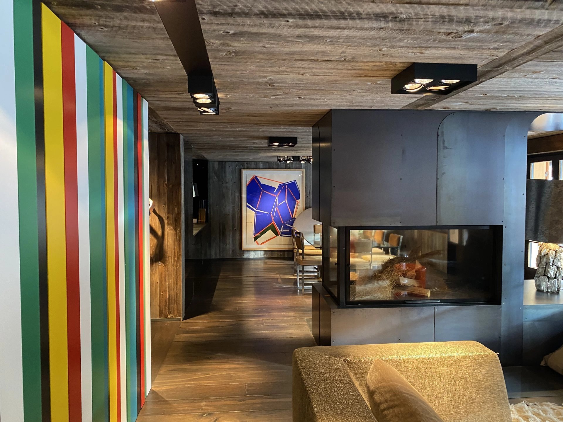 Luxury apartment in Gstaad with the large terrace all around. 3 bedrooms with en-suite bathrooms. Spacious living room with the fire place Open modern kitchen TV room Private laundry room Garage parking for 2 cars