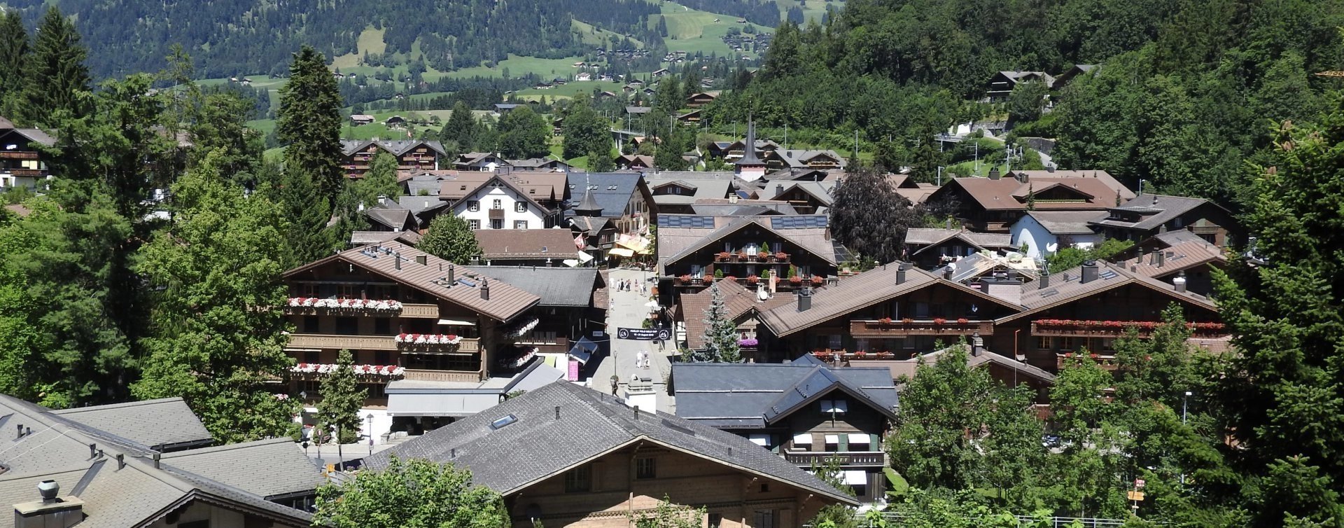 Great central location with a beautiful view on The Palace Hotel, The Alpina Hotel, The Grand Park Hotel and over the Promenade of Gstaad.