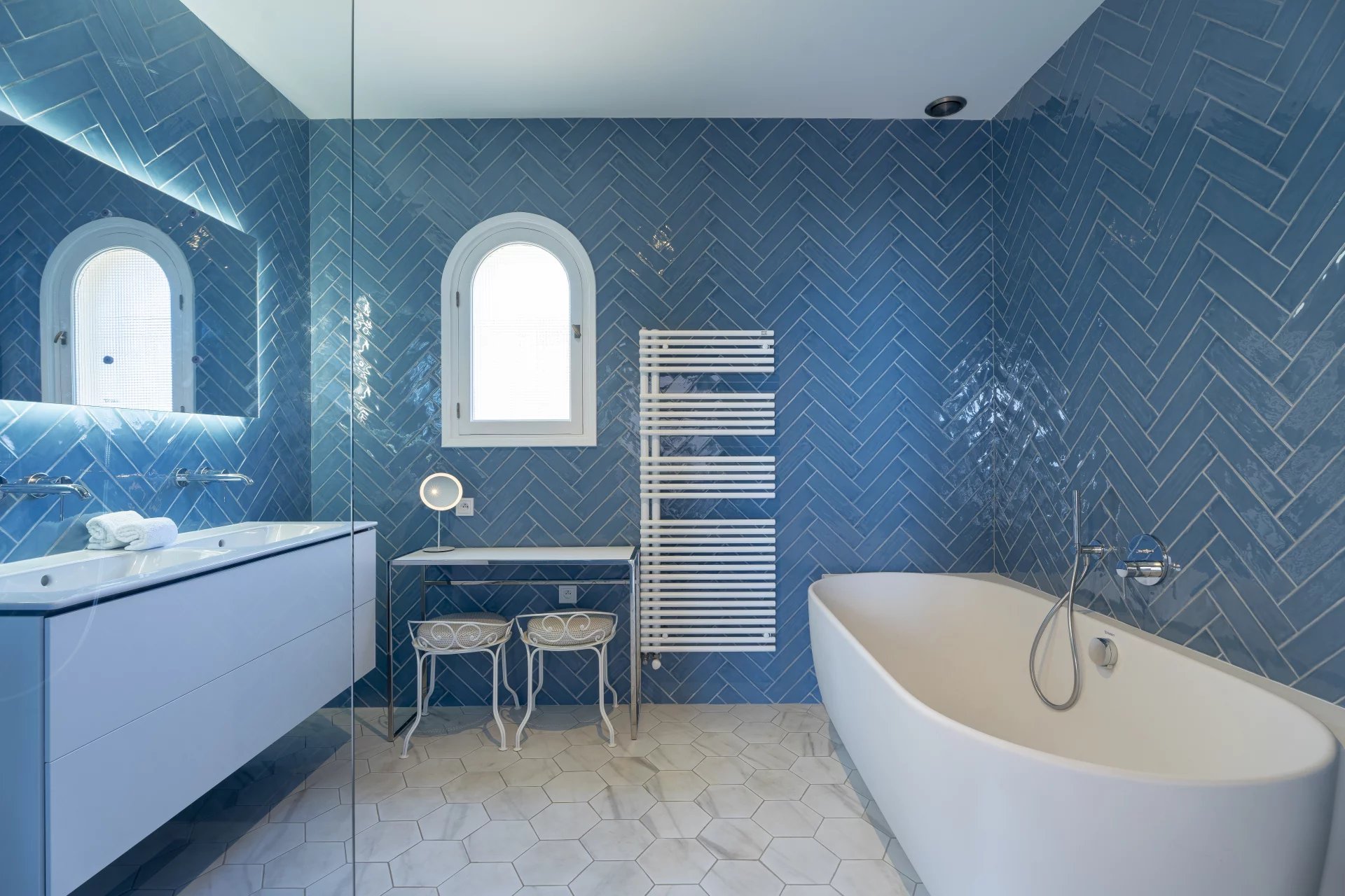 On the lower floor, 3 bedrooms and 2 bathrooms, the bedrooms opening on to the garden.