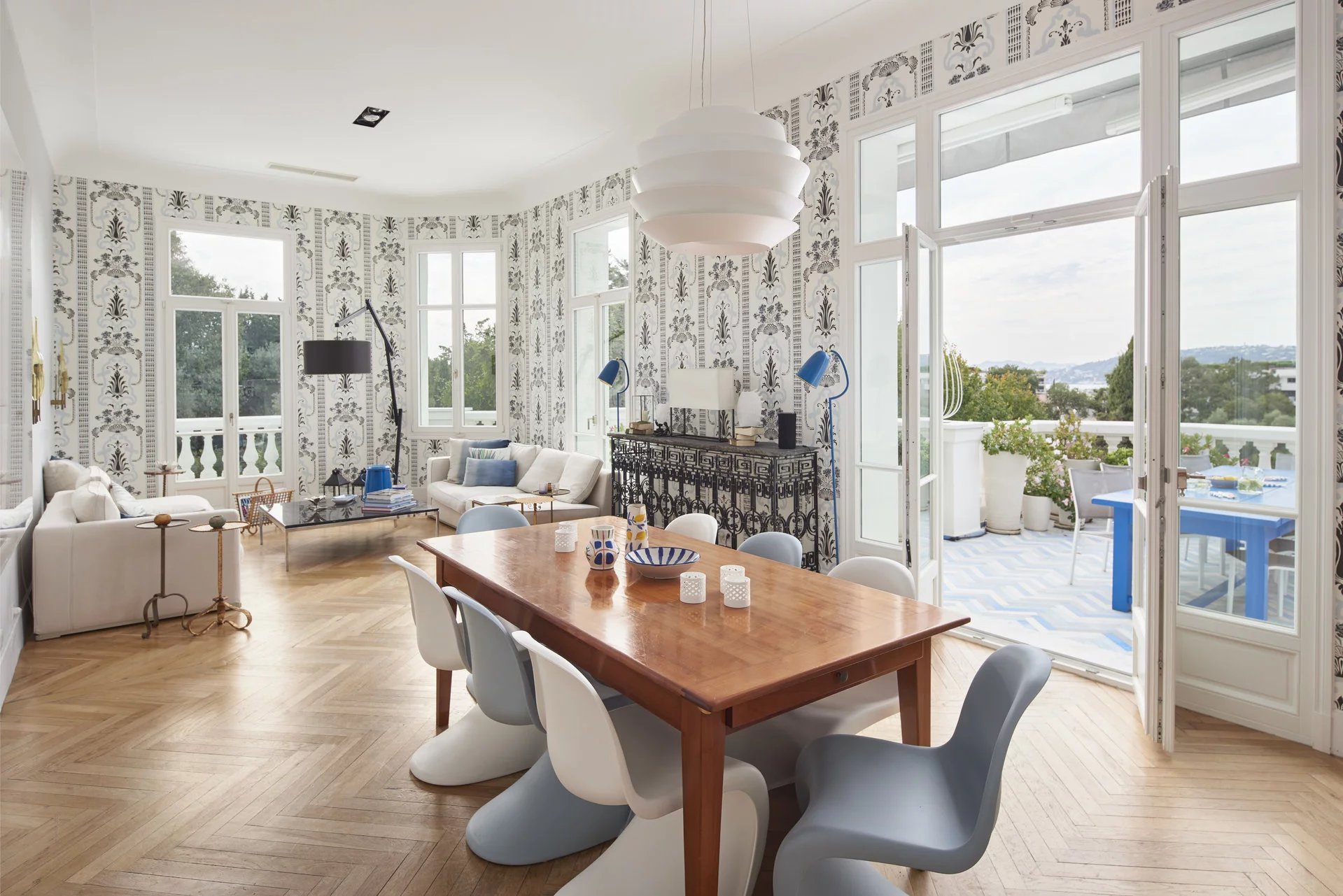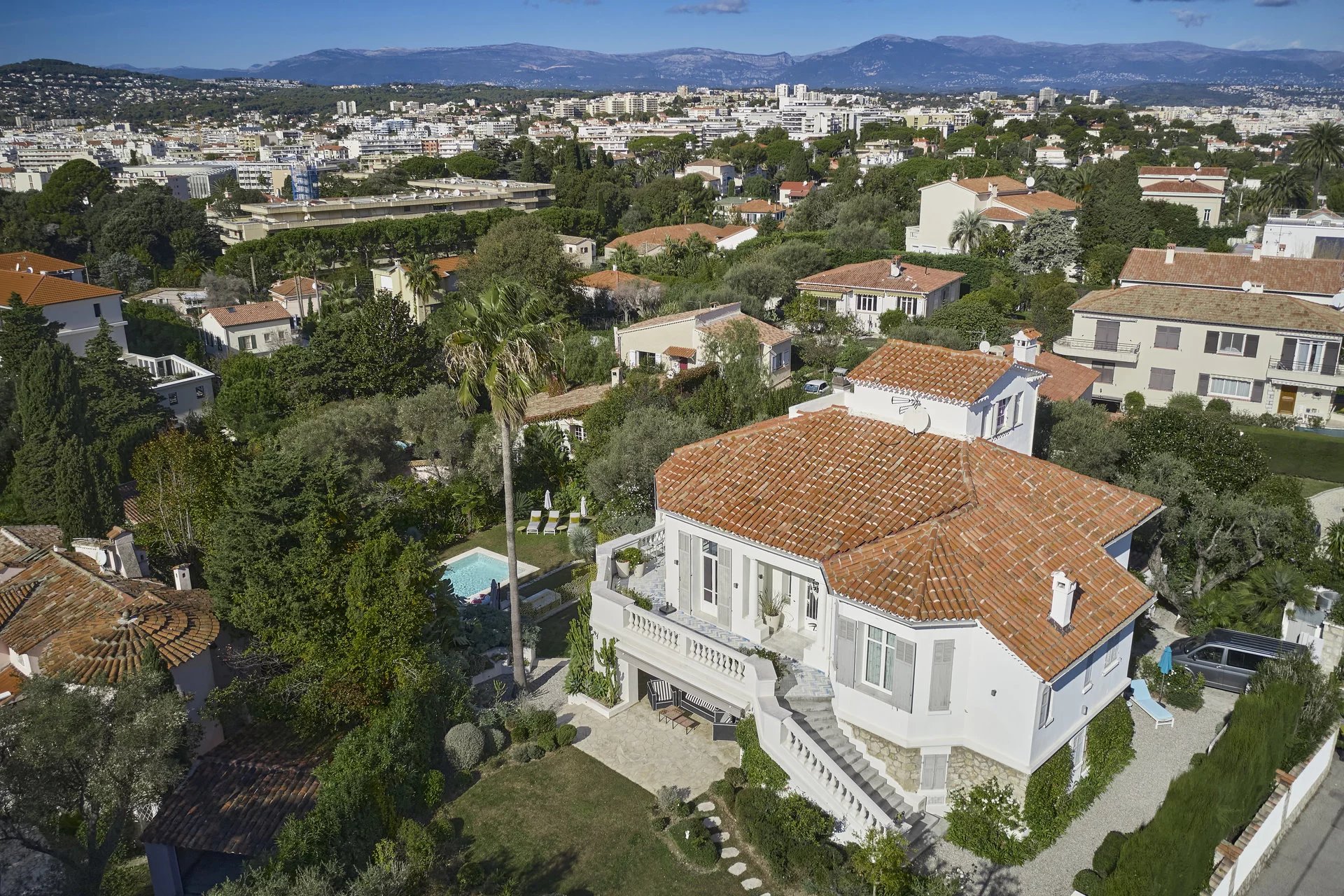 Attractive Art Deco villa dated 1925, newly renovated in 2025 to highest standard (owner well known interior designer) entirely air-conditioned with a living area of 350 sq.m surrounded by grounds of 1 600 sq.m, situated at walking distance from Juan-les-Pins and Antibes. Very quiet as located at the end of a "cul-de-sac".