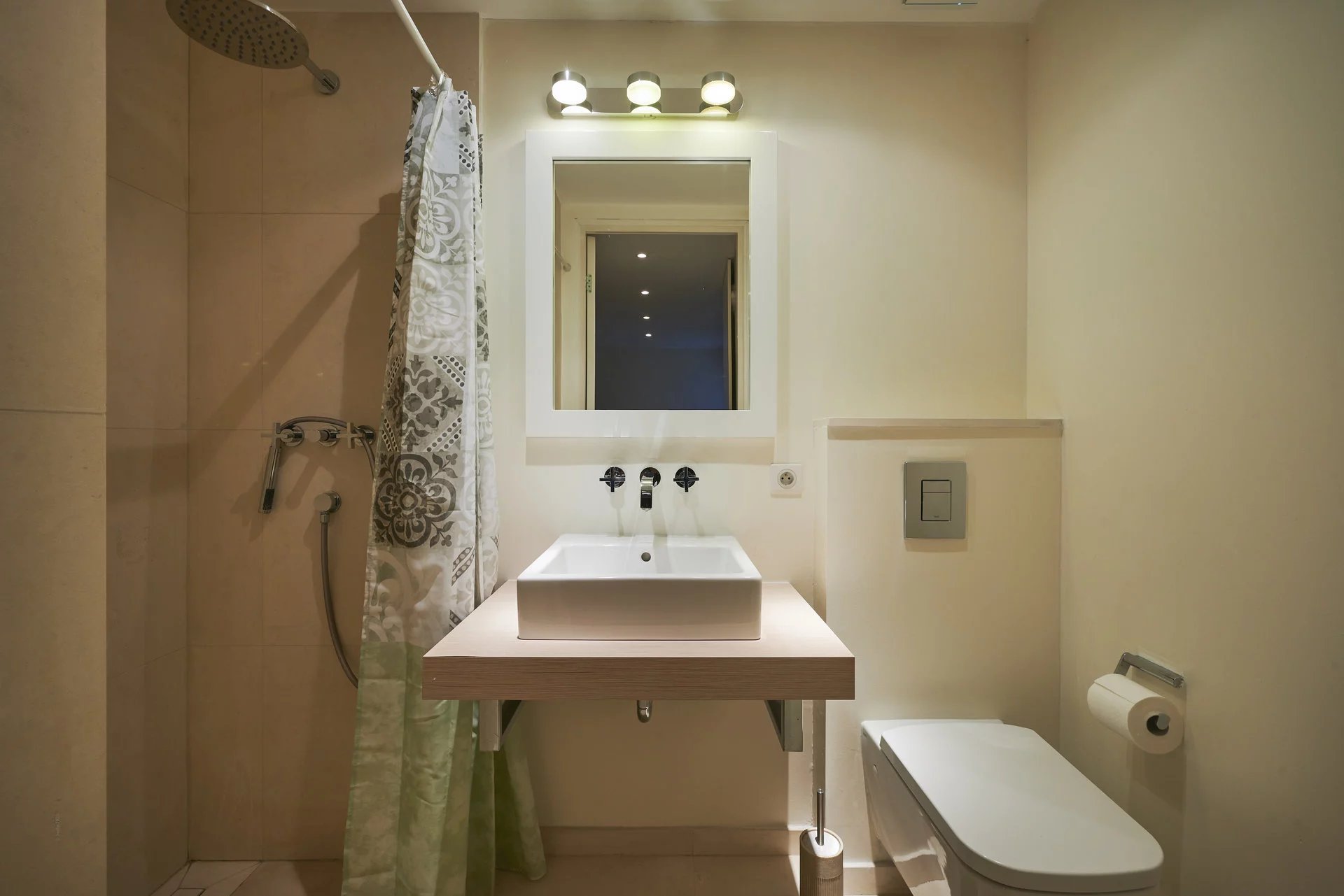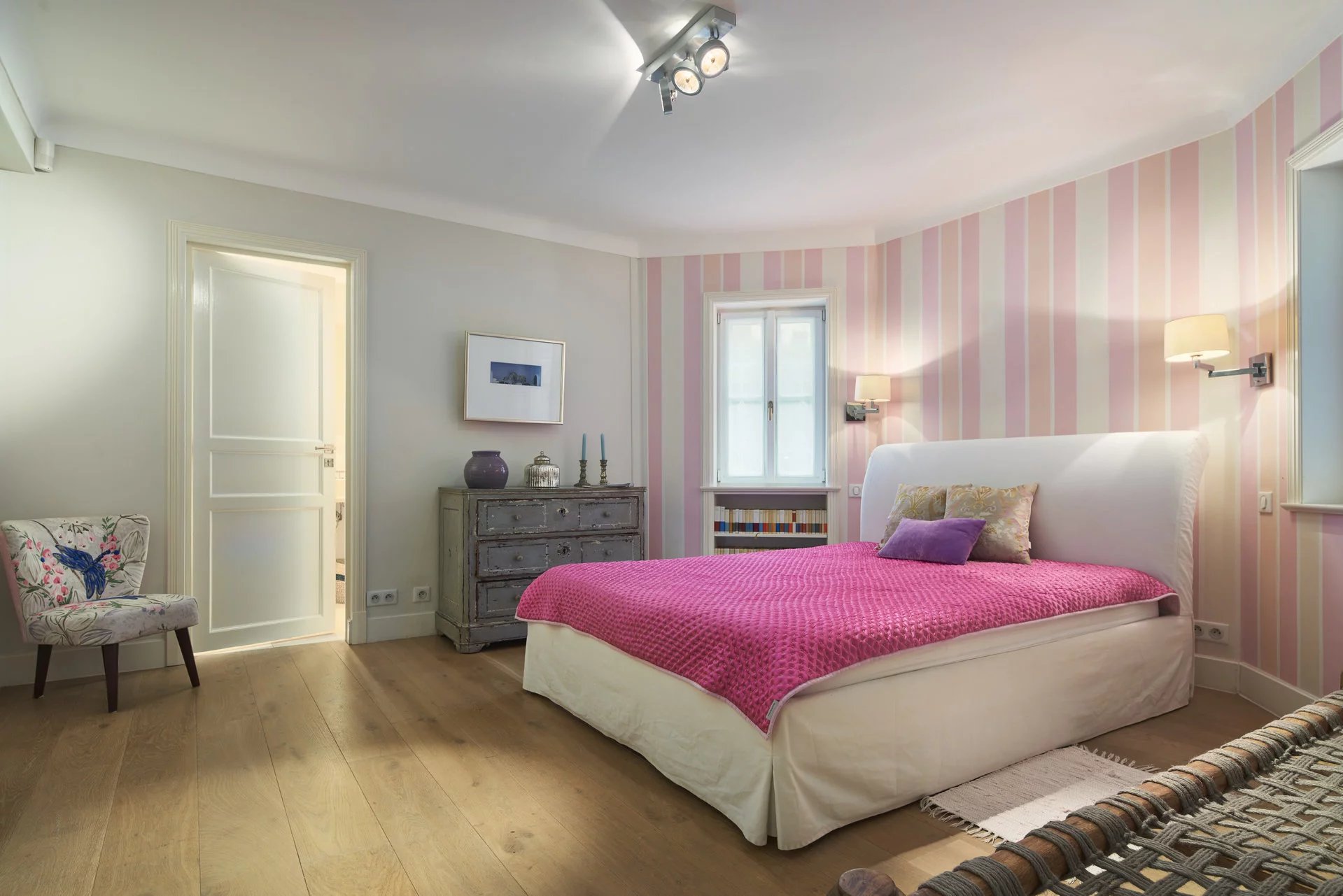 Bedroom (bed 160 cm) with en suite bathroom with bath, shower / WC
