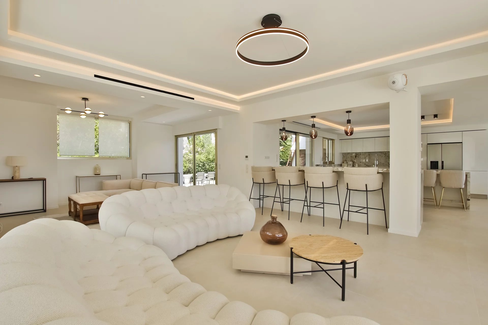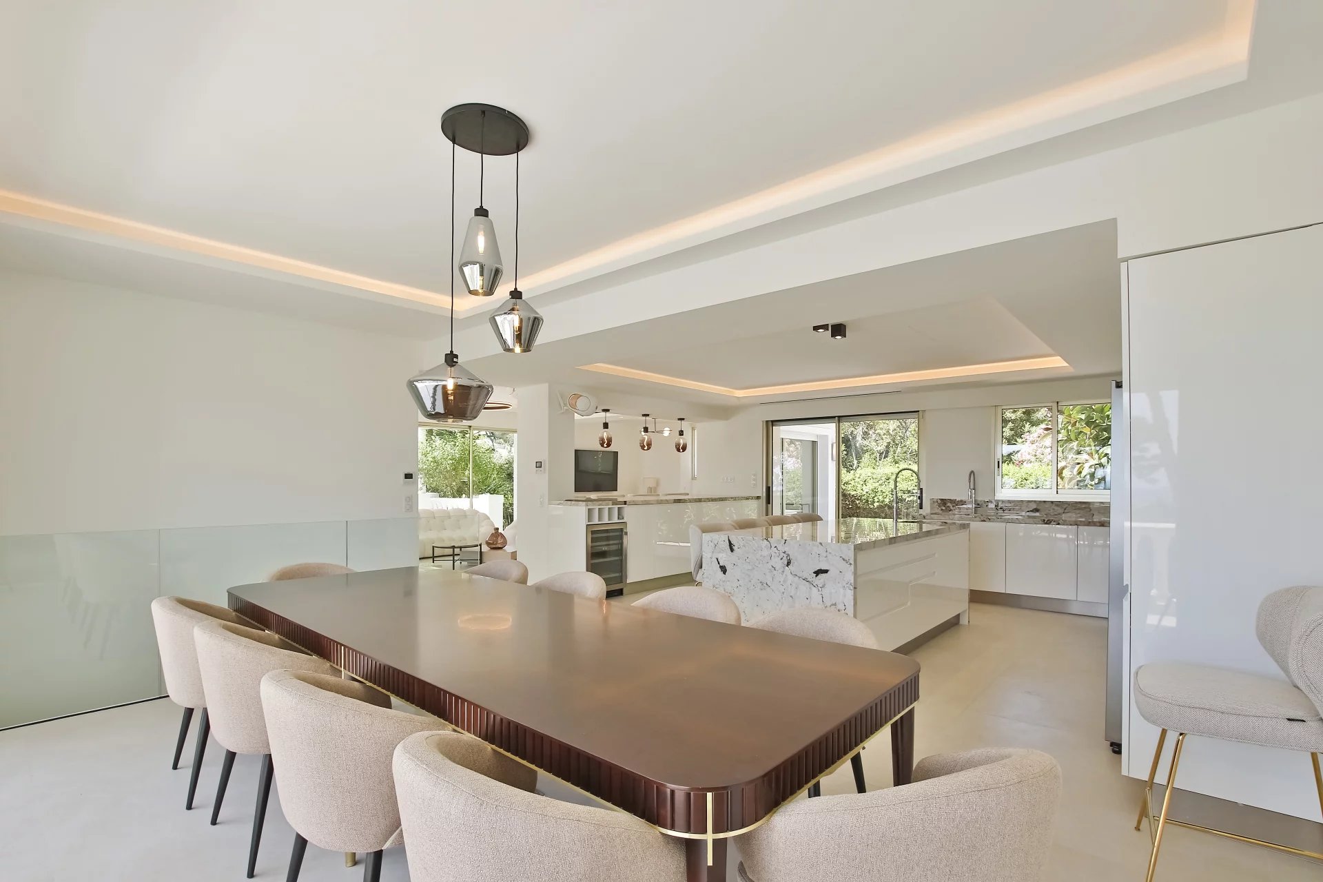 Made up of an entrance, double living room opening onto the terrace, dining room, independent fitted kitchen opening onto the garden and BBQ, master bedroom with dressing room and bathroom. 5 other bedrooms and 4 bathrooms.