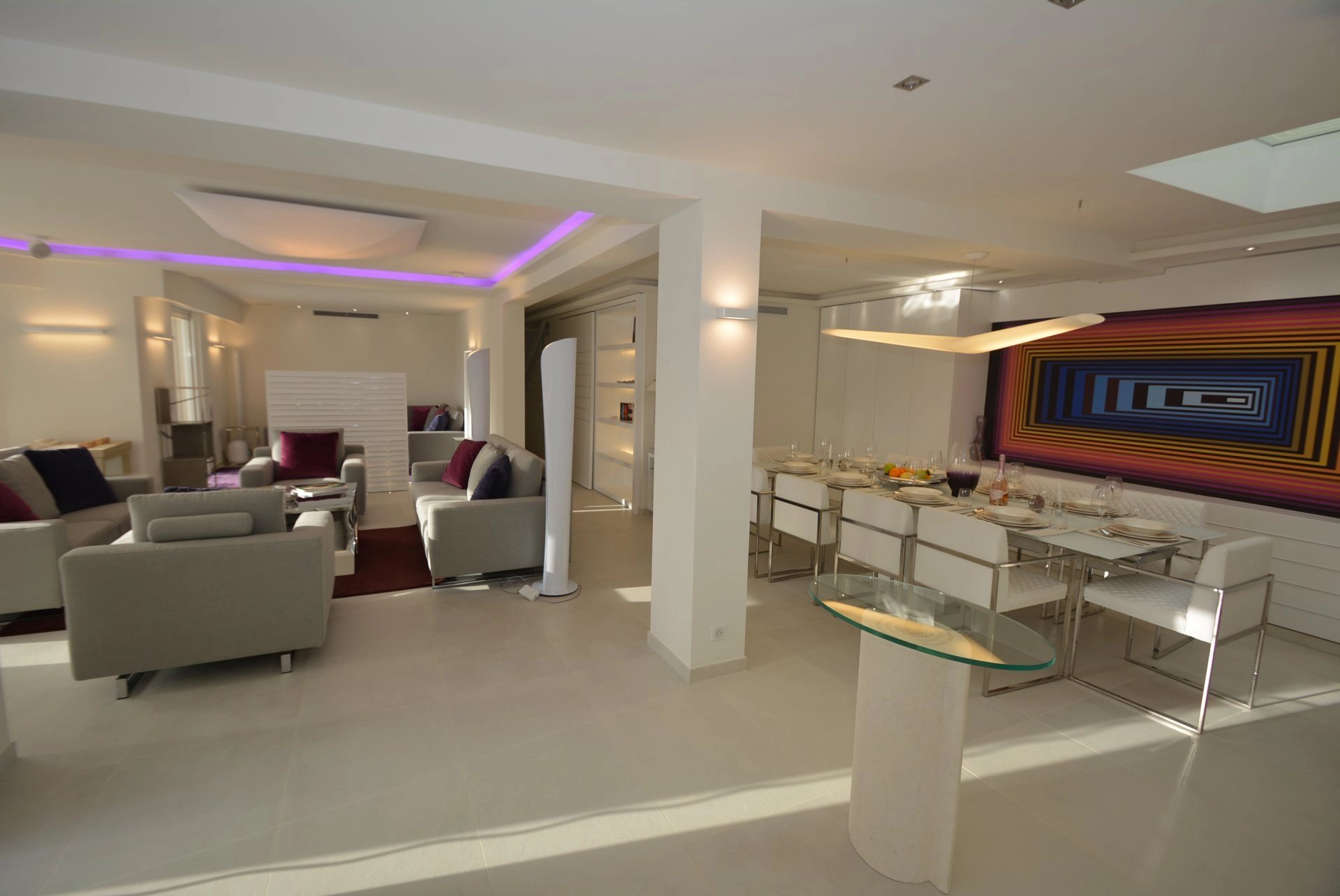 Entrance opening onto a large reception including lounge, dining room (10 persons), TV lounge