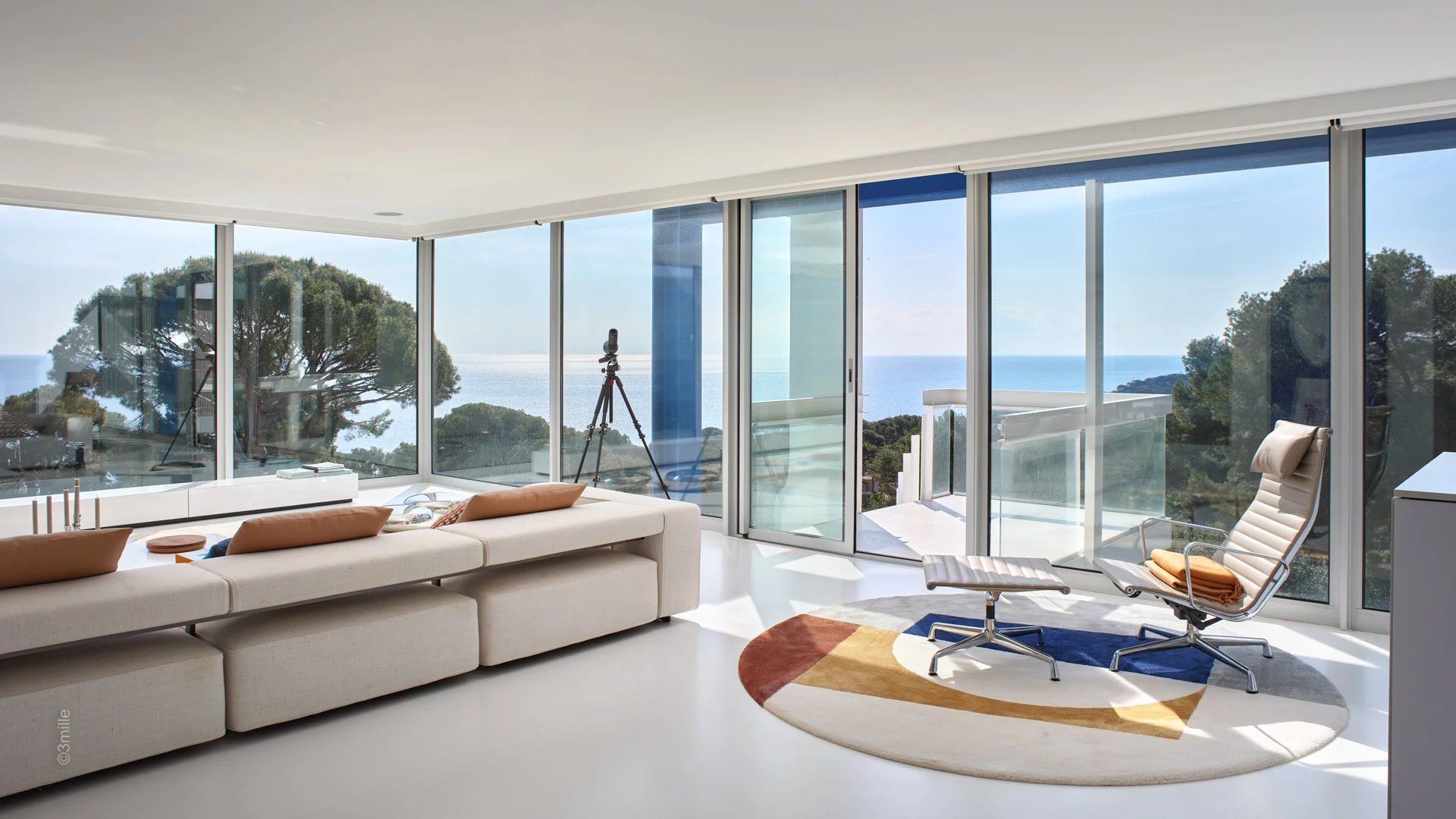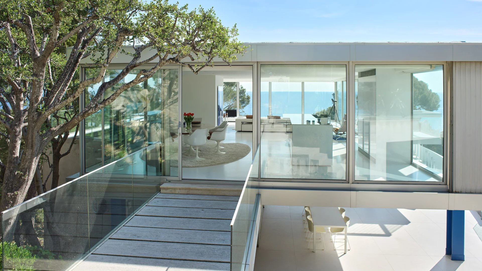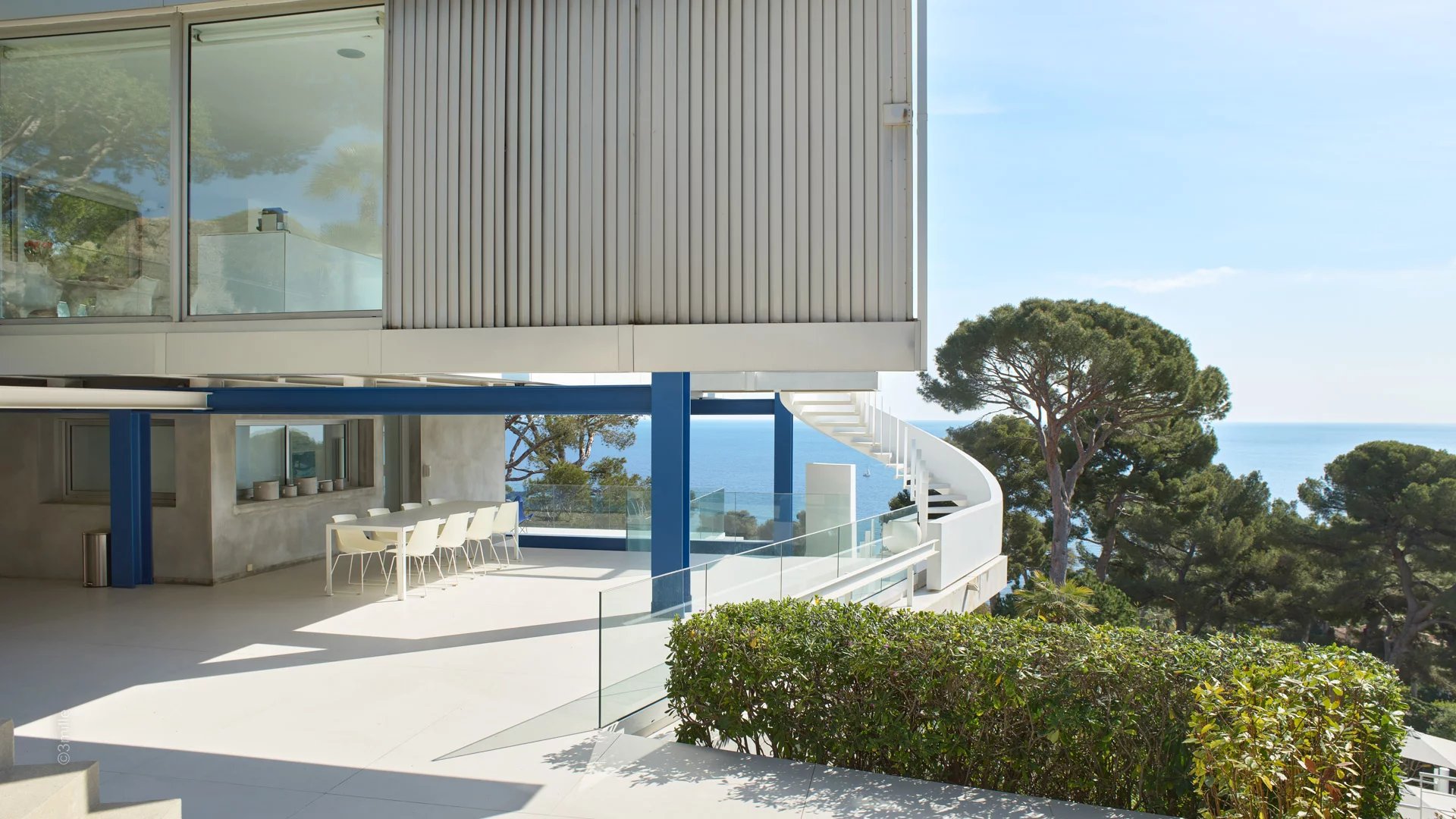 In one of the most sought-after areas of Cap d'Antibes, close to the Garoupe lighthouse and a few minutes drive from the Salis beaches and the Gallice harbour, a magnificent modern villa built in 1966 by the famous architect Claude Parent. Completely renovated and air-conditioned, the vila offers magnificent panoramic views over the bay of Cap d'Antibes and the town.