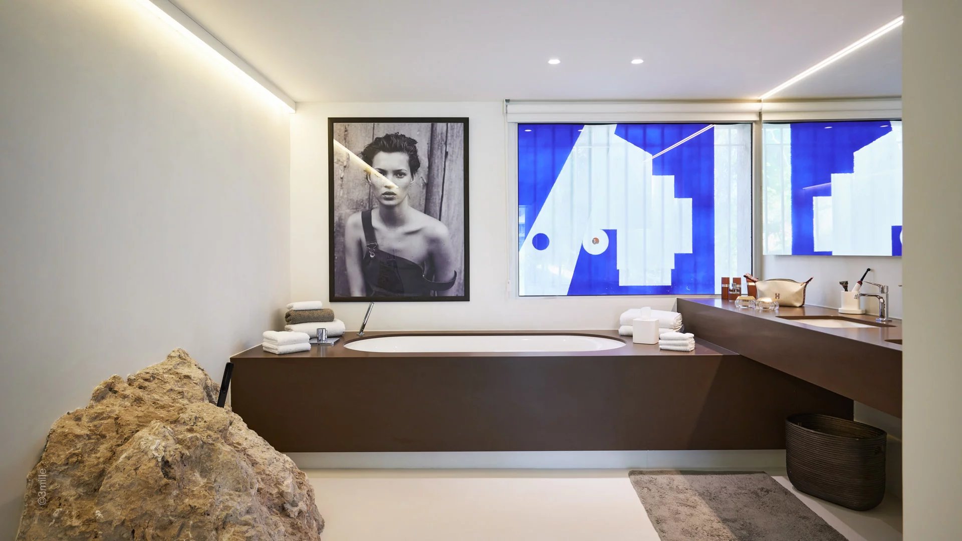 In the heart of a 1,000 sq.m plot of land, the villa of 300 sq.m living space with lift is composed as follows :