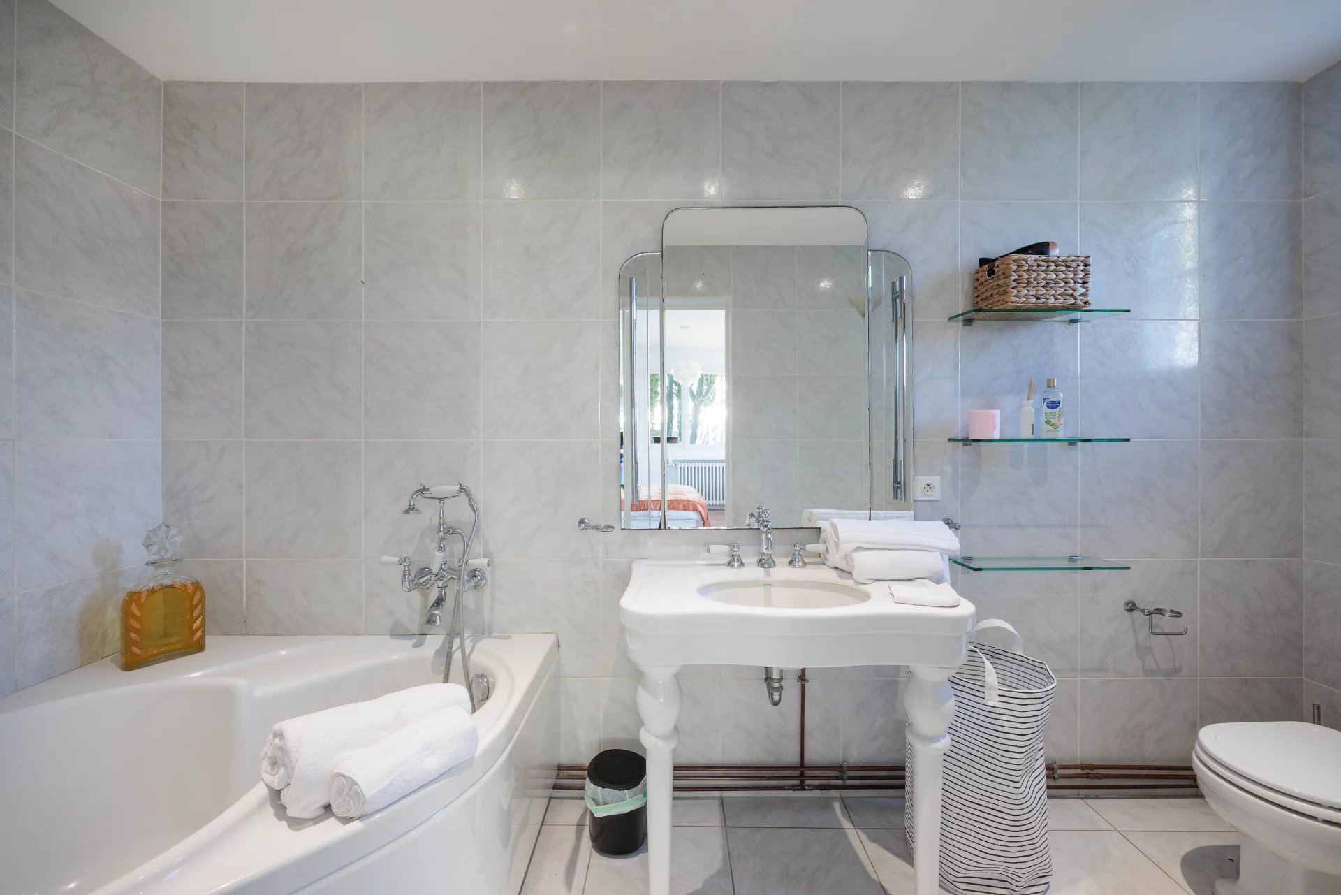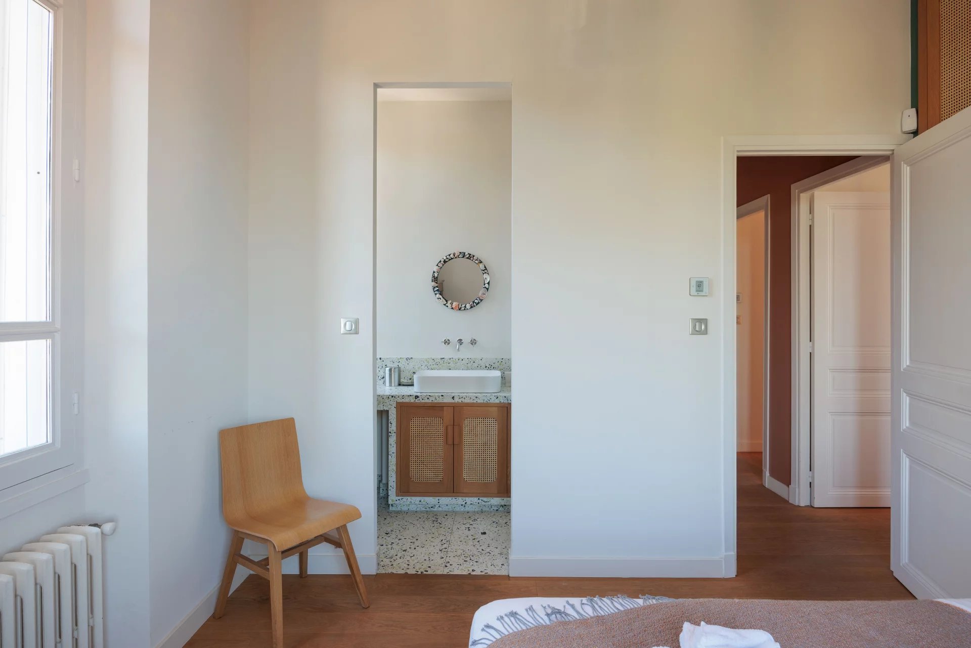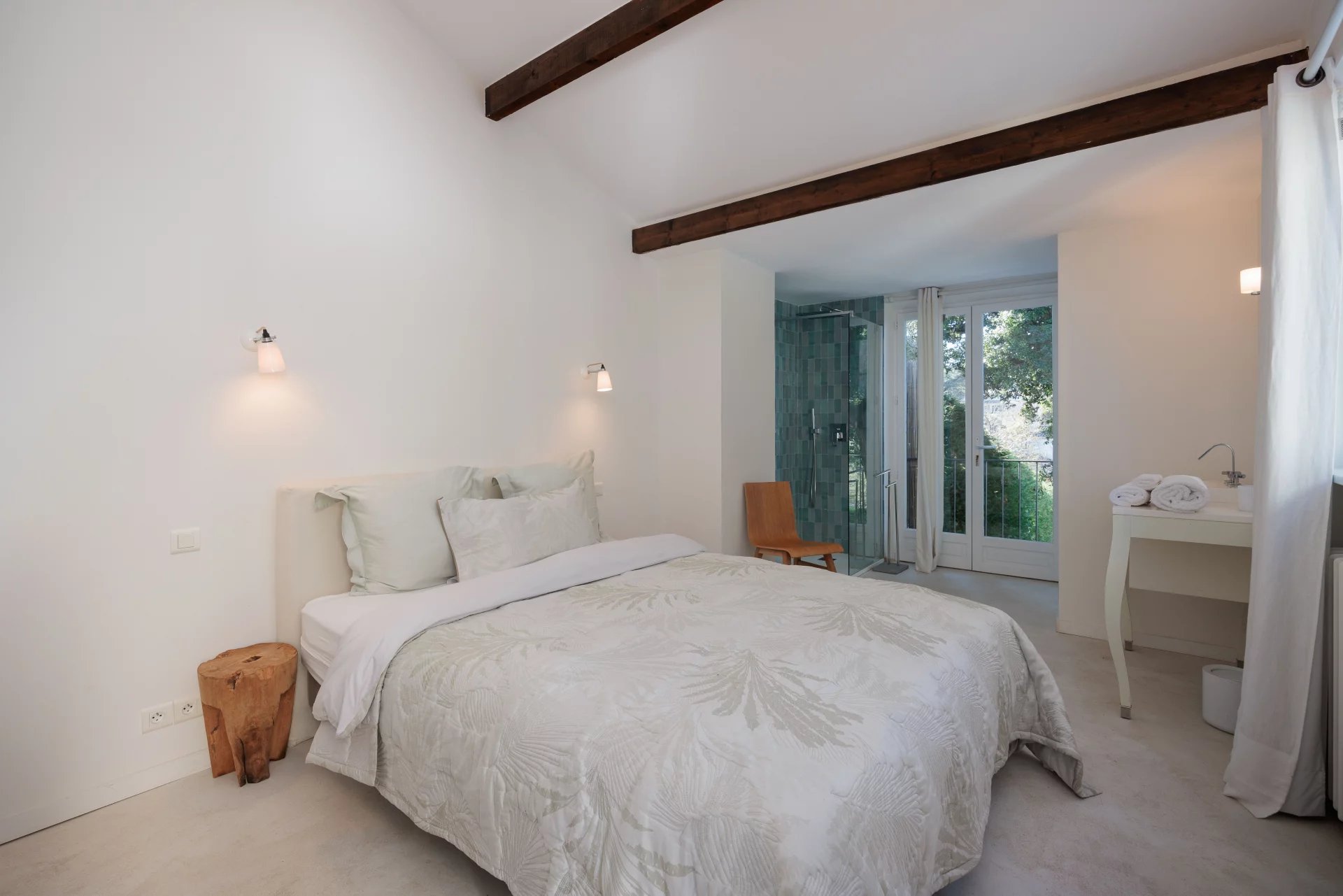 Air-conditioned Master bedroom (bed 180 cm), opening onto balcony, sea view - Bathroom / shower / WC ensuite