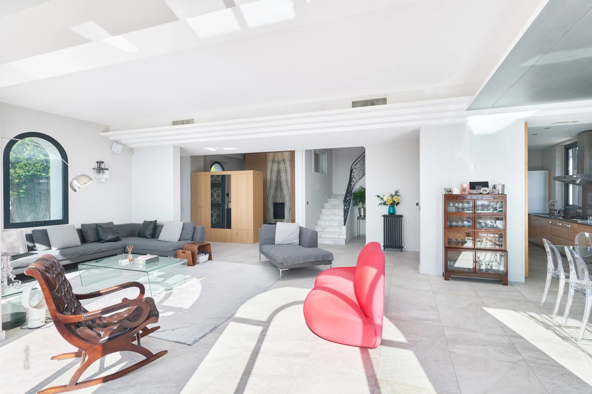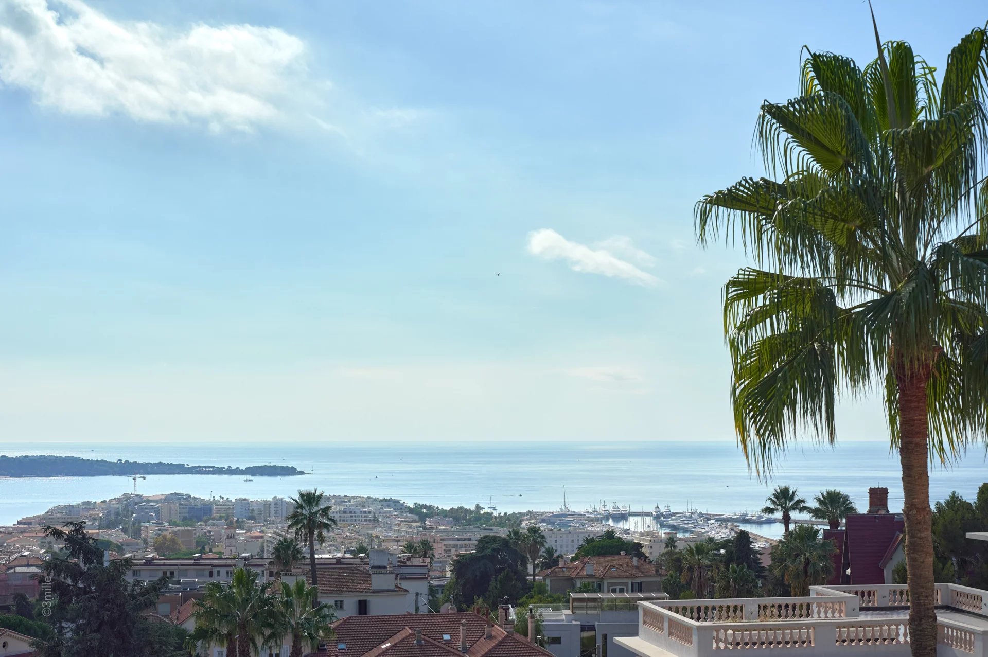 In the heart of the Californie area, 15 minutes walking distance from the centre of Cannes and 5 minutes by car from the Croisette, an attractive private mansion dating from 1925. Completely renovated and air-conditioned, it benefits from a southern exposure and offers a superb view of the bay of Cannes and the Lérins Islands.